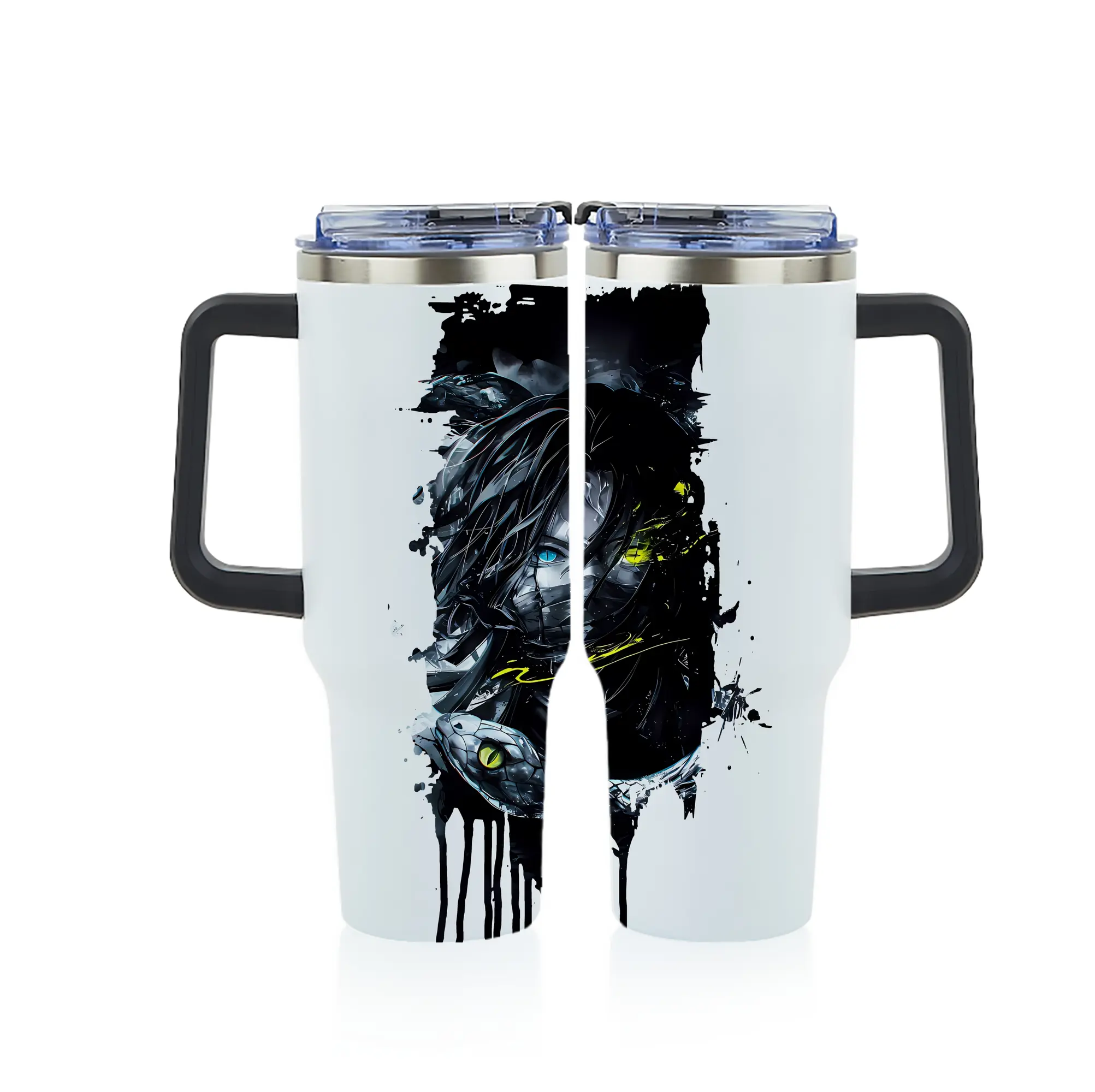 この40オンスカータンブラーは、洗練されたフルラップUVプリントで鮮やかな色彩と優れた耐久性を実現。304ステンレス製内側と201ステンレス製外側の組み合わせにより、長期間の使用に耐え、錆びにくく安全に飲料を楽しめます。