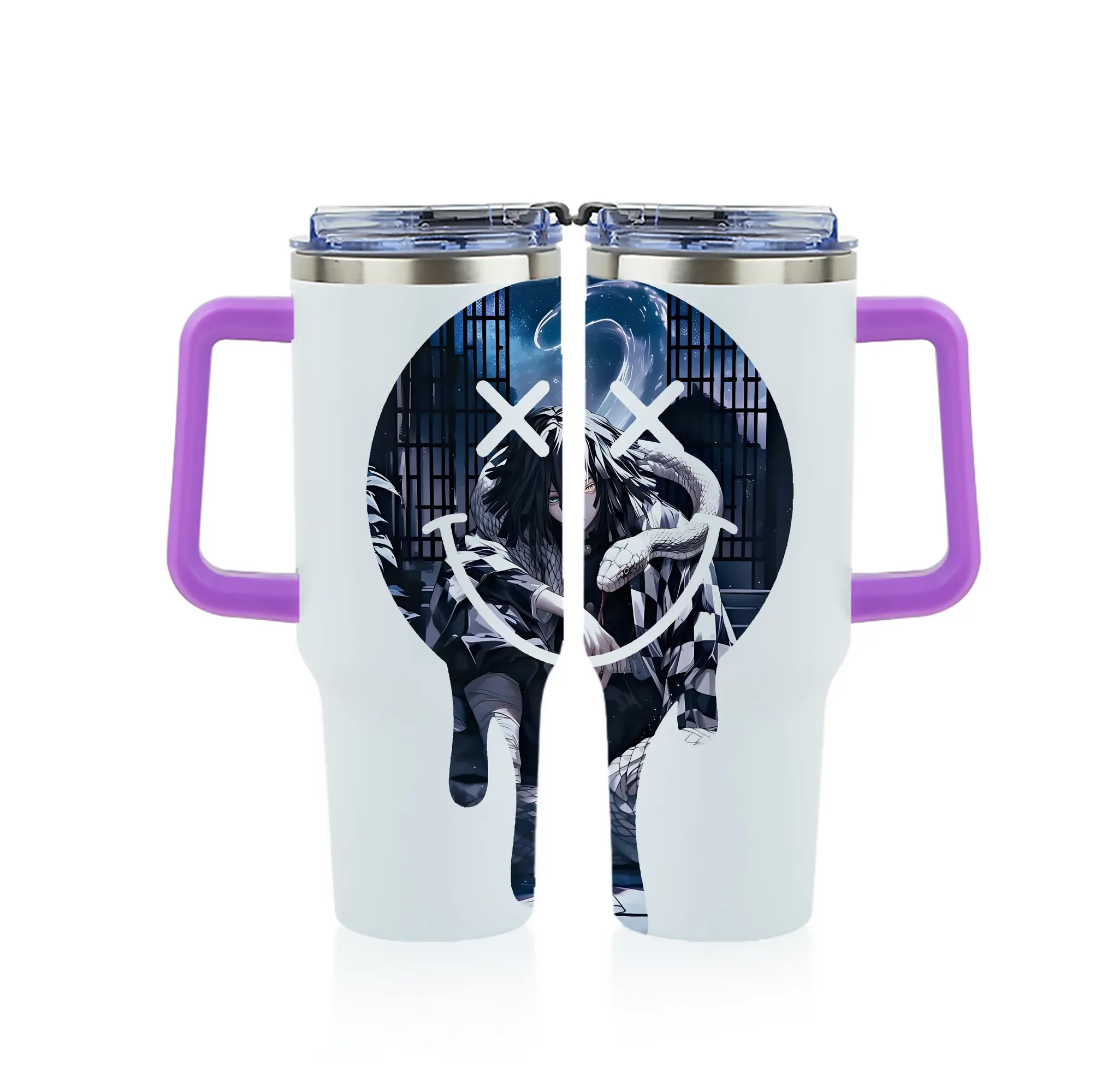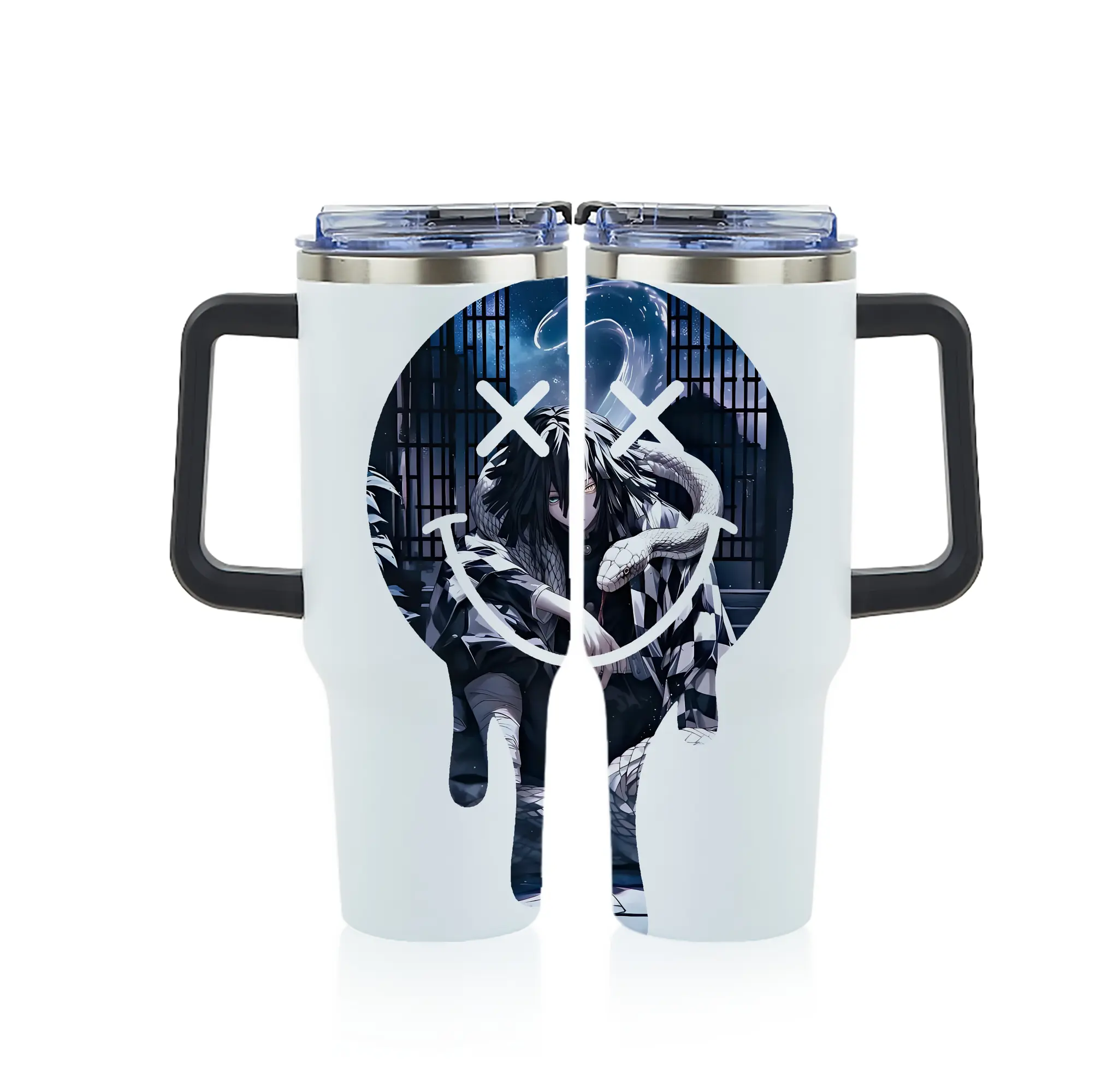 鬼滅の刃 グッズ,伊黒 小芭内 - 1200mL フルプリント車用タンブラー ・ 304ステンレス 内側 ・ 201ステンレス 外側 ・ 保温 保冷 ・ 通勤 ドライブ アウトドア用