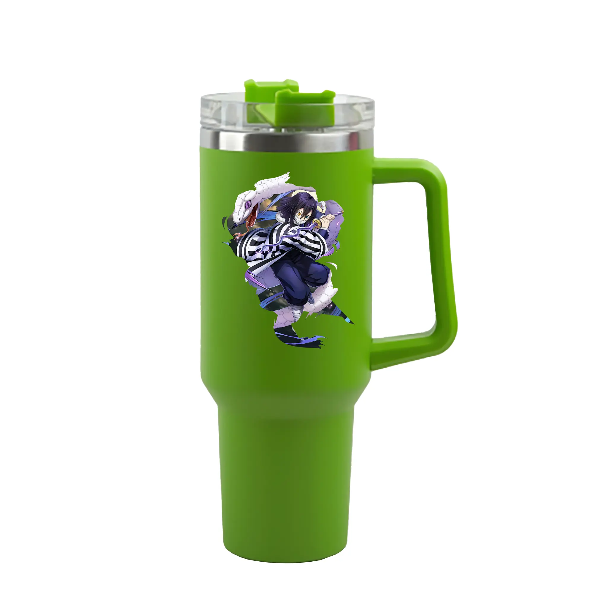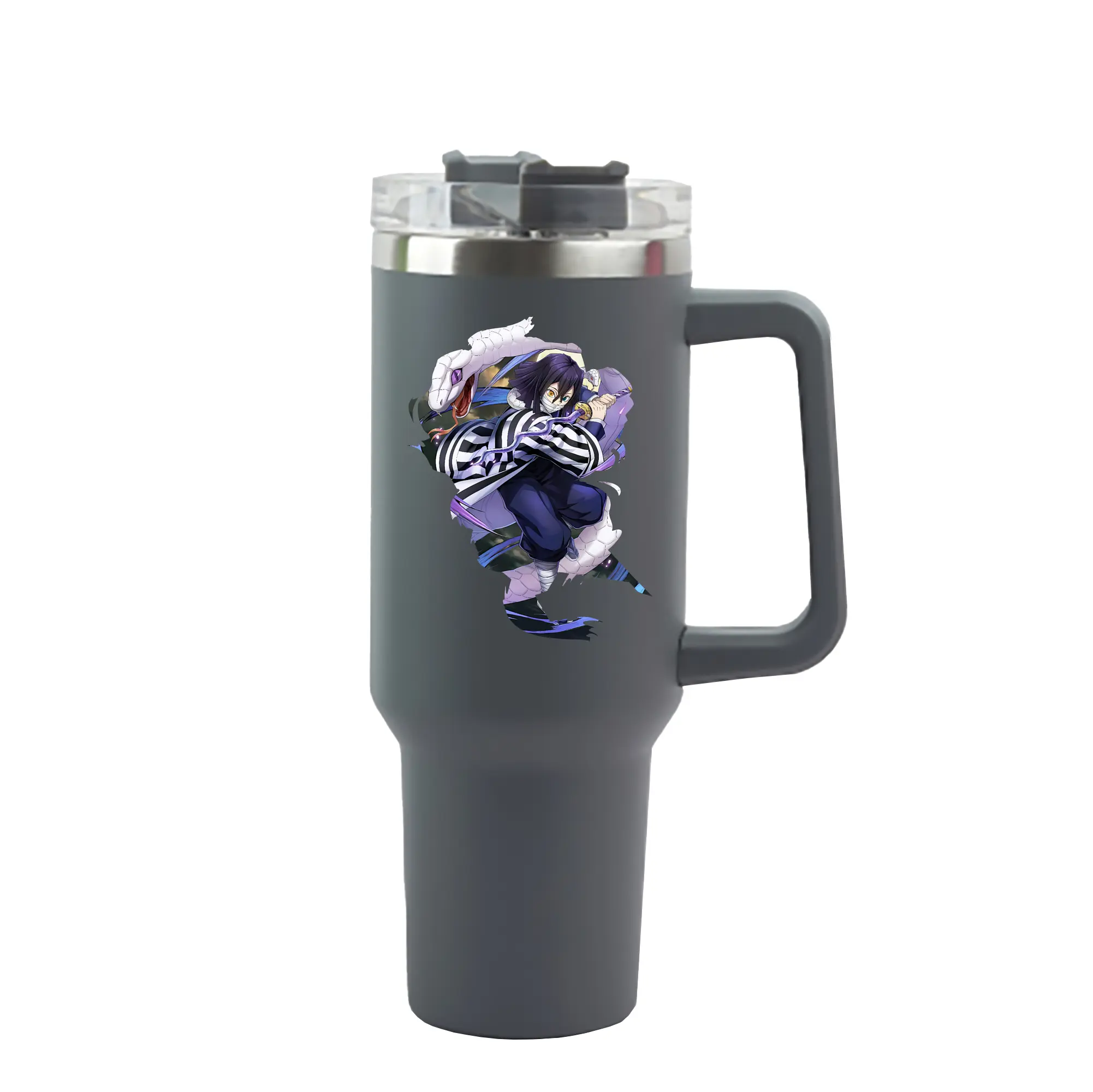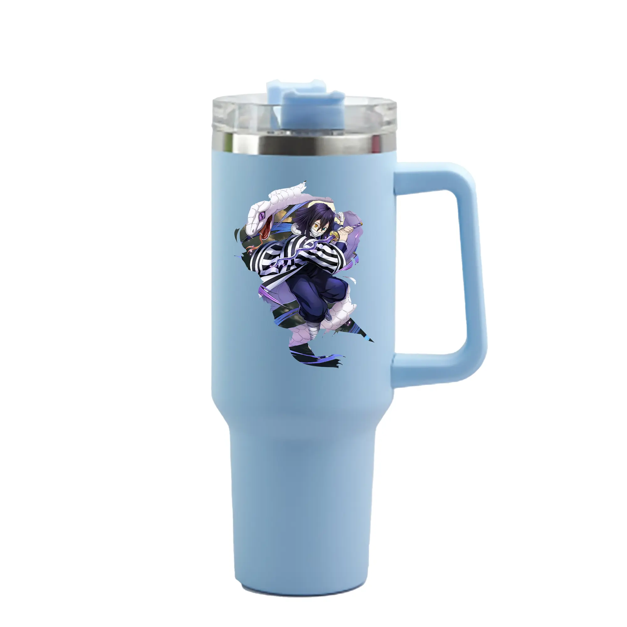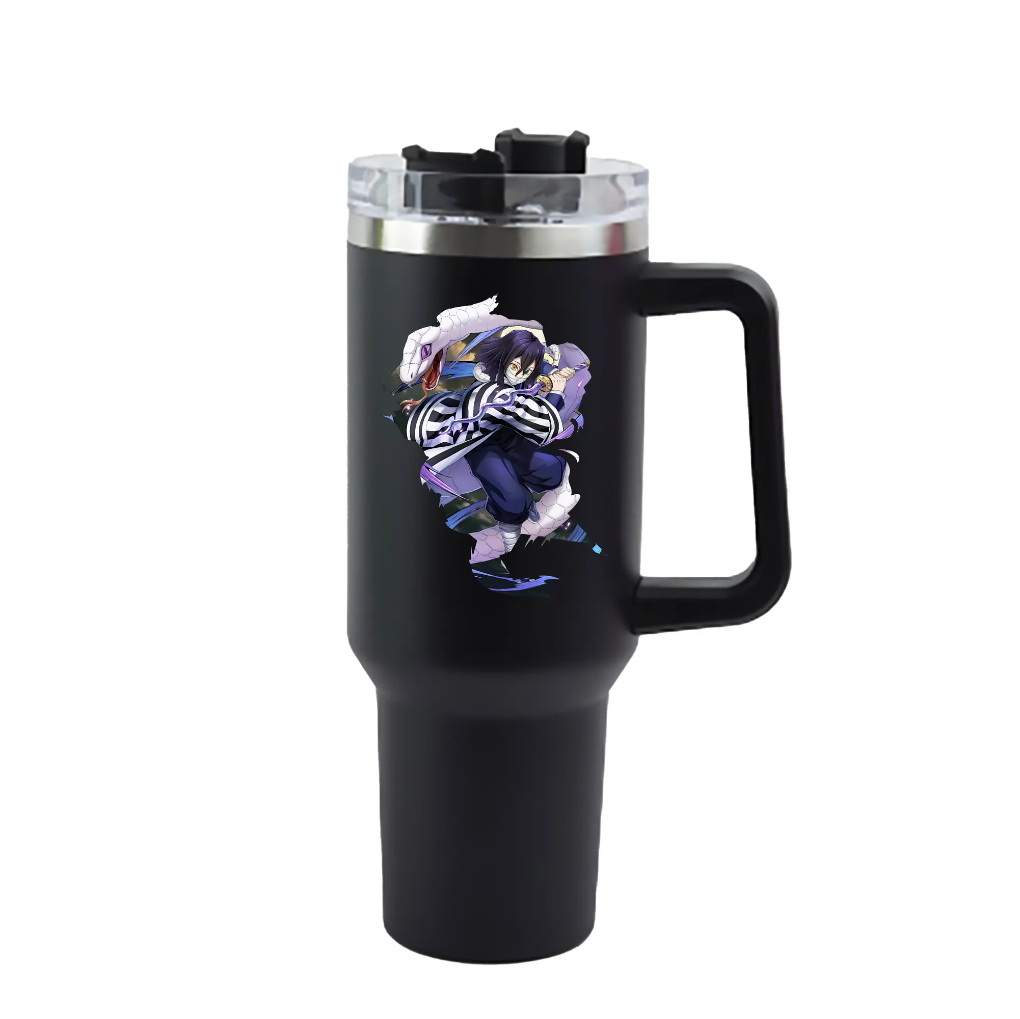 鬼滅の刃 グッズ,伊黒 小芭内 - 1200mL 車用タンブラー ・ クリスタルステッカー ・ 304ステンレス 内側 ・ 201ステンレス 外側 ・ 保温 保冷 ・ ハンドル&ストロー付き ・ 通勤 ドライブ アウトドア用