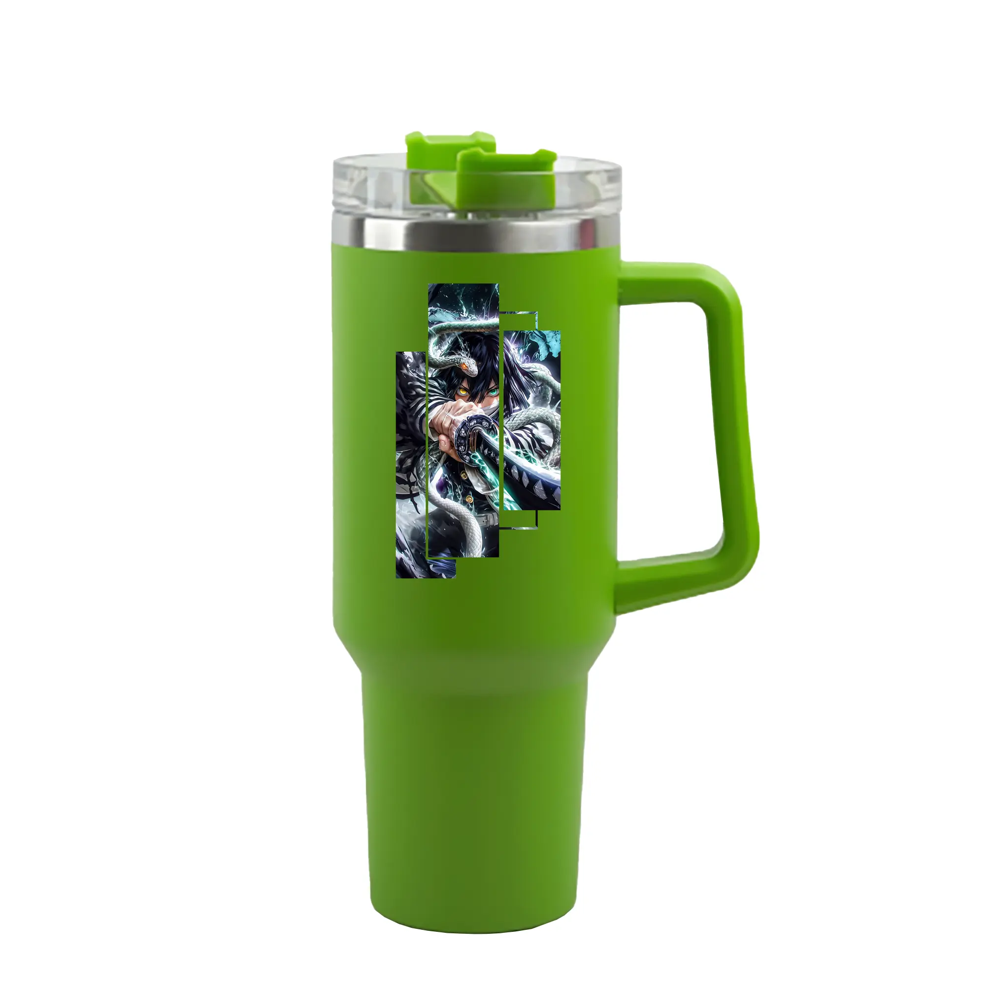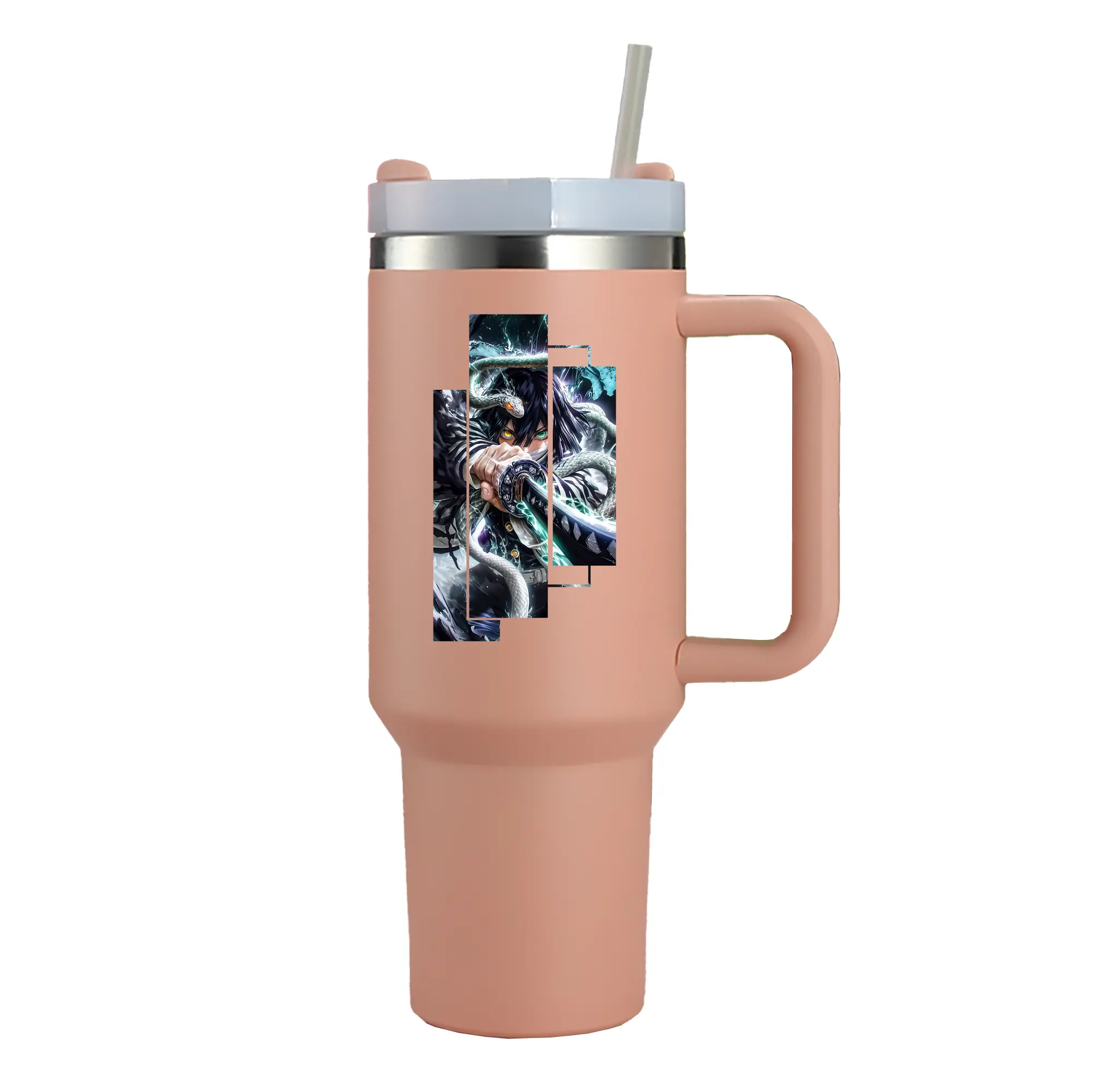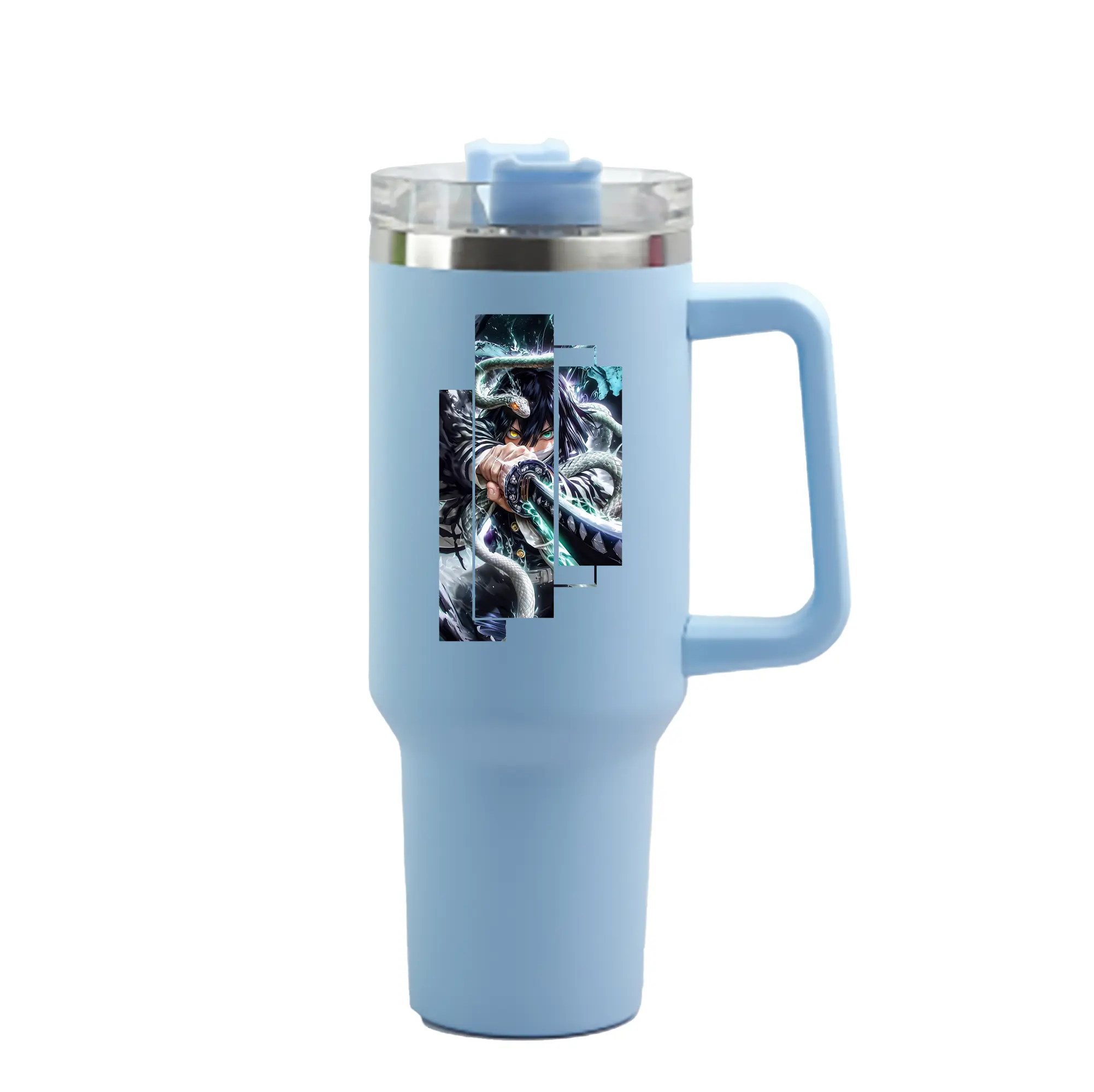 鬼滅の刃 グッズ,伊黒 小芭内 - 1200mL 車用タンブラー ・ クリスタルステッカー ・ 304ステンレス 内側 ・ 201ステンレス 外側 ・ 保温 保冷 ・ ハンドル&ストロー付き ・ 通勤 ドライブ アウトドア用