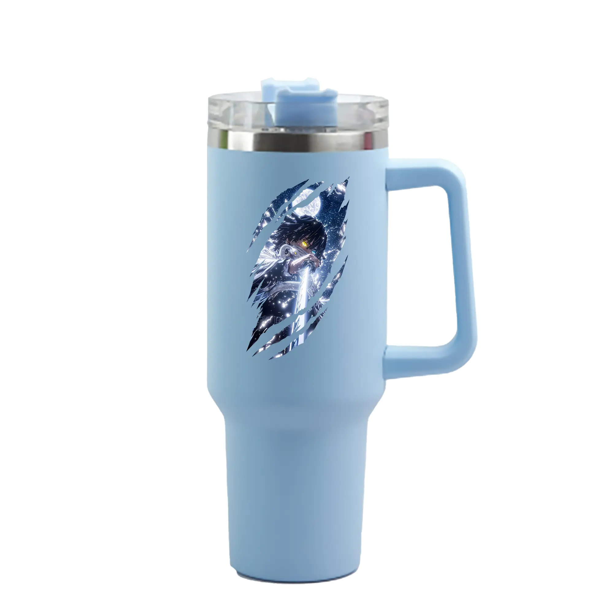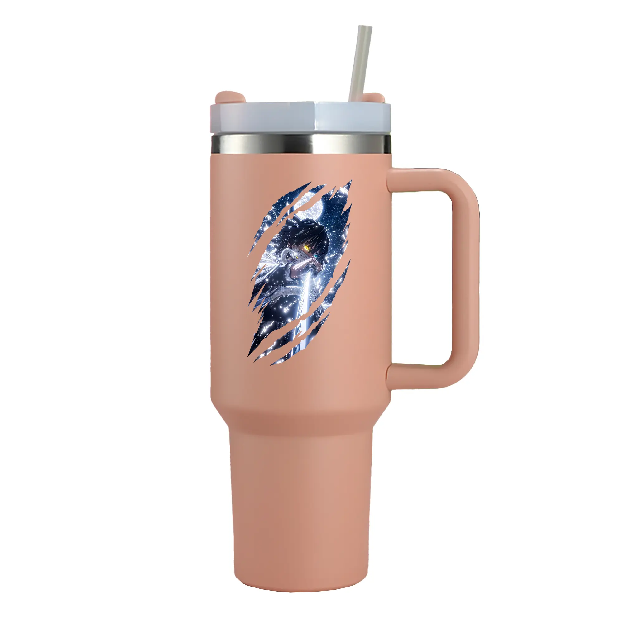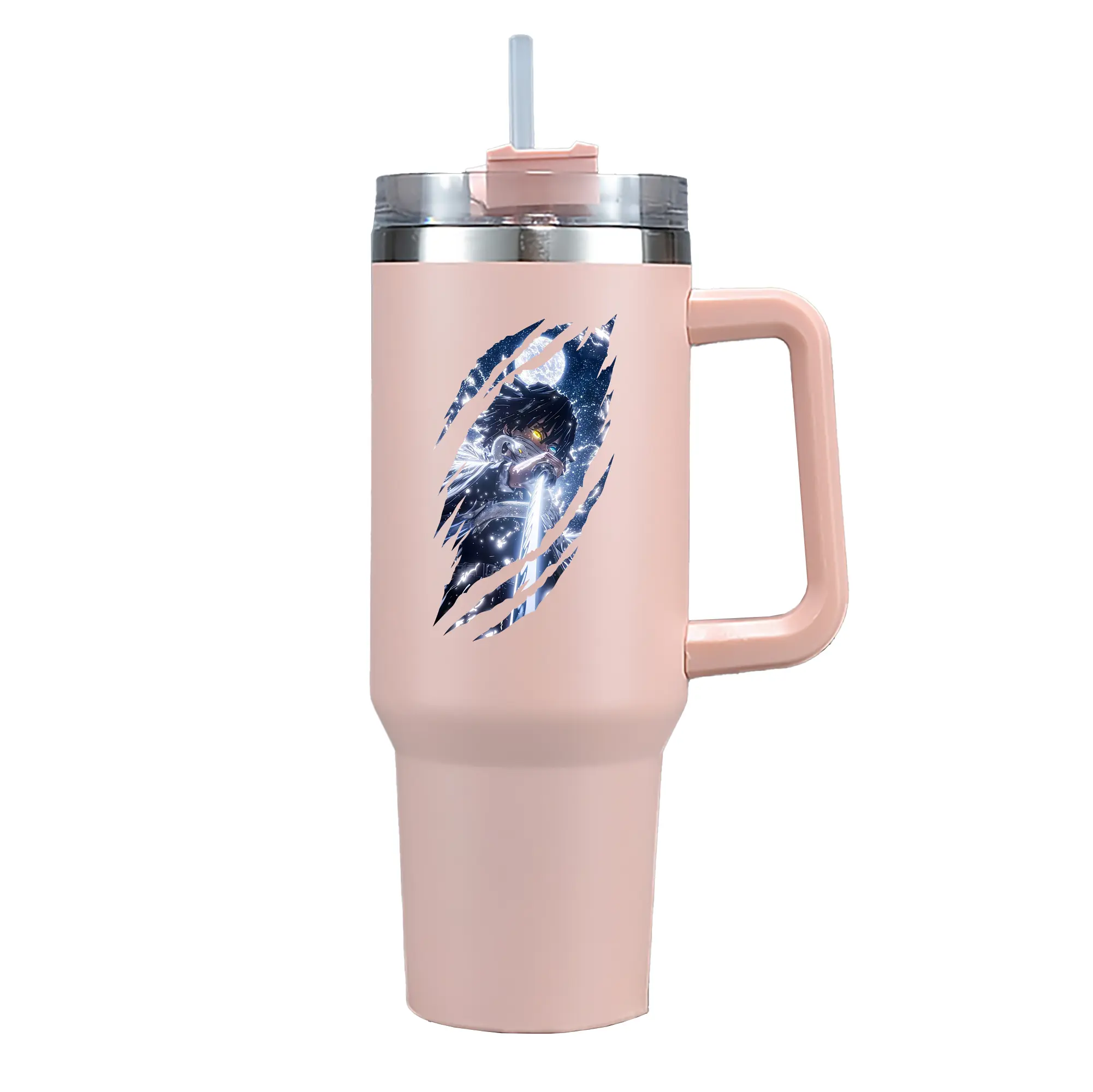 1200mL(40オンス)の大容量ハンドル付きカータンブラー。キラキラと輝くクリスタルステッカーデザインが、毎日の使用に華やかさをプラスします。食品グレード304ステンレスの内側と頑丈な201ステンレスの外側を採用し、耐久性・耐腐食性・安全性を兼ね備えています。
