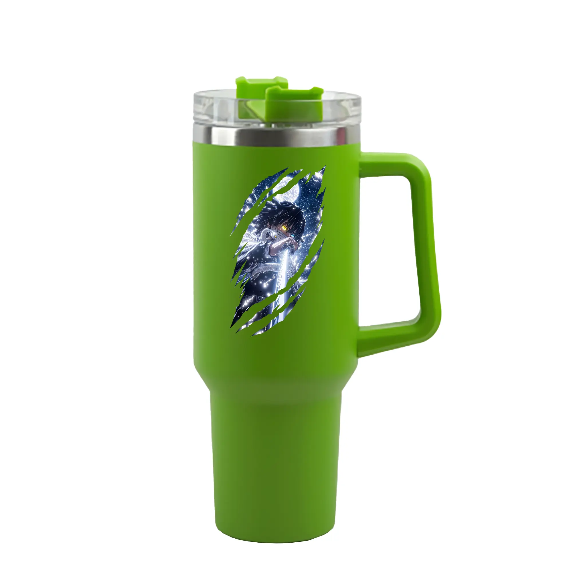 鬼滅の刃 グッズ,伊黒 小芭内 - 1200mL 車用タンブラー ・ クリスタルステッカー ・ 304ステンレス 内側 ・ 201ステンレス 外側 ・ 保温 保冷 ・ ハンドル&ストロー付き ・ 通勤 ドライブ アウトドア用