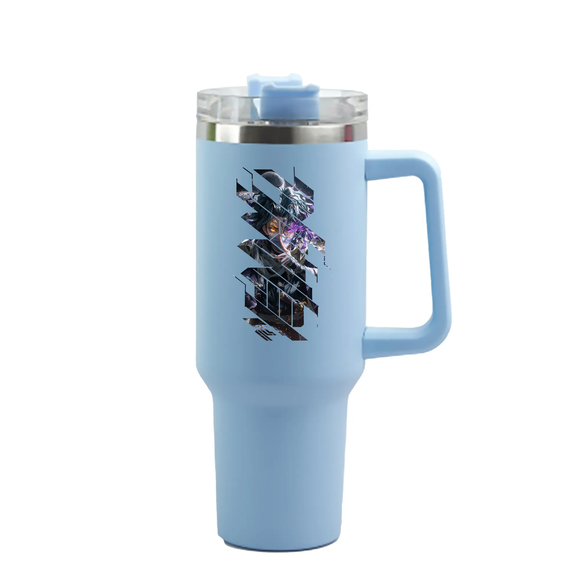 鬼滅の刃 グッズ,伊黒 小芭内 - 1200mL 車用タンブラー ・ クリスタルステッカー ・ 304ステンレス 内側 ・ 201ステンレス 外側 ・ 保温 保冷 ・ ハンドル&ストロー付き ・ 通勤 ドライブ アウトドア用