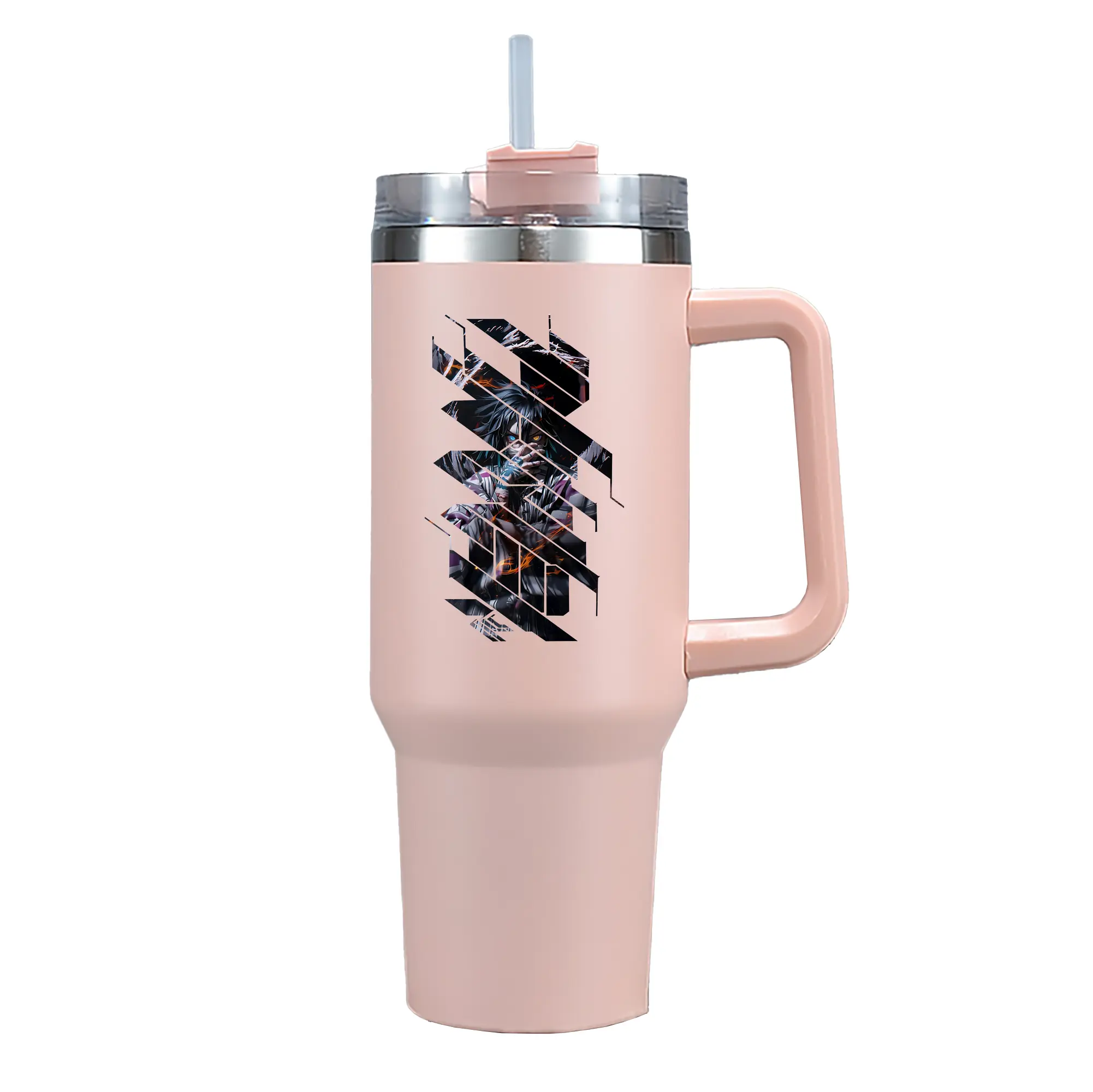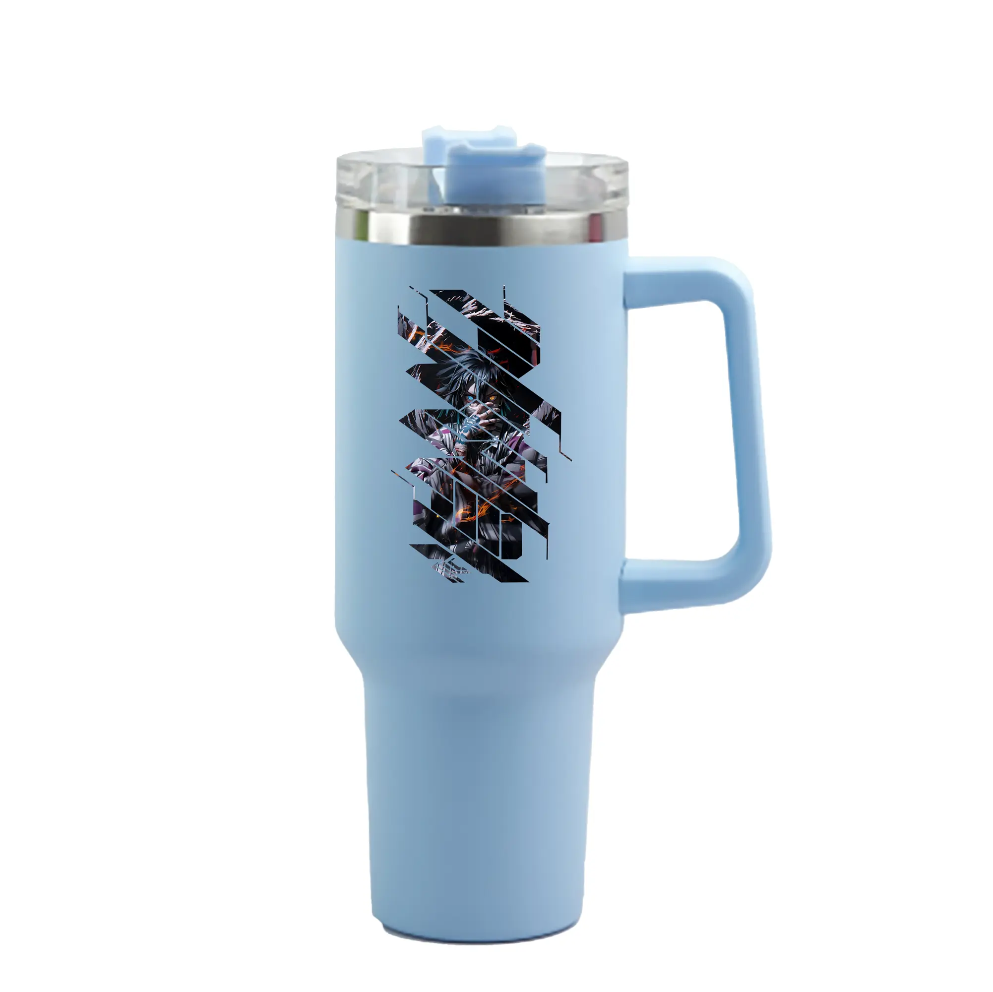 鬼滅の刃 グッズ,伊黒 小芭内 - 1200mL 車用タンブラー ・ クリスタルステッカー ・ 304ステンレス 内側 ・ 201ステンレス 外側 ・ 保温 保冷 ・ ハンドル&ストロー付き ・ 通勤 ドライブ アウトドア用