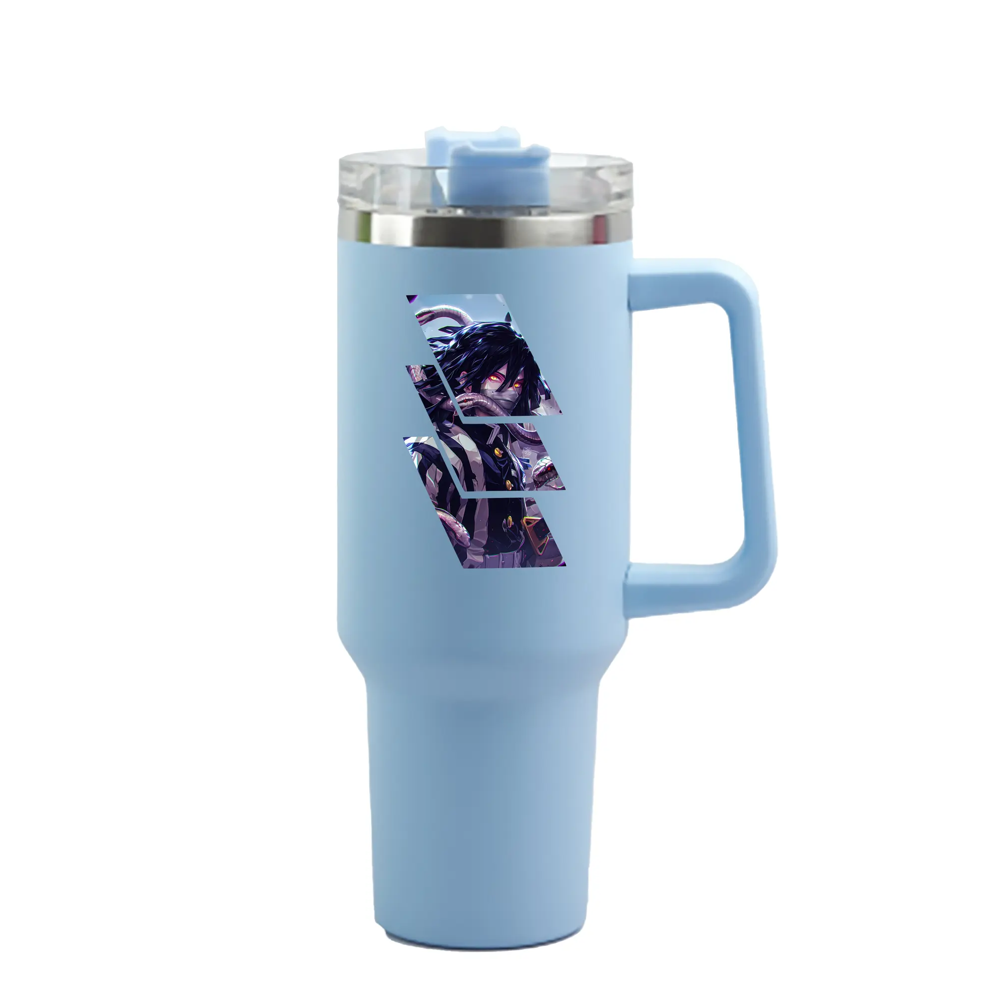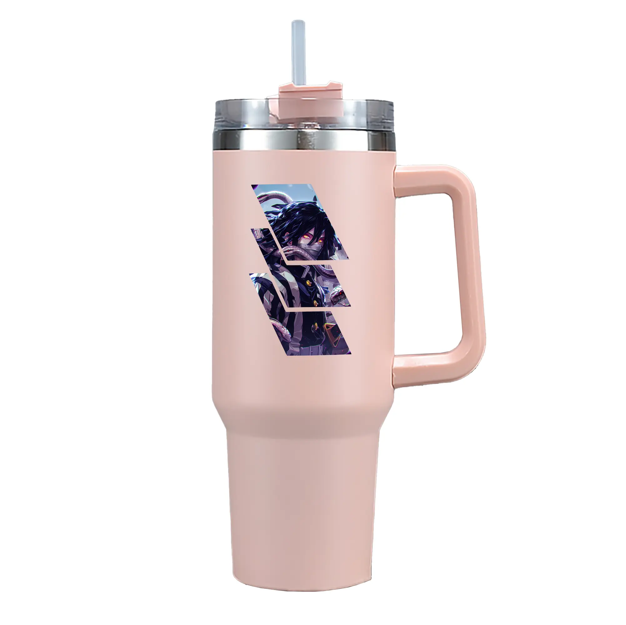 鬼滅の刃 グッズ,伊黒 小芭内 - 1200mL 車用タンブラー ・ クリスタルステッカー ・ 304ステンレス 内側 ・ 201ステンレス 外側 ・ 保温 保冷 ・ ハンドル&ストロー付き ・ 通勤 ドライブ アウトドア用