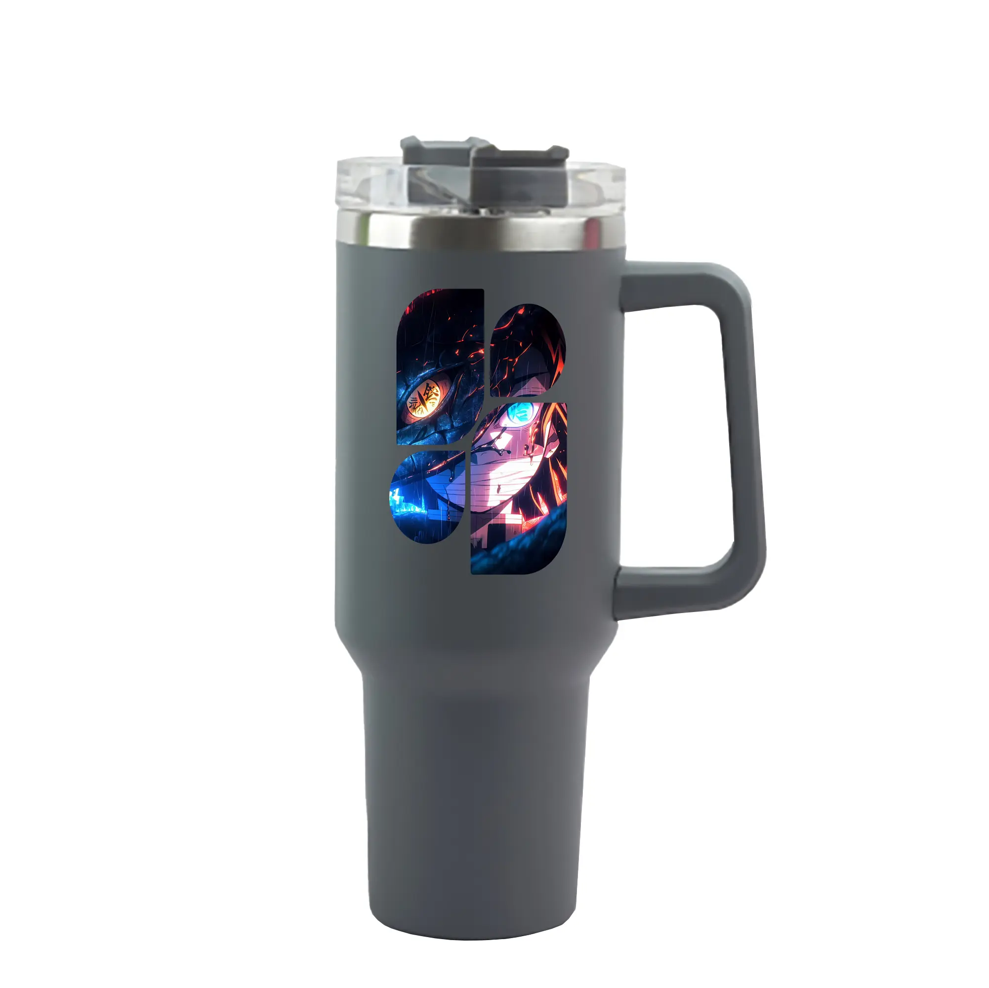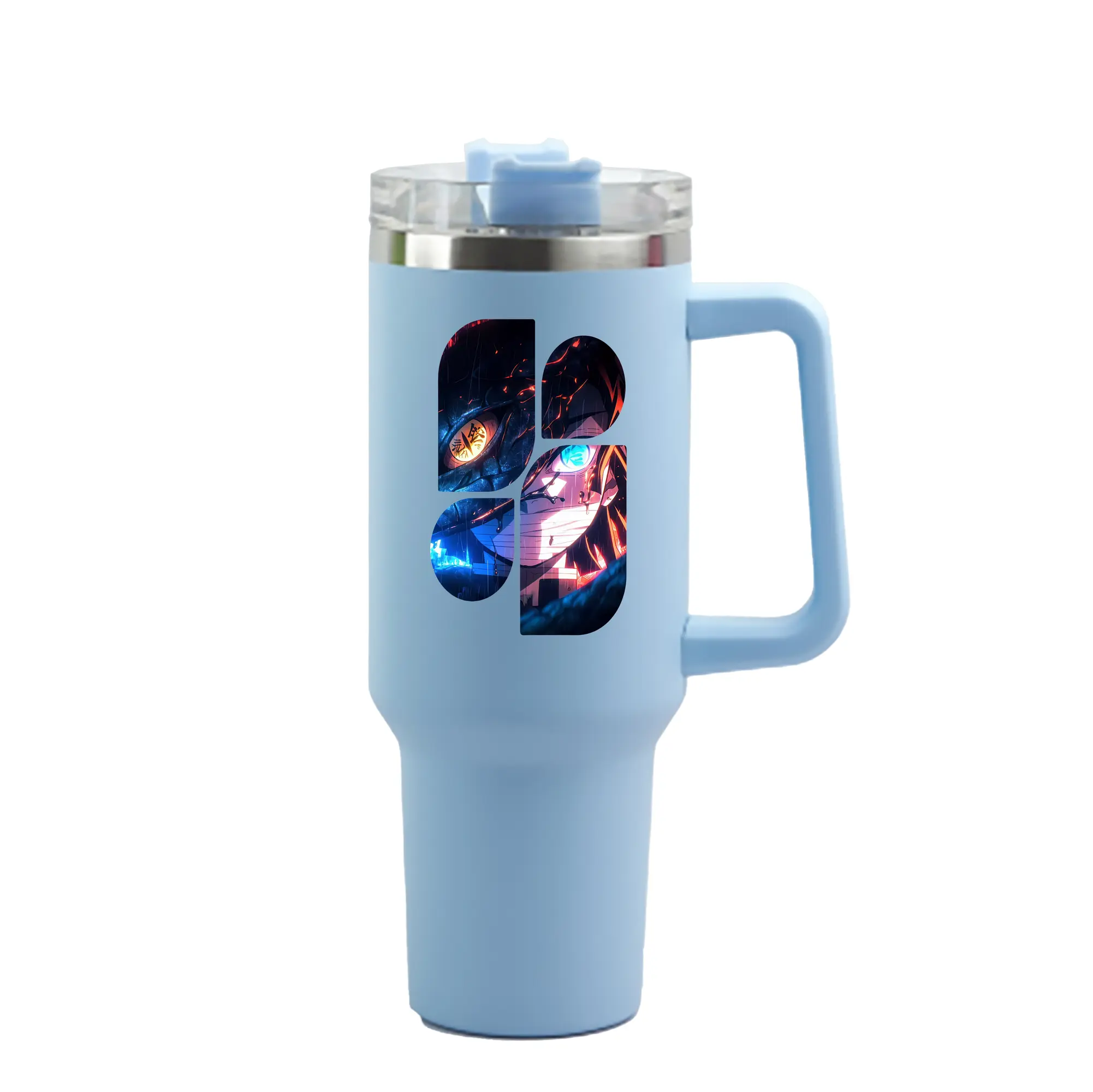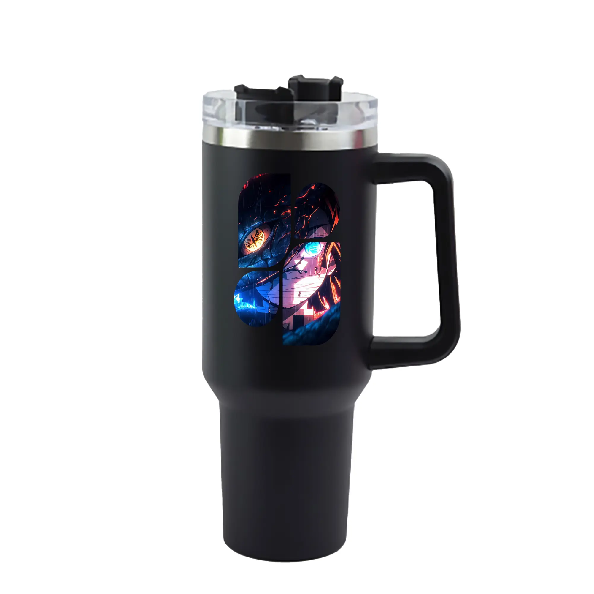 鬼滅の刃 グッズ,伊黒 小芭内 - 1200mL 車用タンブラー ・ クリスタルステッカー ・ 304ステンレス 内側 ・ 201ステンレス 外側 ・ 保温 保冷 ・ ハンドル&ストロー付き ・ 通勤 ドライブ アウトドア用