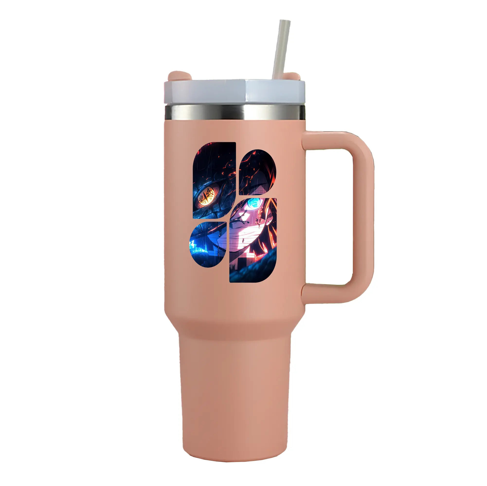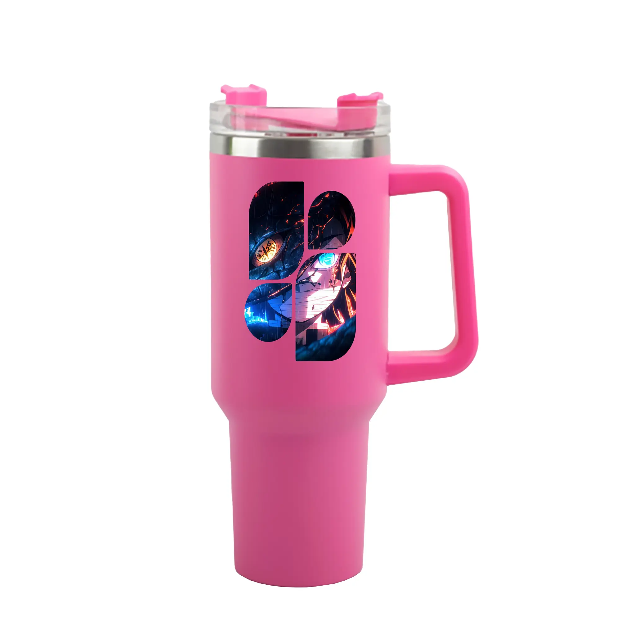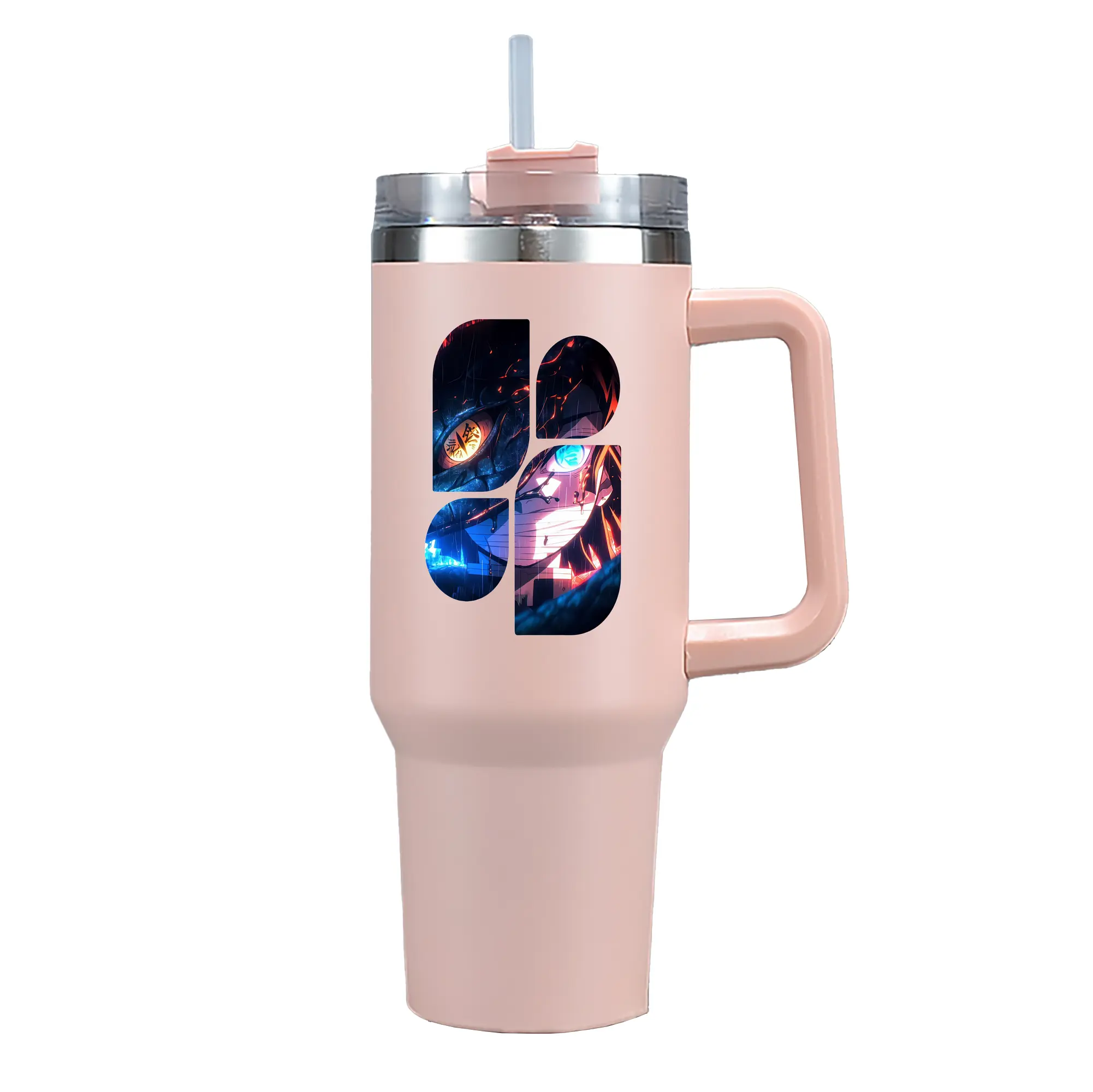 鬼滅の刃 グッズ,伊黒 小芭内 - 1200mL 車用タンブラー ・ クリスタルステッカー ・ 304ステンレス 内側 ・ 201ステンレス 外側 ・ 保温 保冷 ・ ハンドル&ストロー付き ・ 通勤 ドライブ アウトドア用