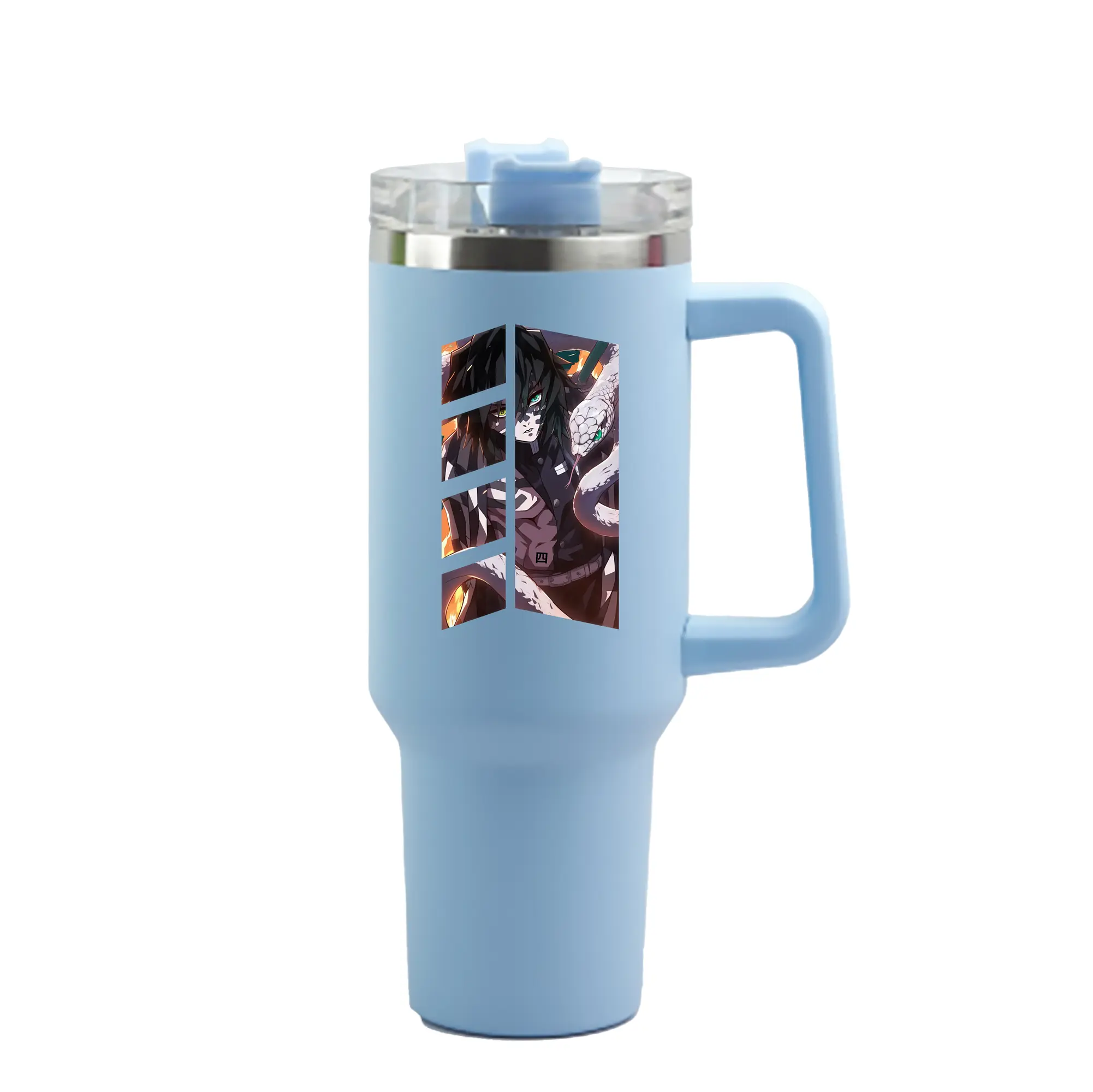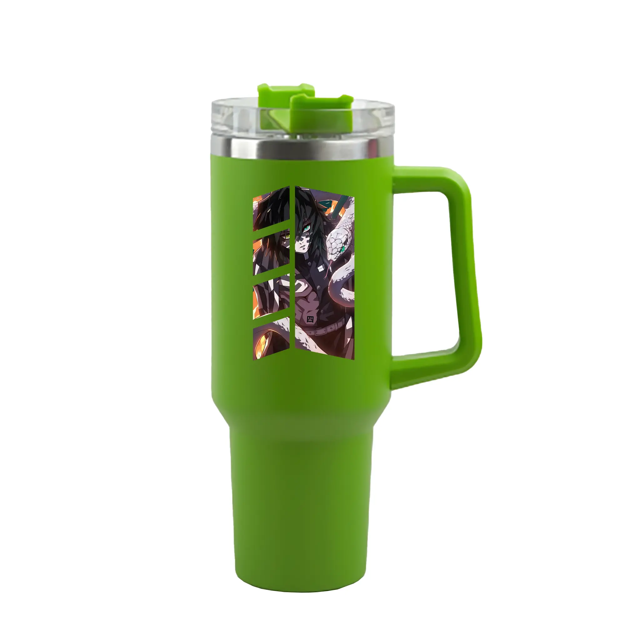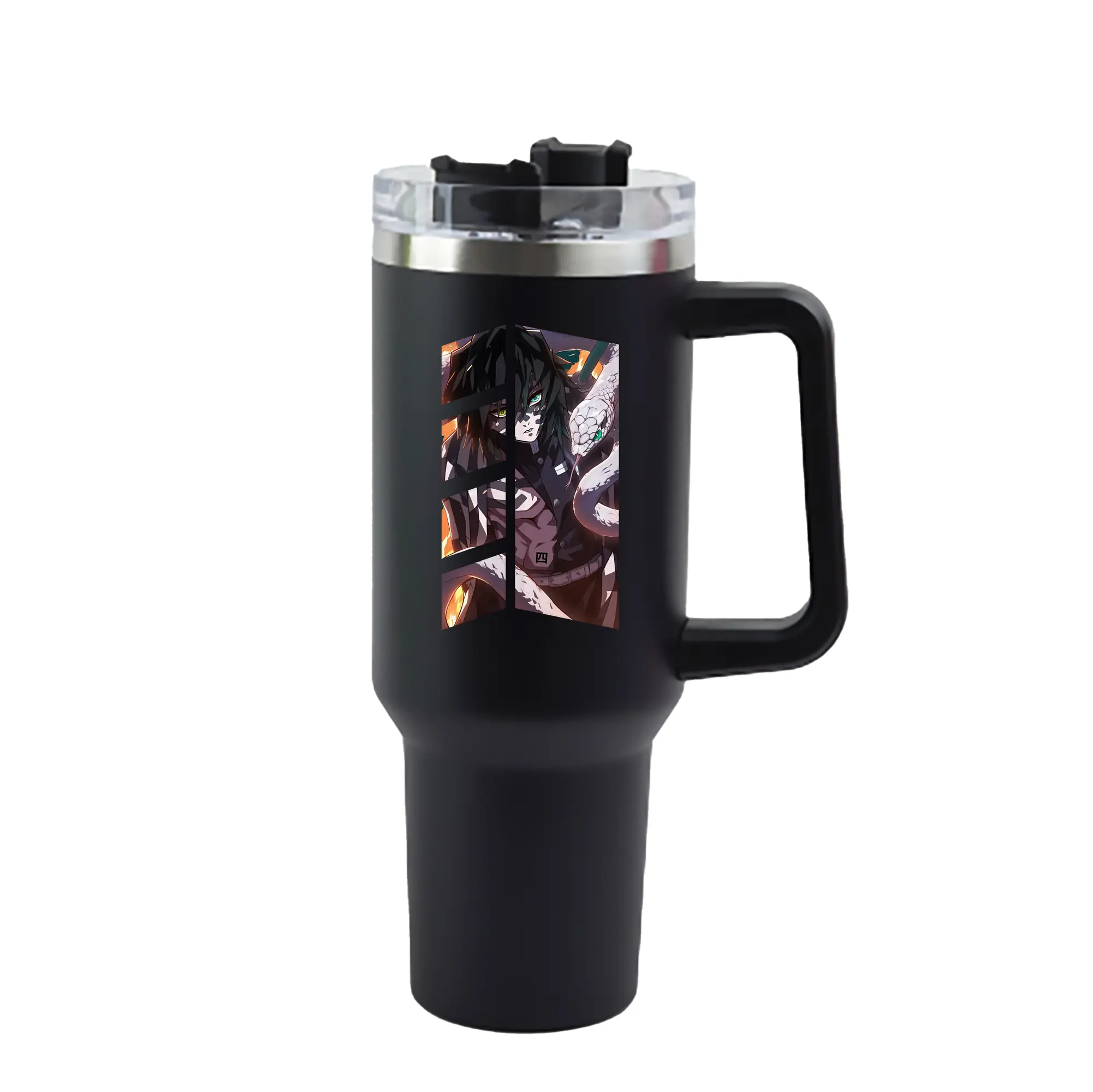 鬼滅の刃 グッズ,伊黒 小芭内 - 1200mL 車用タンブラー ・ クリスタルステッカー ・ 304ステンレス 内側 ・ 201ステンレス 外側 ・ 保温 保冷 ・ ハンドル&ストロー付き ・ 通勤 ドライブ アウトドア用