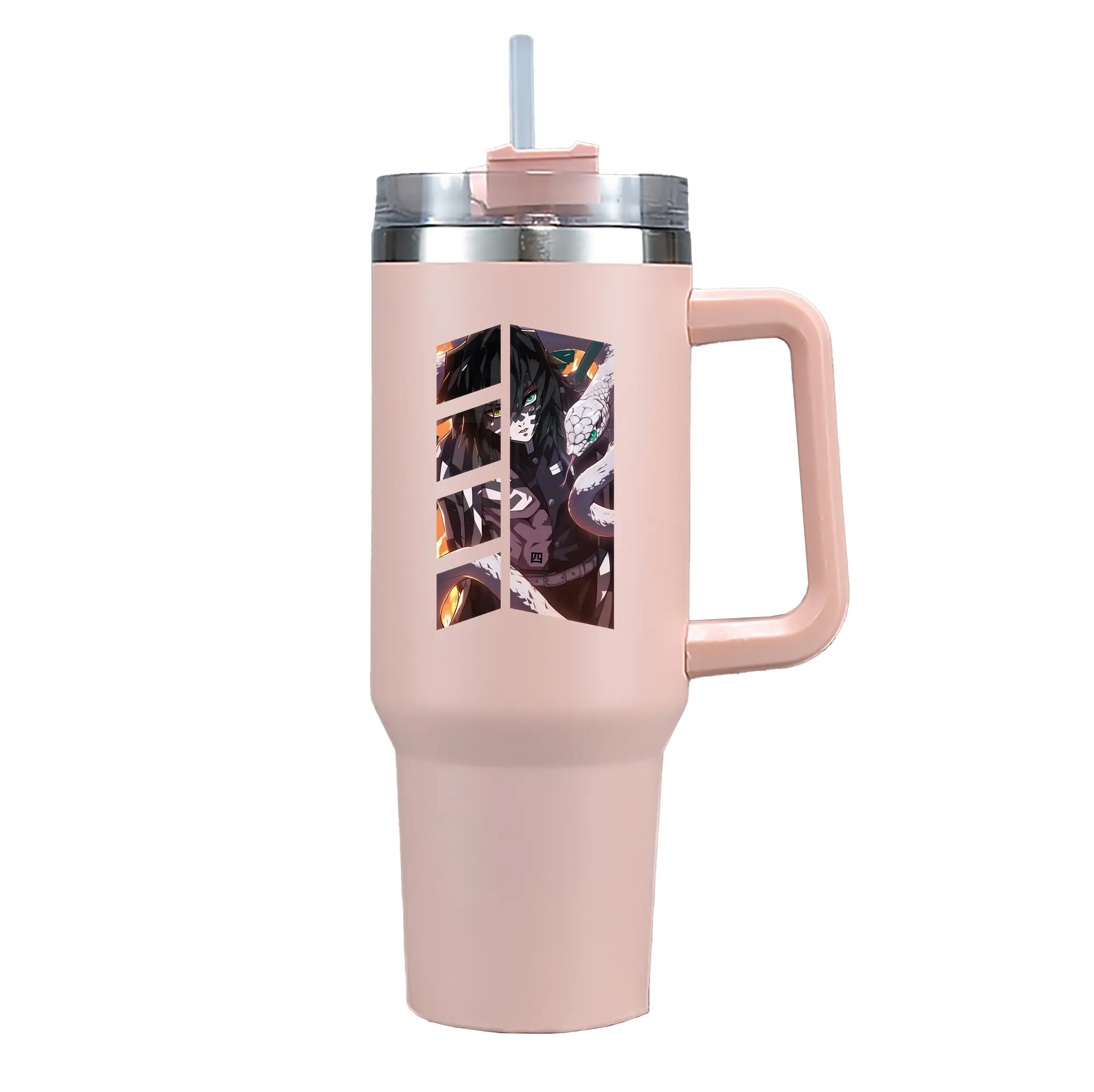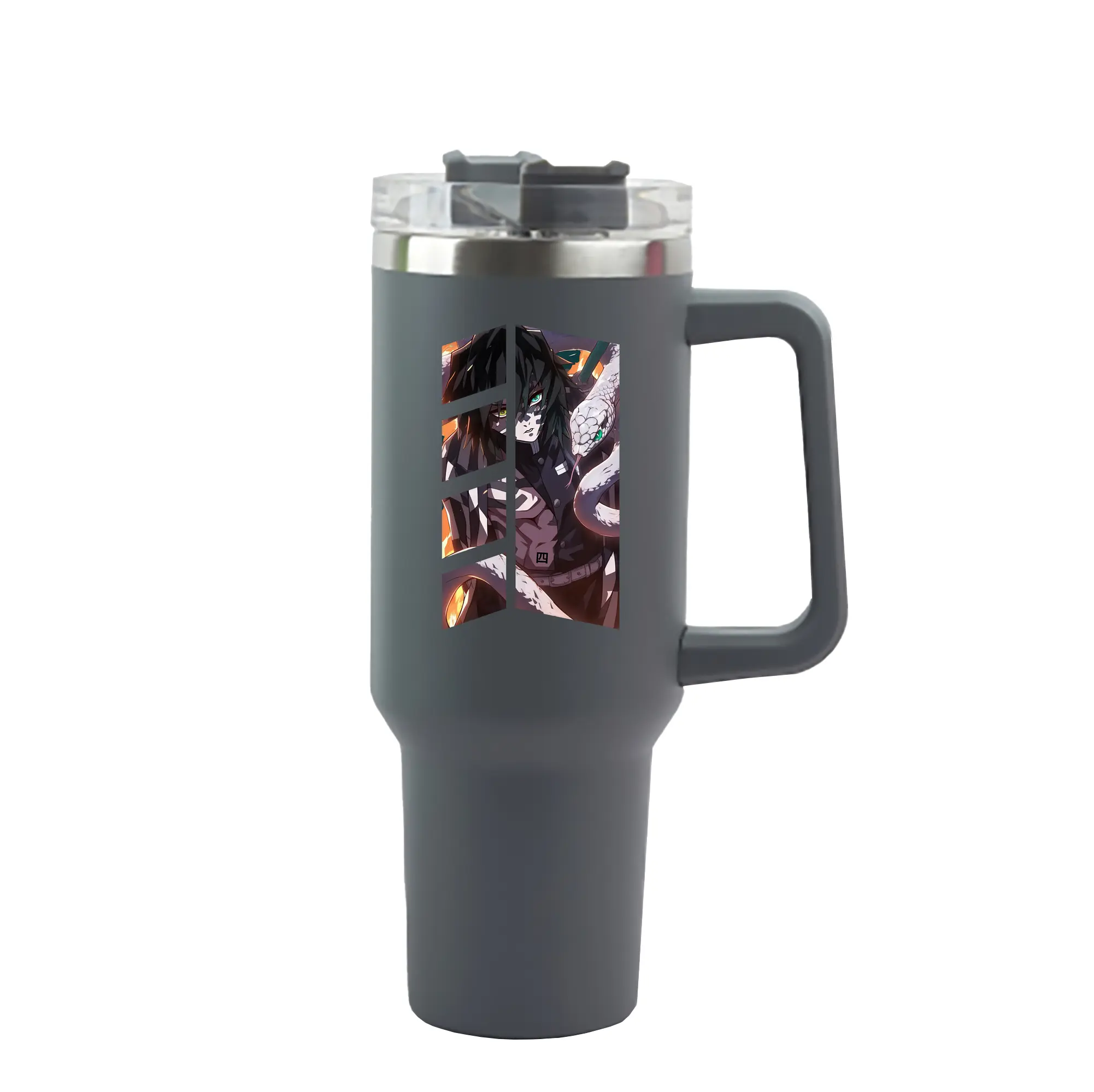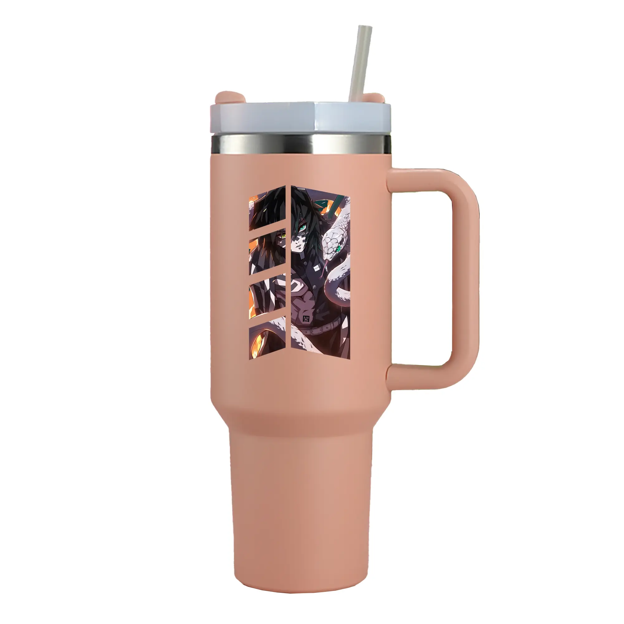鬼滅の刃 グッズ,伊黒 小芭内 - 1200mL 車用タンブラー ・ クリスタルステッカー ・ 304ステンレス 内側 ・ 201ステンレス 外側 ・ 保温 保冷 ・ ハンドル&ストロー付き ・ 通勤 ドライブ アウトドア用