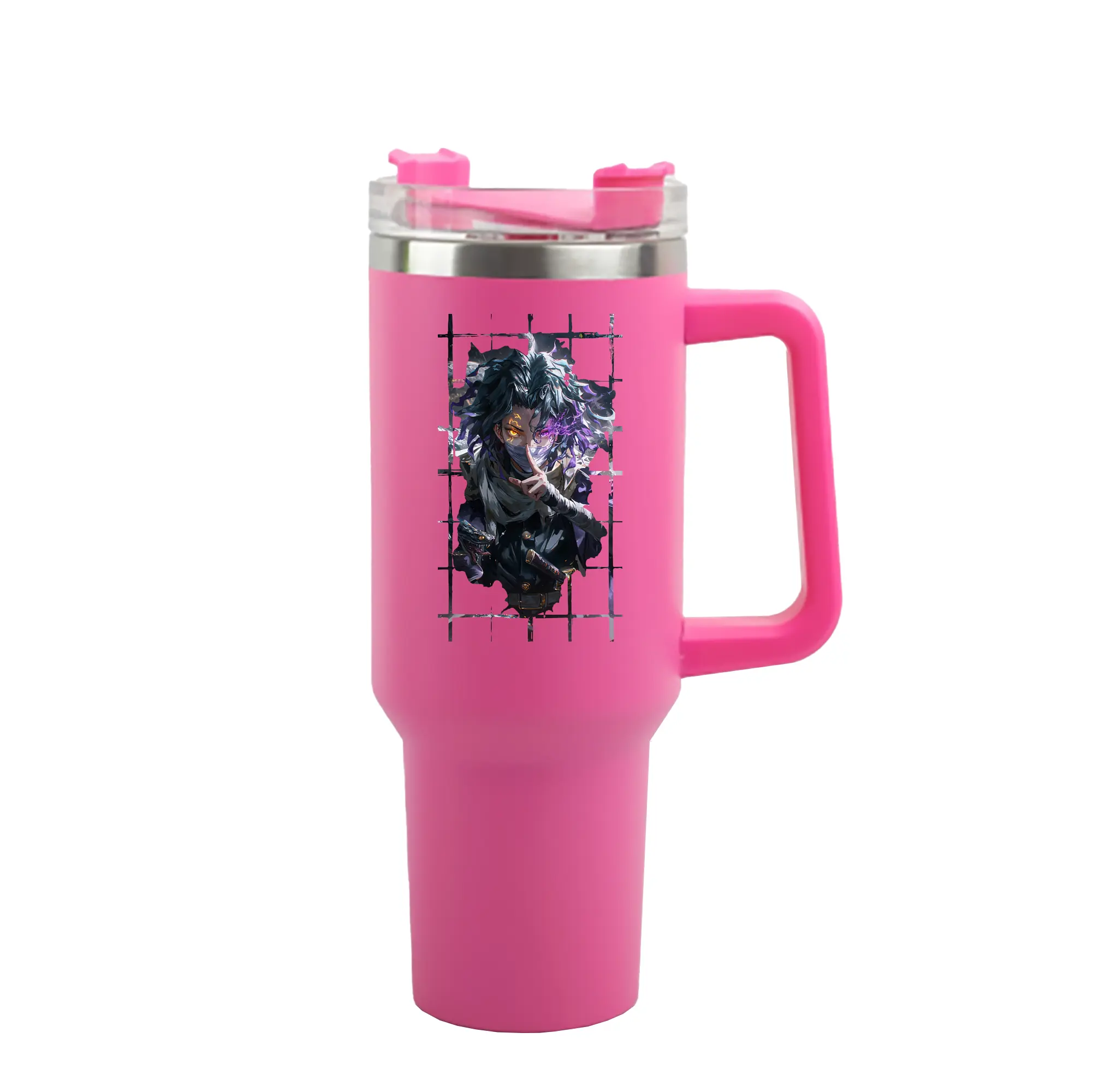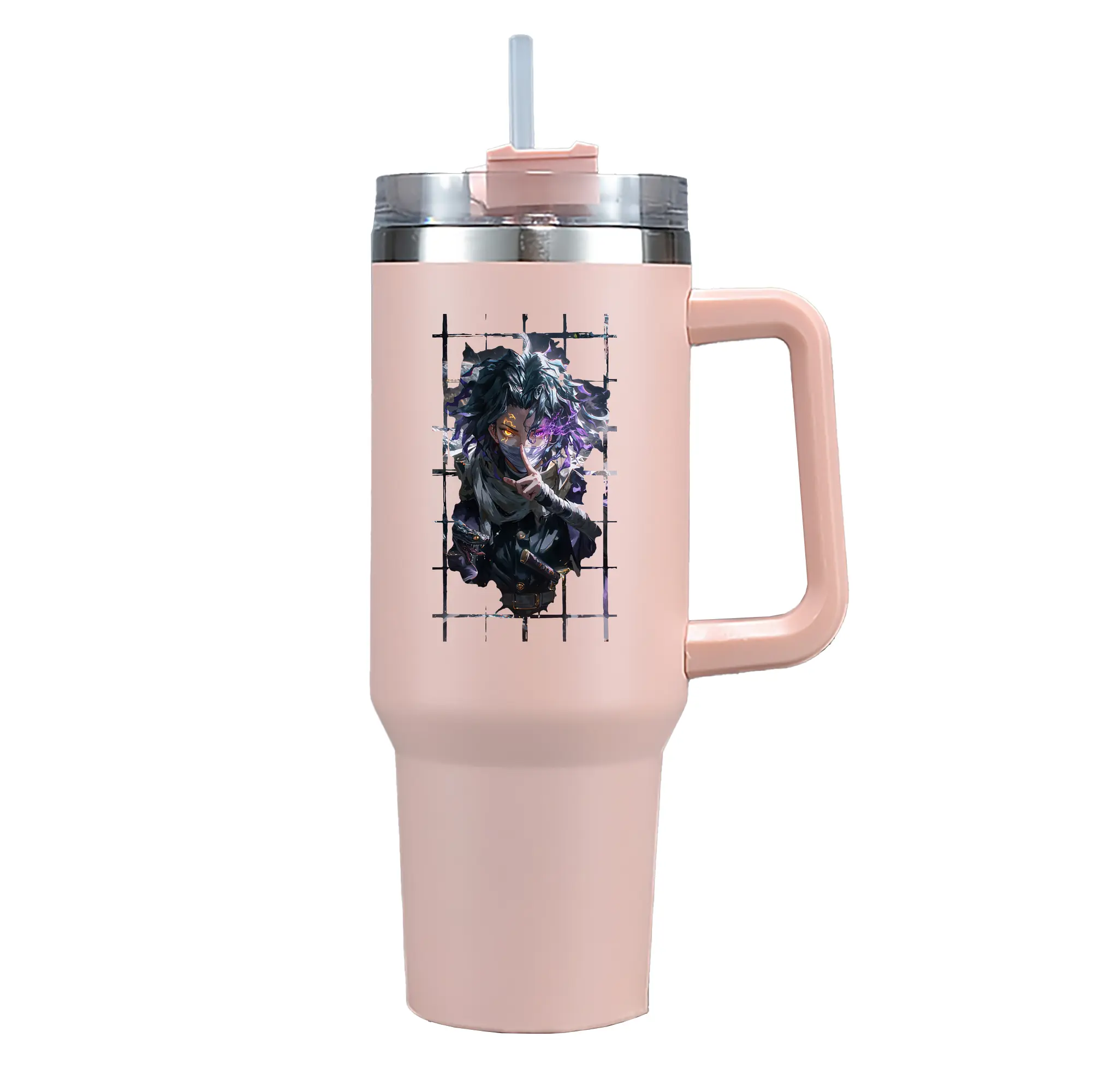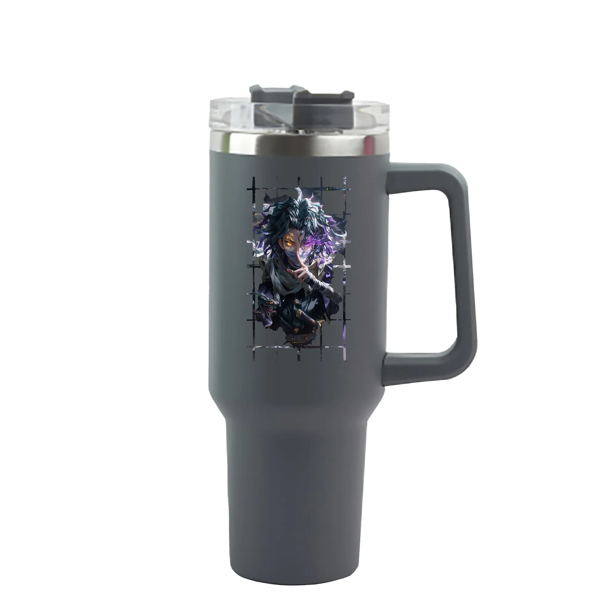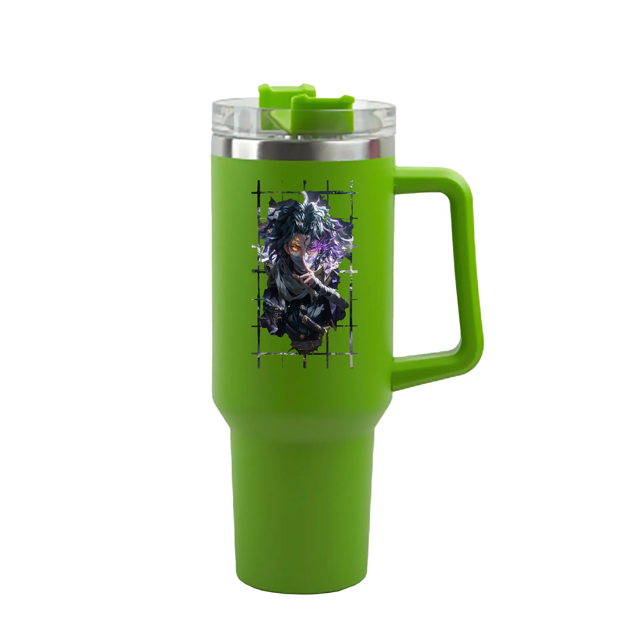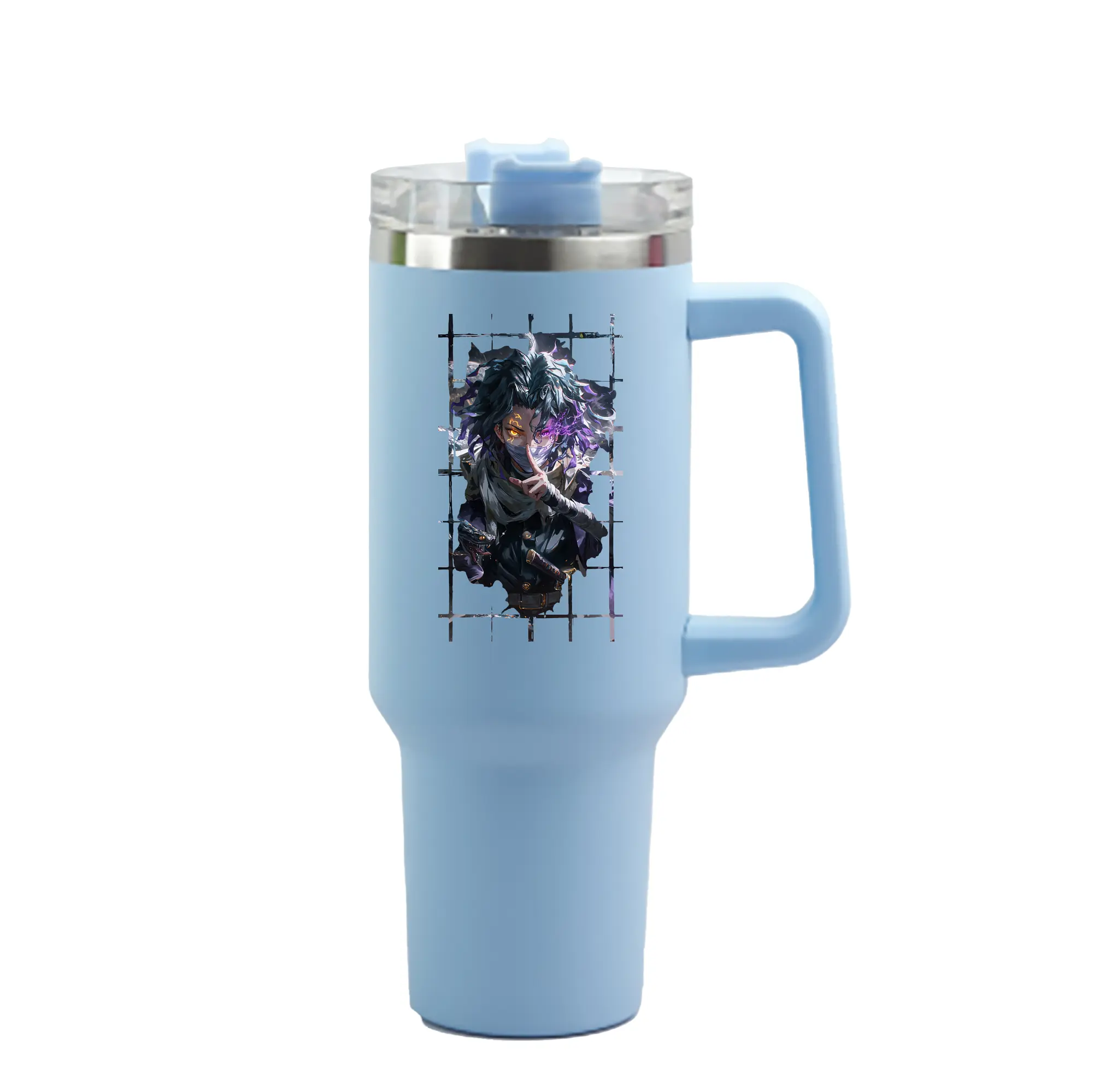 鬼滅の刃 グッズ,伊黒 小芭内 - 1200mL 車用タンブラー ・ クリスタルステッカー ・ 304ステンレス 内側 ・ 201ステンレス 外側 ・ 保温 保冷 ・ ハンドル&ストロー付き ・ 通勤 ドライブ アウトドア用