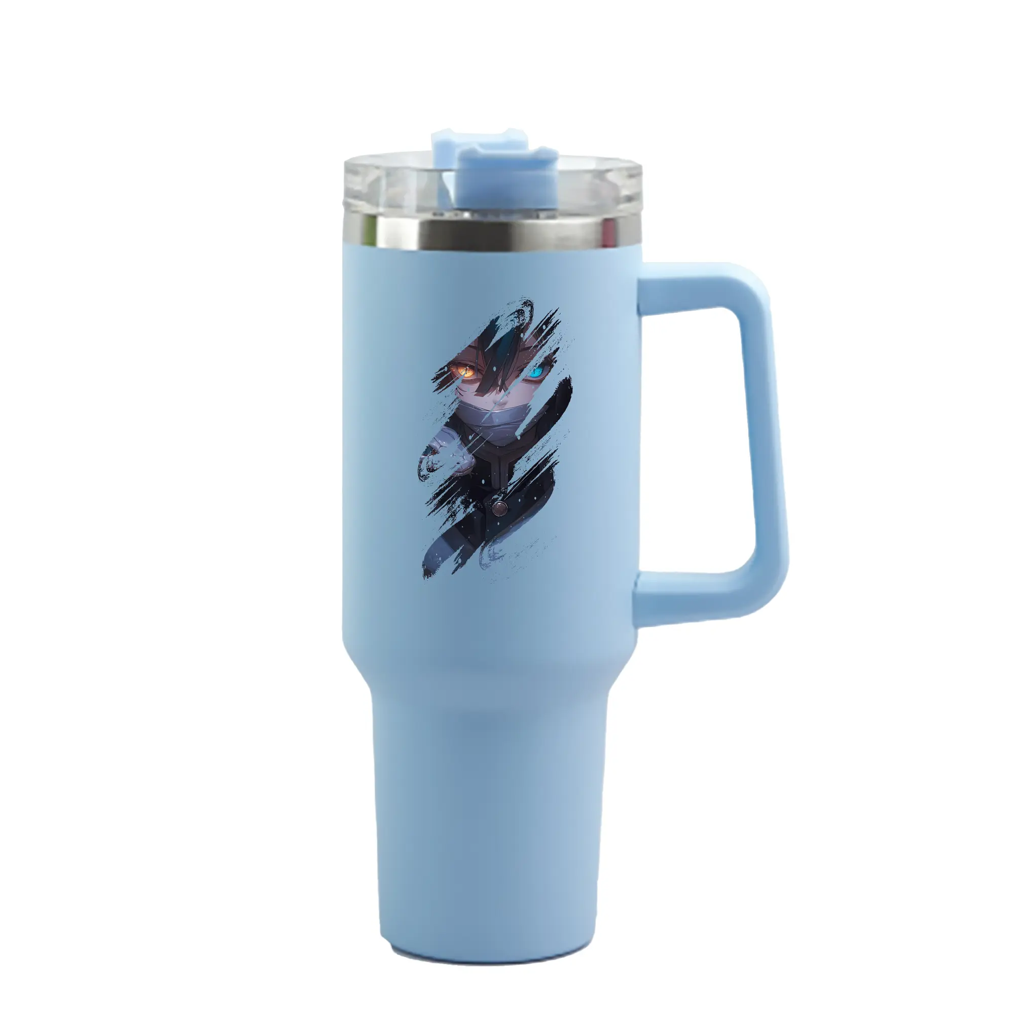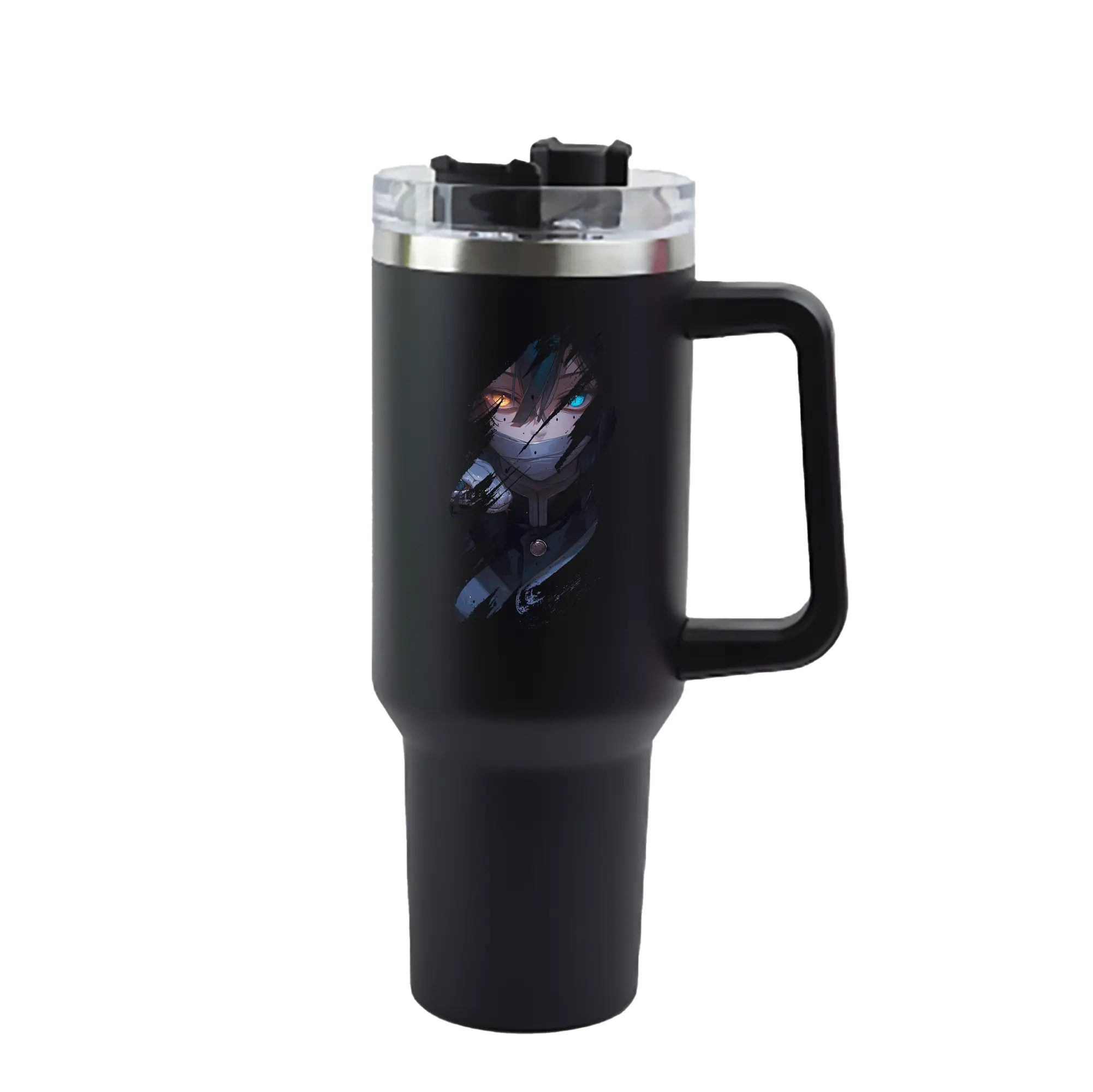 鬼滅の刃 グッズ,伊黒 小芭内 - 1200mL 車用タンブラー ・ クリスタルステッカー ・ 304ステンレス 内側 ・ 201ステンレス 外側 ・ 保温 保冷 ・ ハンドル&ストロー付き ・ 通勤 ドライブ アウトドア用