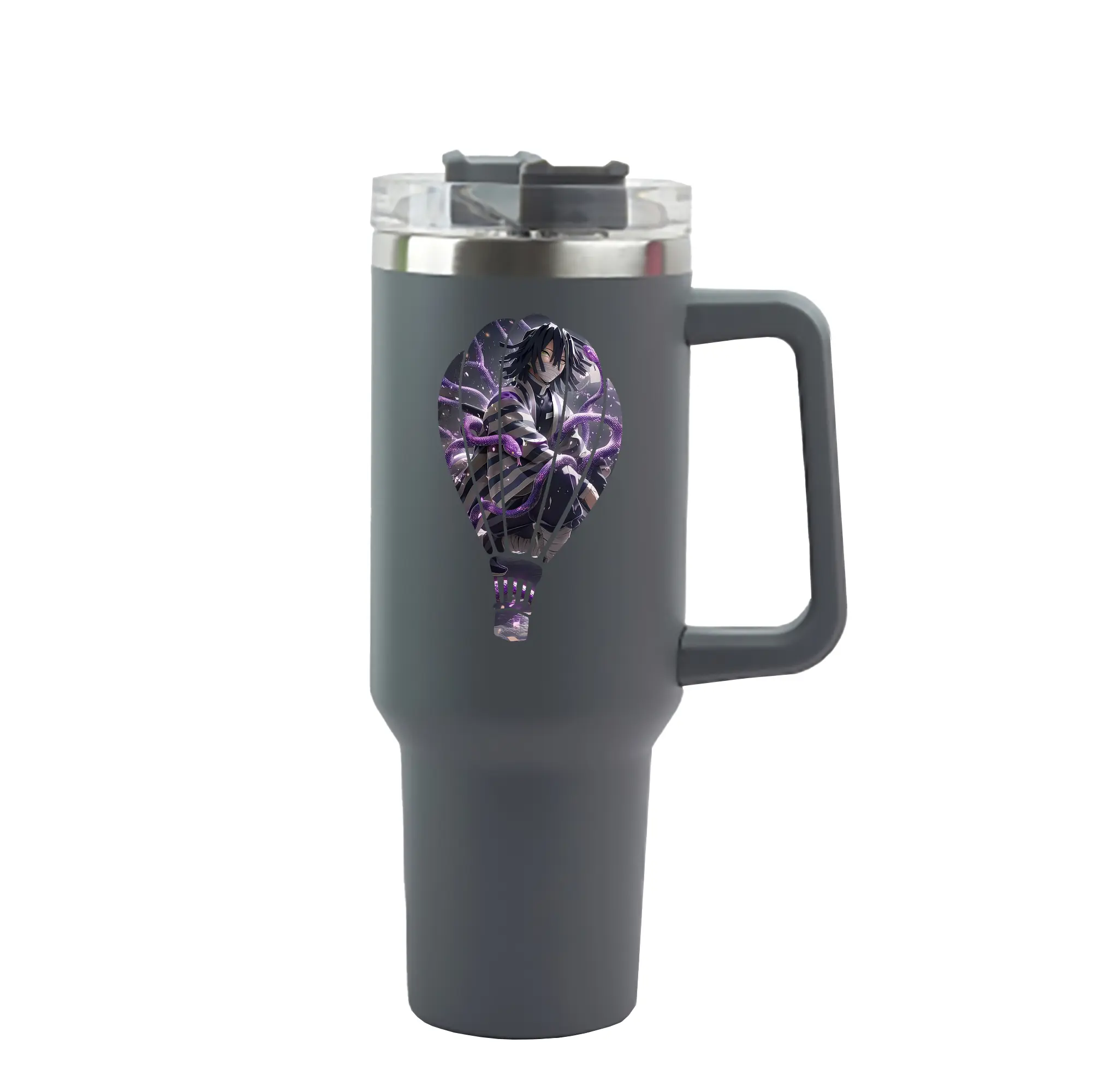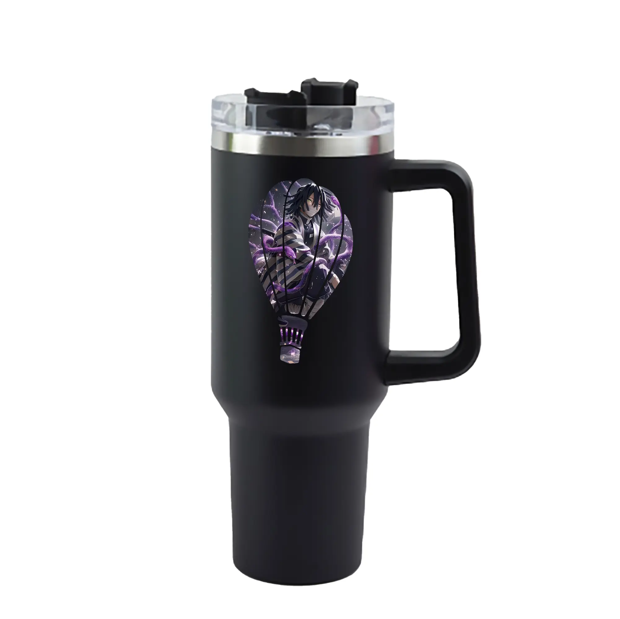 鬼滅の刃 グッズ,伊黒 小芭内 - 1200mL 車用タンブラー ・ クリスタルステッカー ・ 304ステンレス 内側 ・ 201ステンレス 外側 ・ 保温 保冷 ・ ハンドル&ストロー付き ・ 通勤 ドライブ アウトドア用