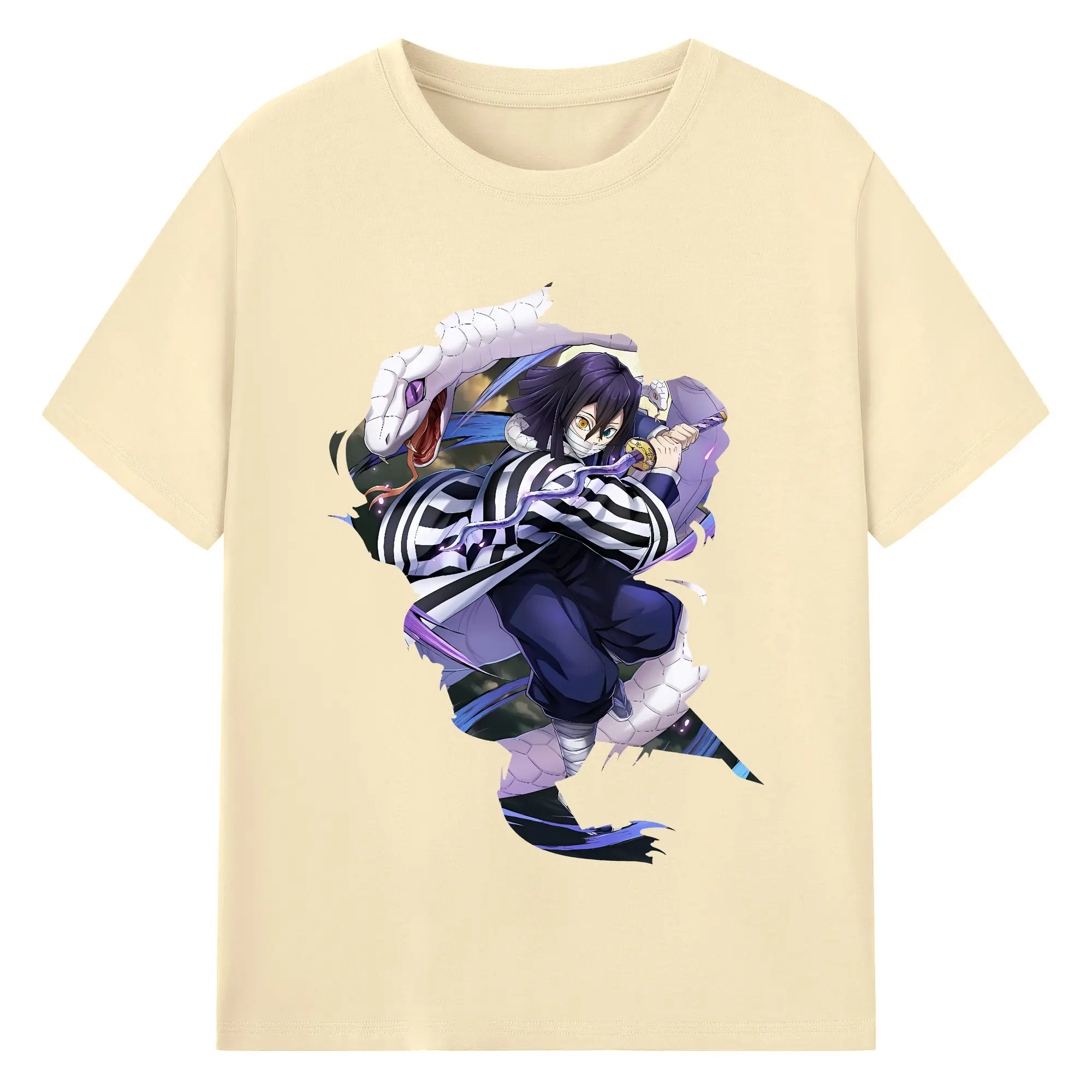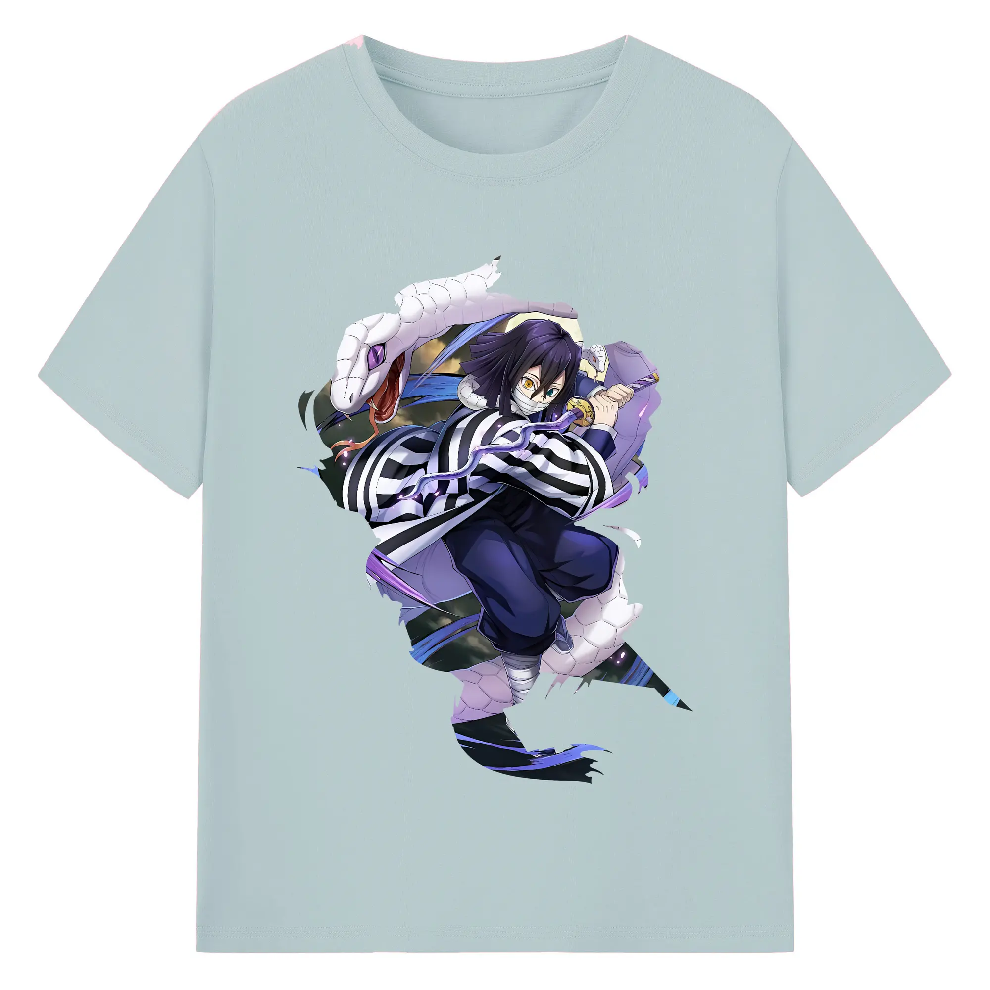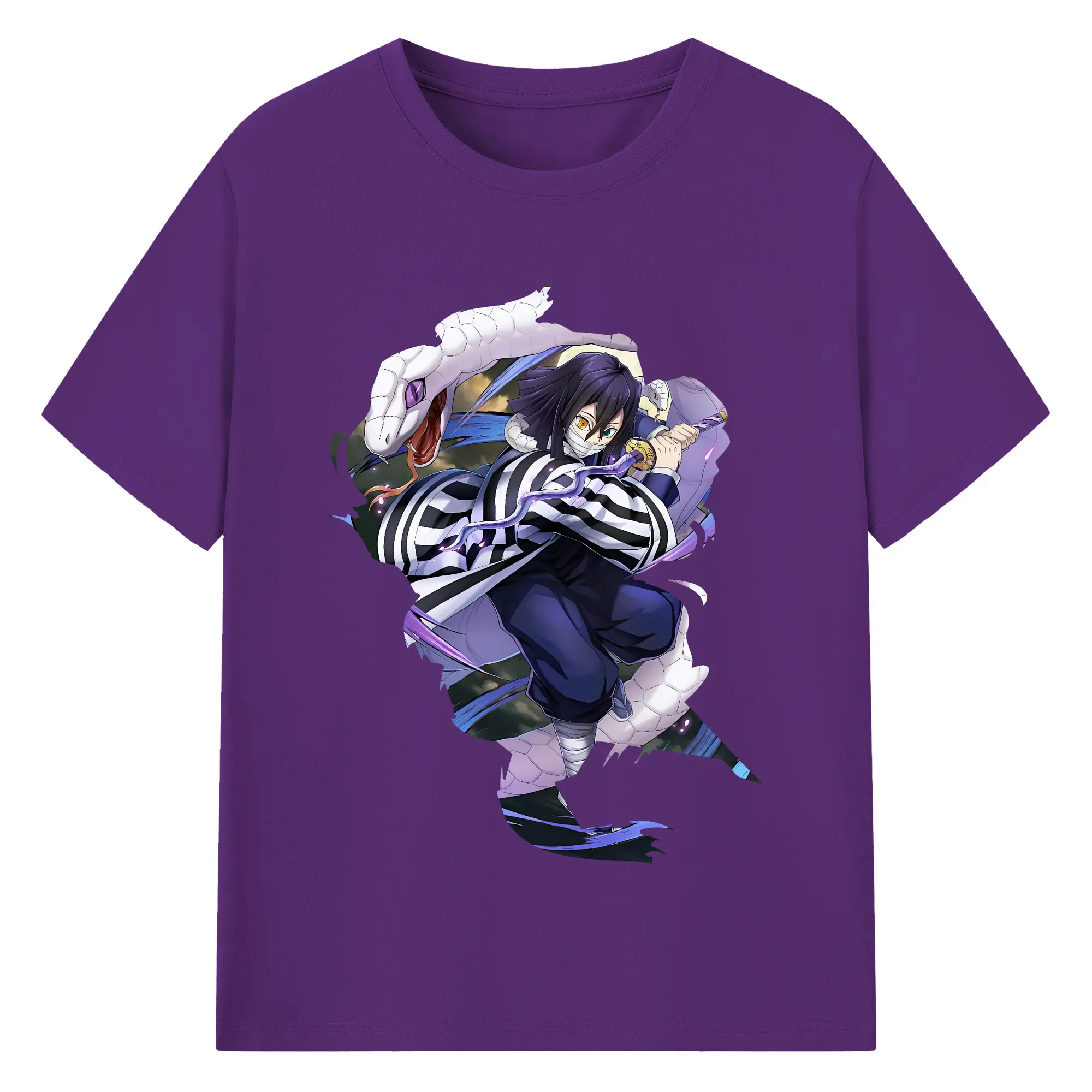鬼滅の刃 グッズ,伊黒 小芭内 - 綿100% 半袖Tシャツ ・ バックプリント ・ 快適 通気性 ・ 日常使い 散歩 スポーツ用