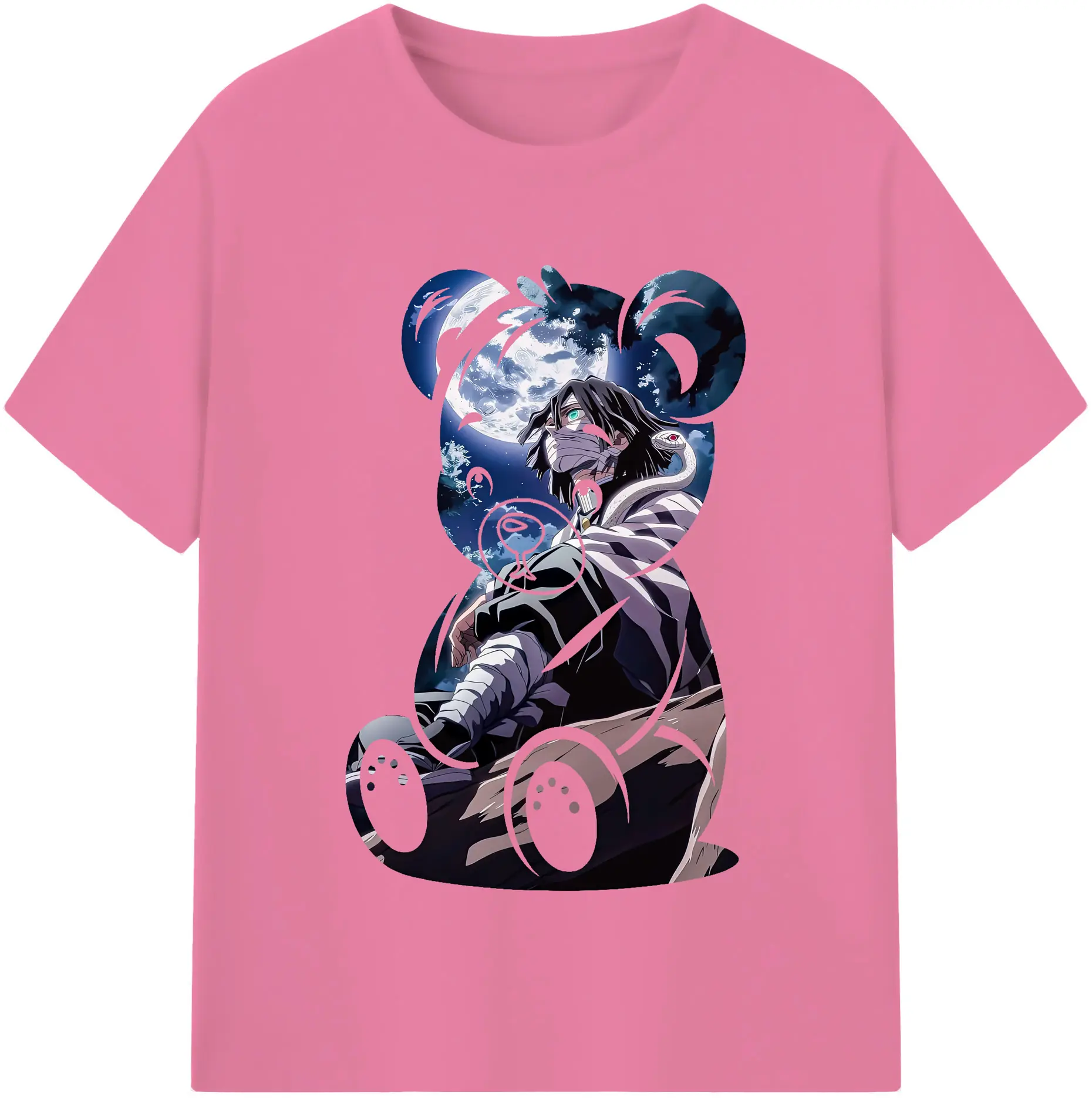 鬼滅の刃 グッズ,伊黒 小芭内 - 綿100% 半袖Tシャツ ・ バックプリント ・ 快適 通気性 ・ 日常使い 散歩 スポーツ用