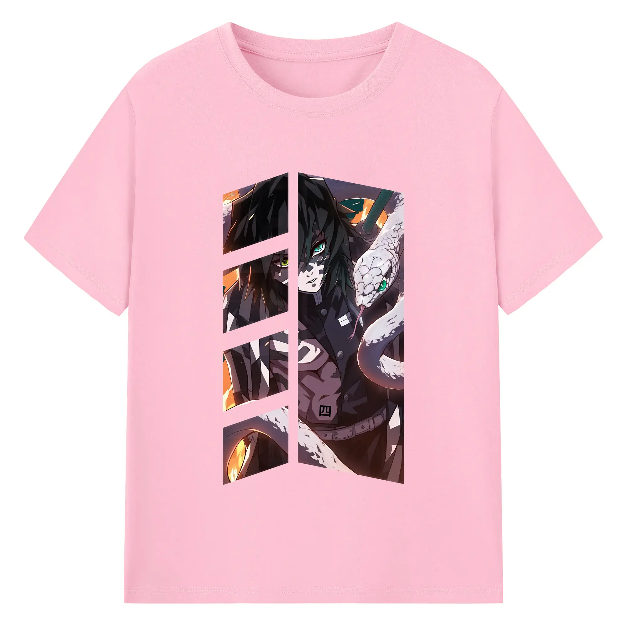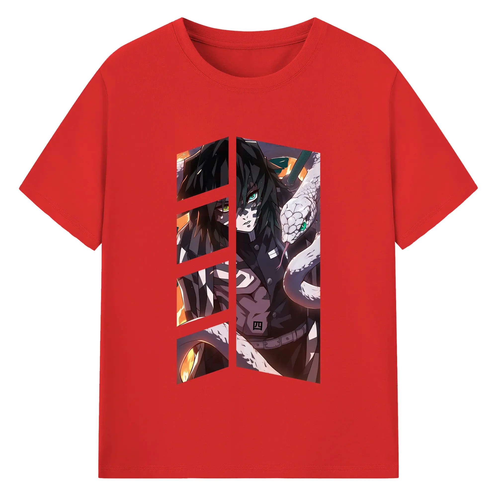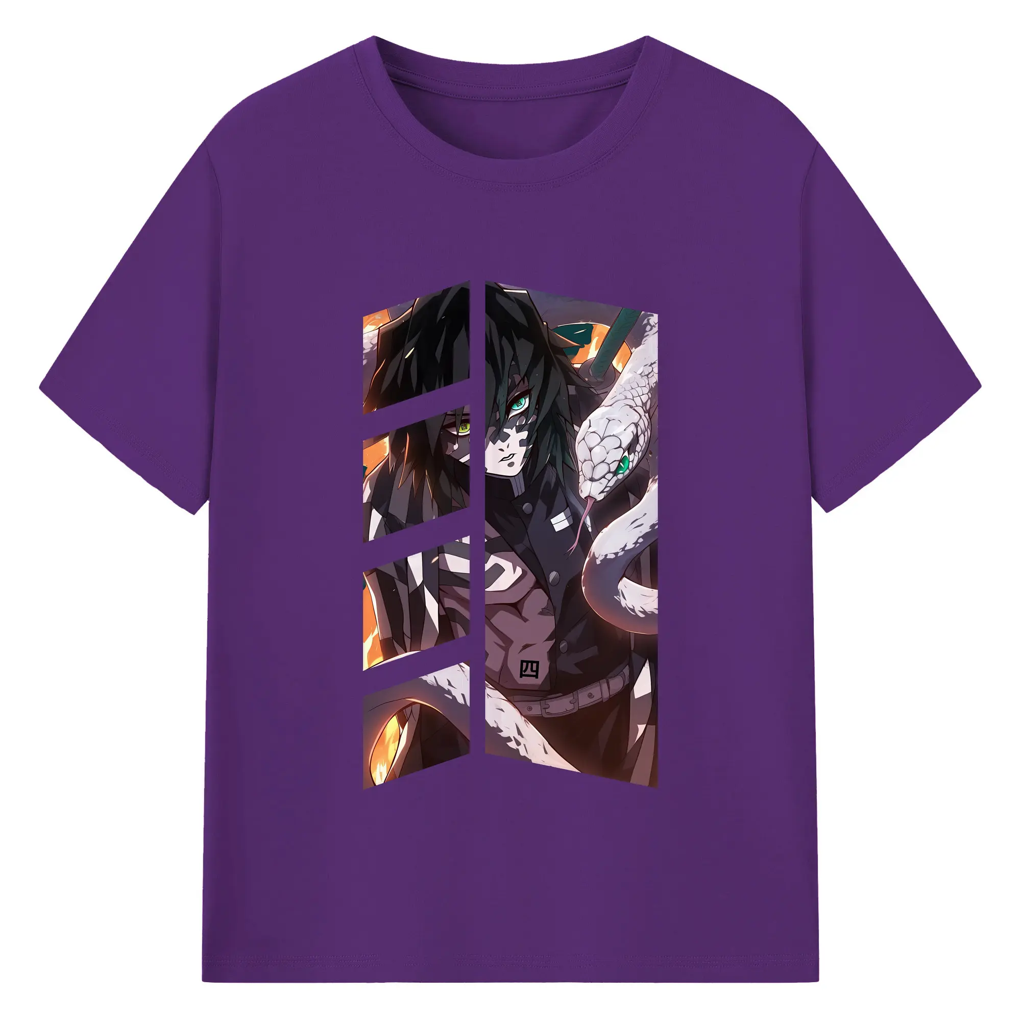 鬼滅の刃 グッズ,伊黒 小芭内 - 綿100% 半袖Tシャツ ・ バックプリント ・ 快適 通気性 ・ 日常使い 散歩 スポーツ用