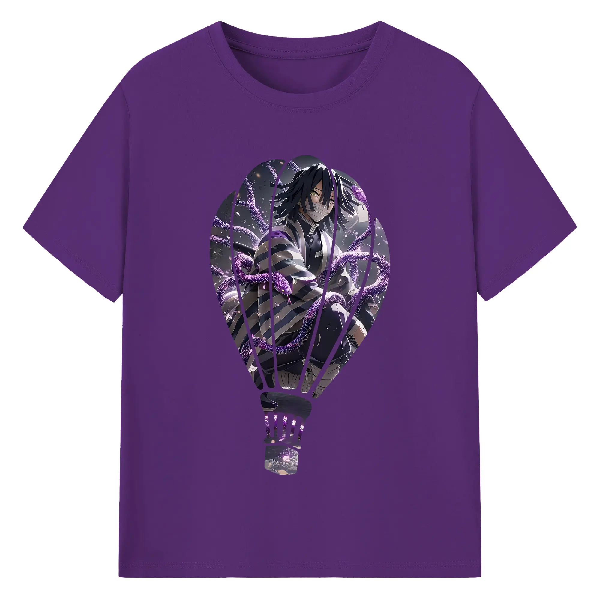 鬼滅の刃 グッズ,伊黒 小芭内 - 綿100% 半袖Tシャツ ・ バックプリント ・ 快適 通気性 ・ 日常使い 散歩 スポーツ用