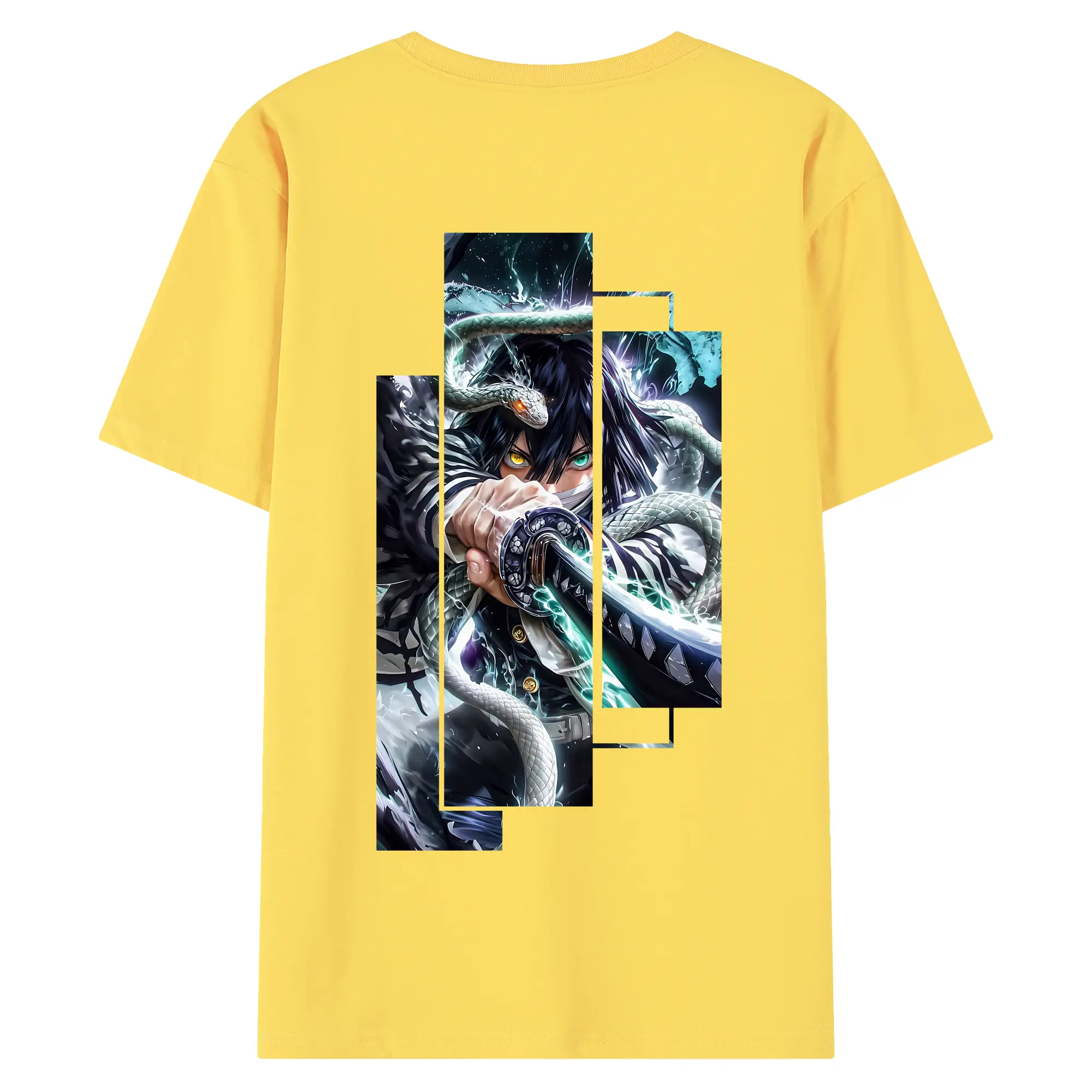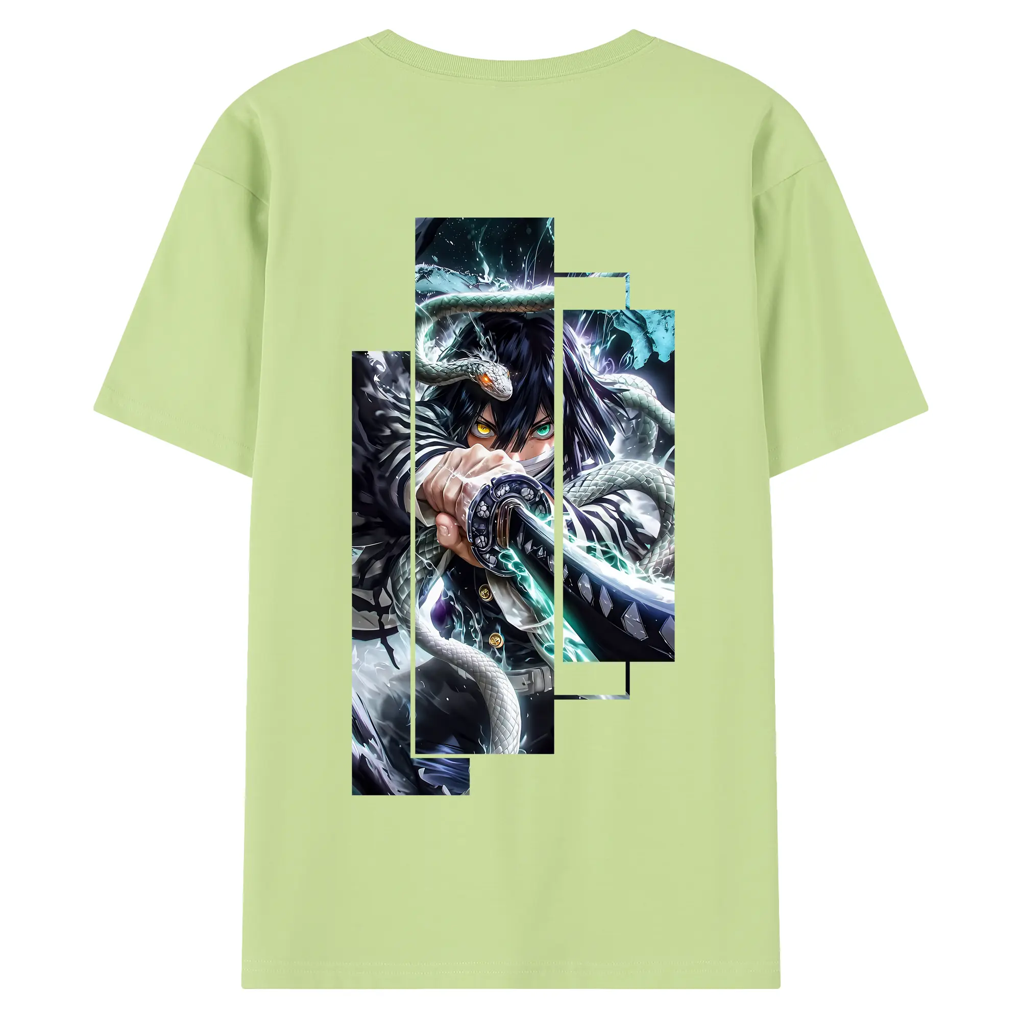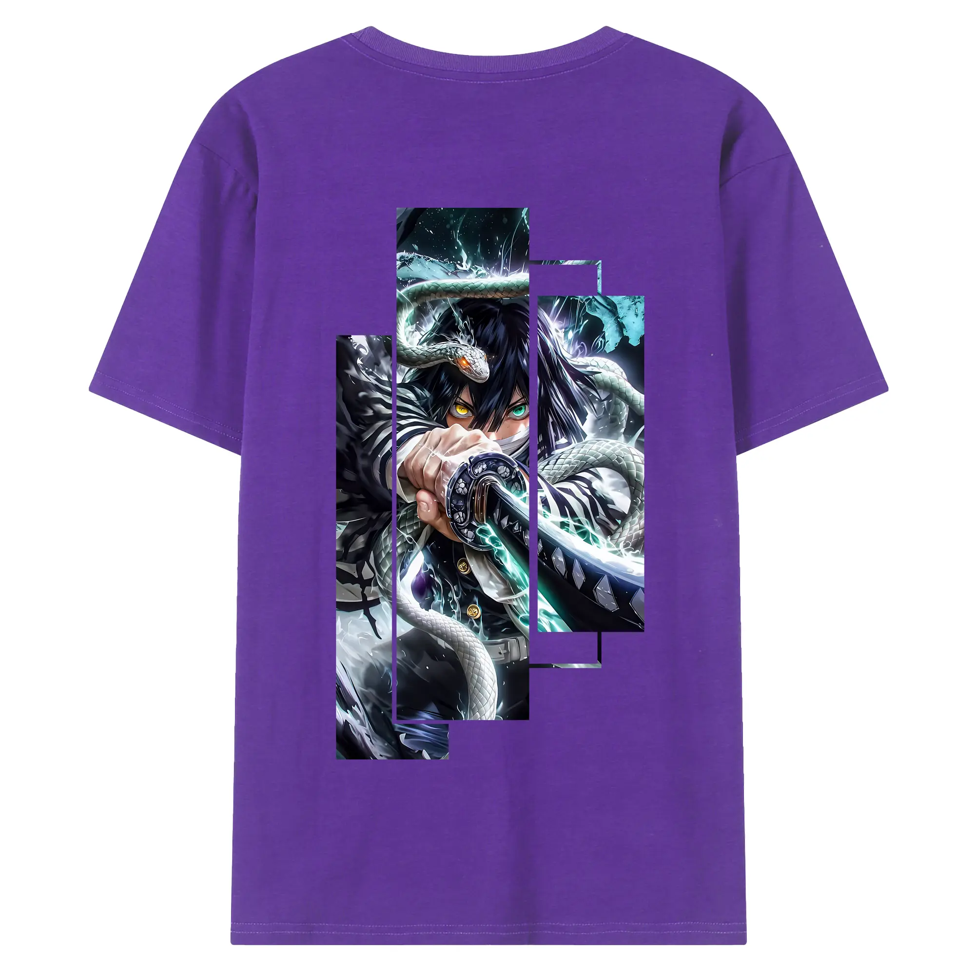 鬼滅の刃 グッズ,伊黒 小芭内 - 綿100% 半袖Tシャツ ・ フロントプリント ・ 快適 通気性 ・ 日常使い 散歩 スポーツ用