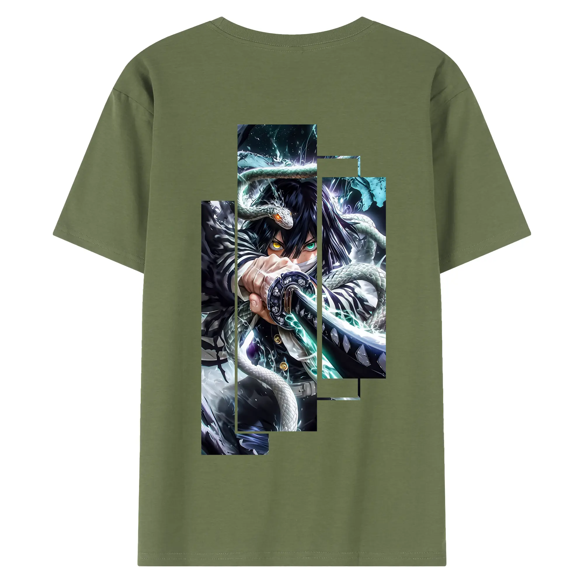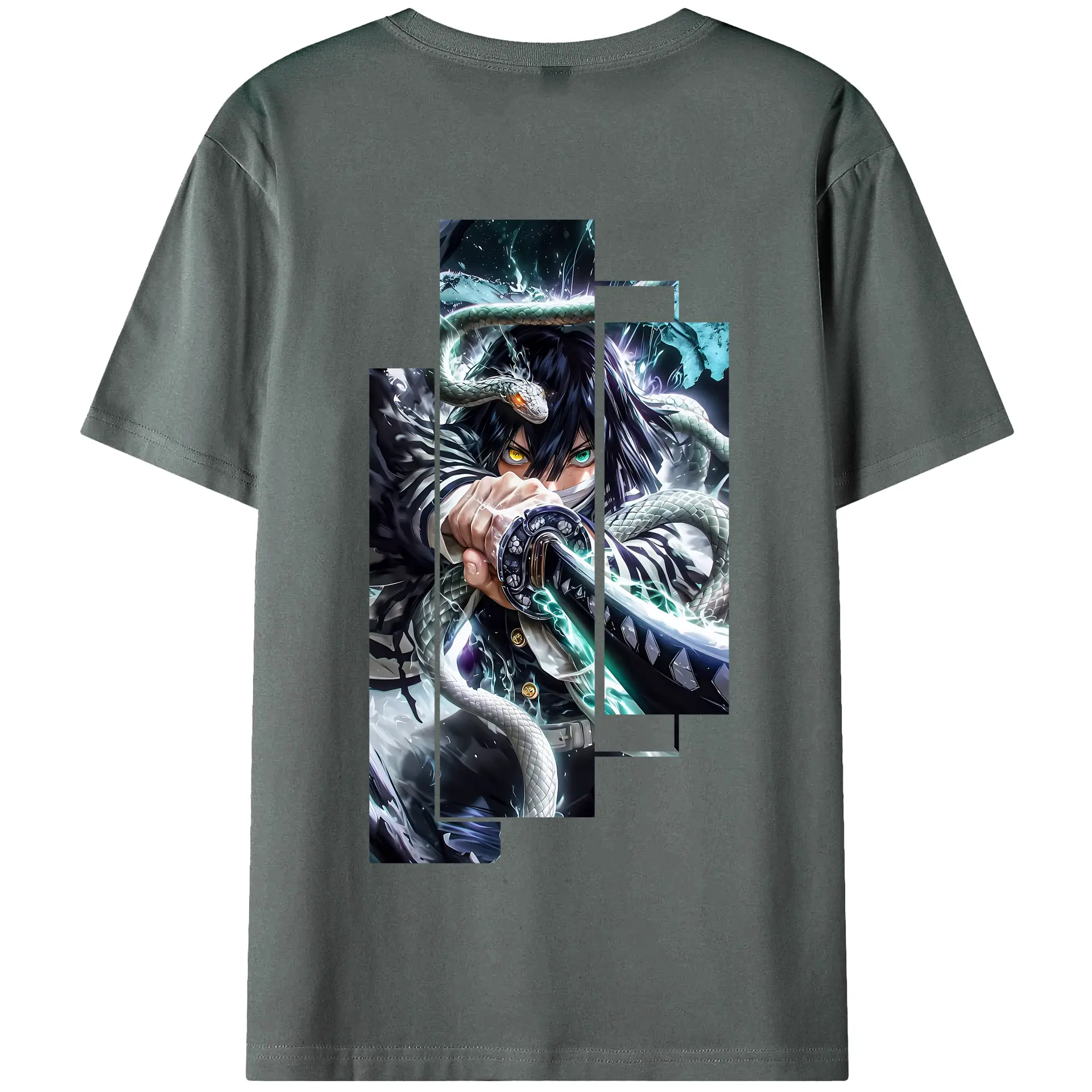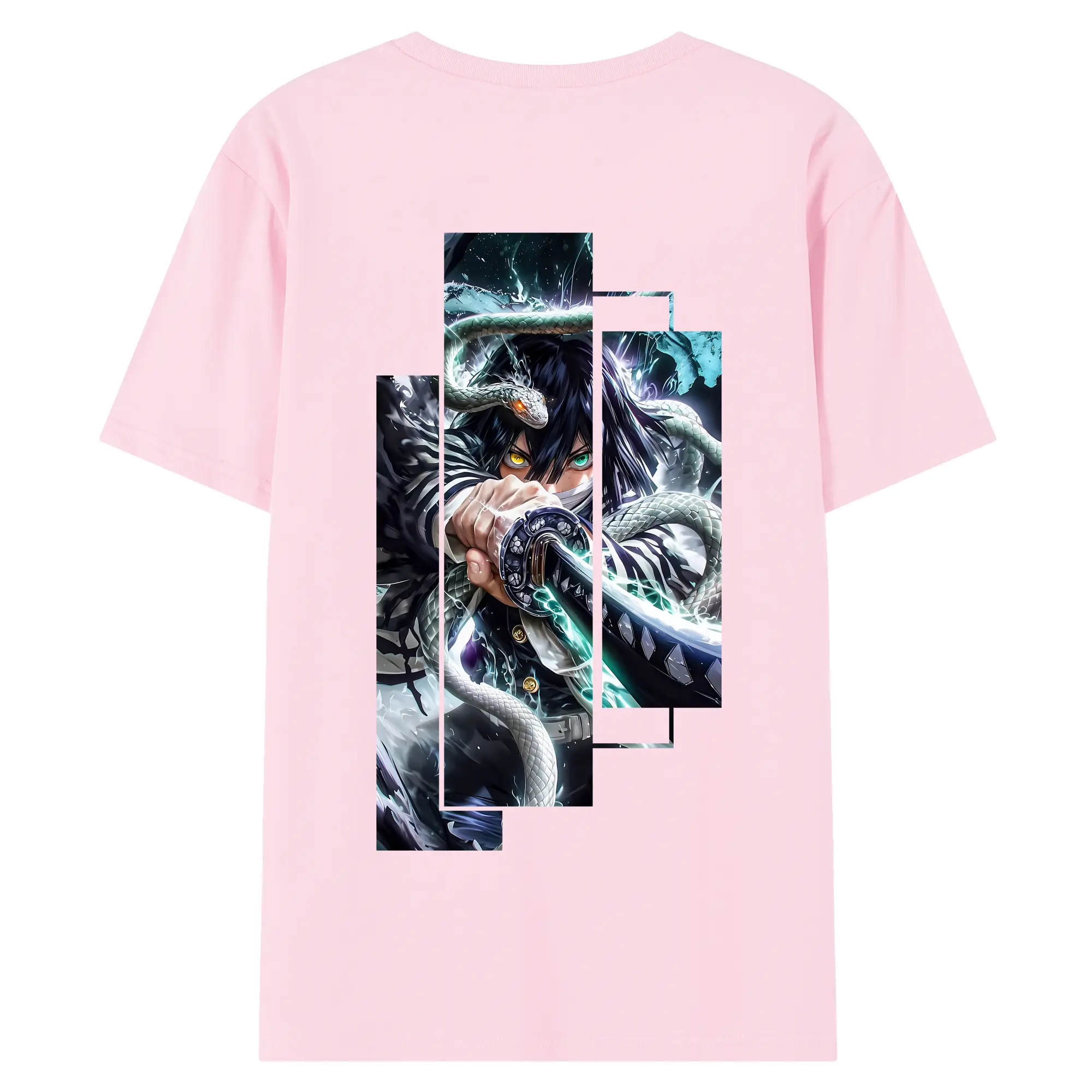 鬼滅の刃 グッズ,伊黒 小芭内 - 綿100% 半袖Tシャツ ・ フロントプリント ・ 快適 通気性 ・ 日常使い 散歩 スポーツ用