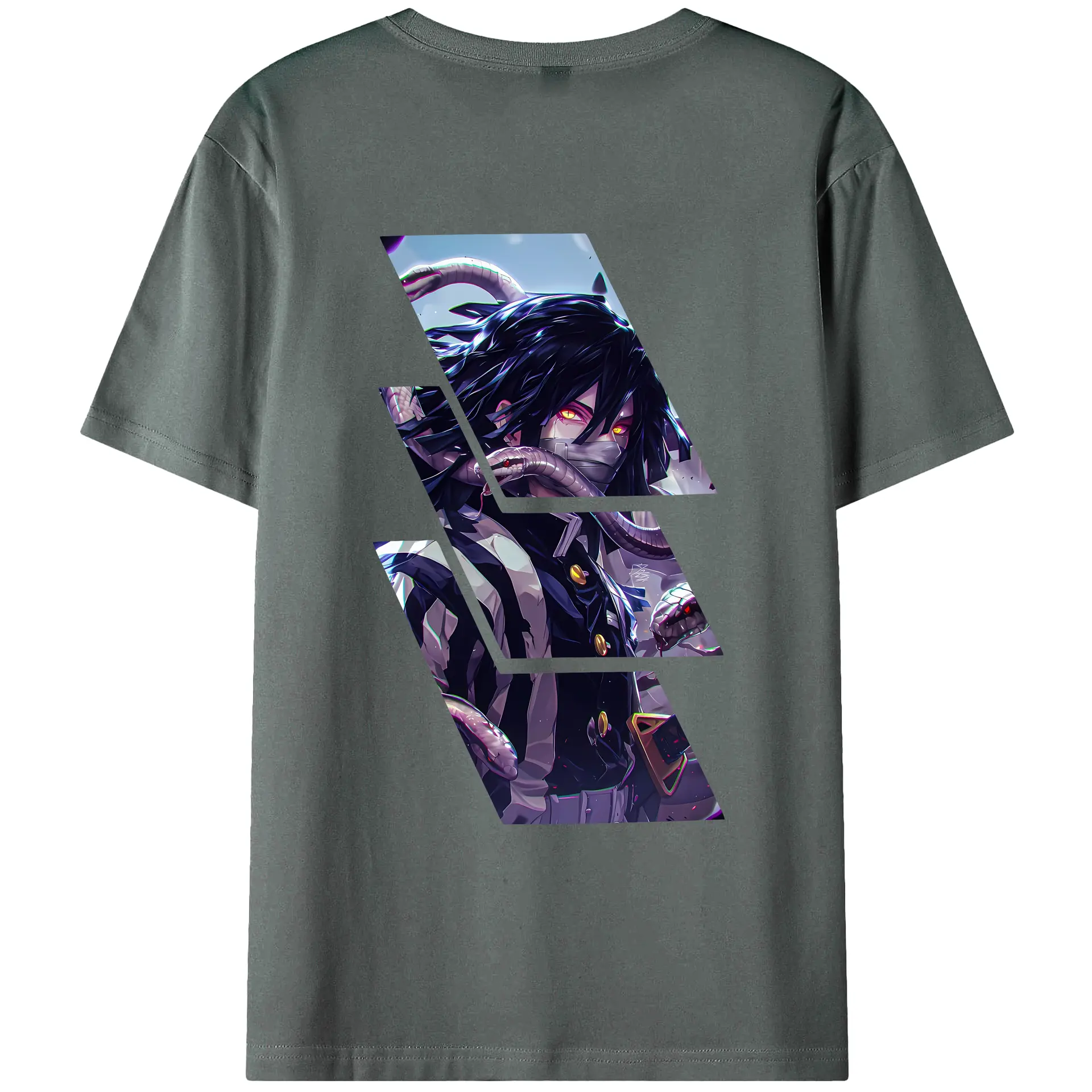 鬼滅の刃 グッズ,伊黒 小芭内 - 綿100% 半袖Tシャツ ・ フロントプリント ・ 快適 通気性 ・ 日常使い 散歩 スポーツ用