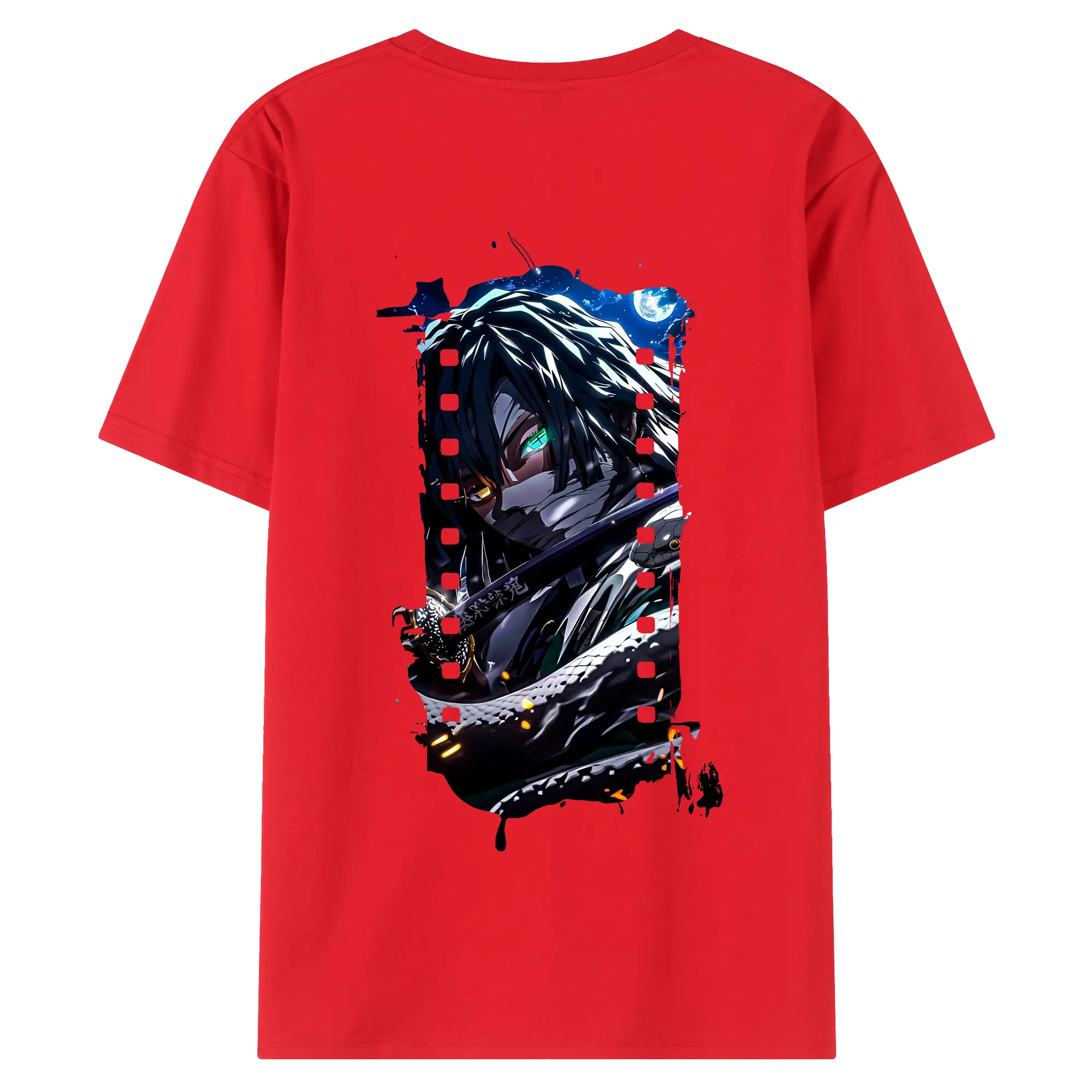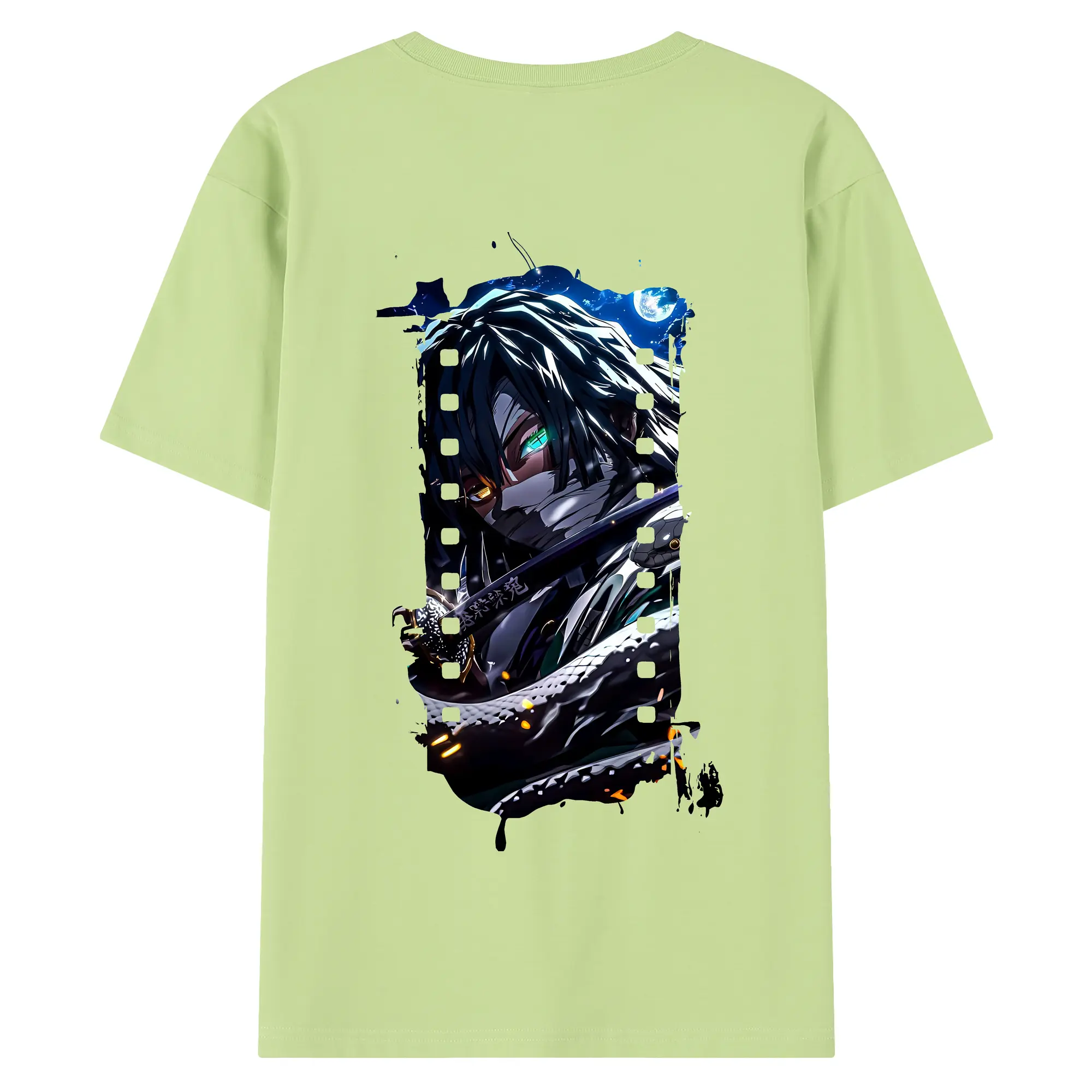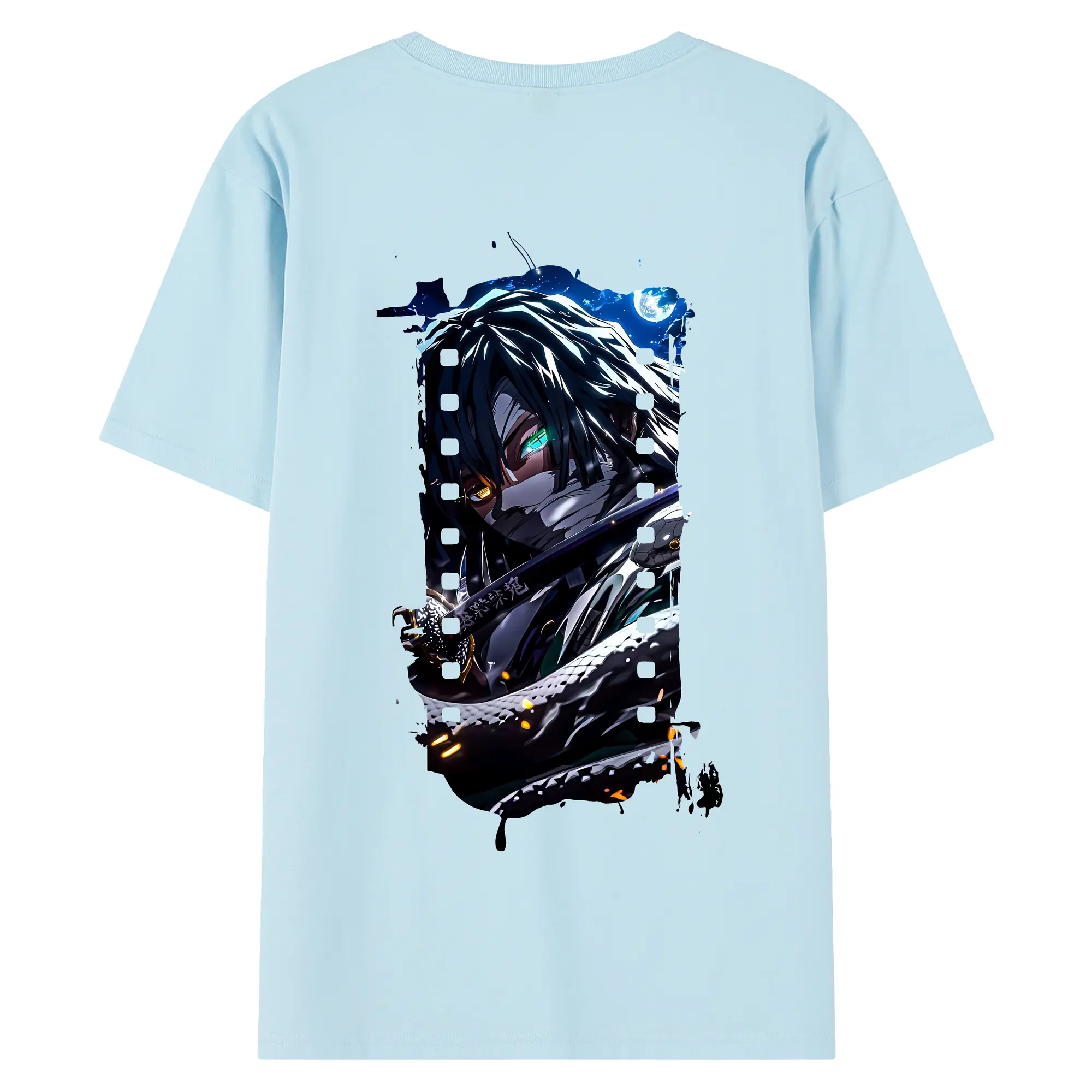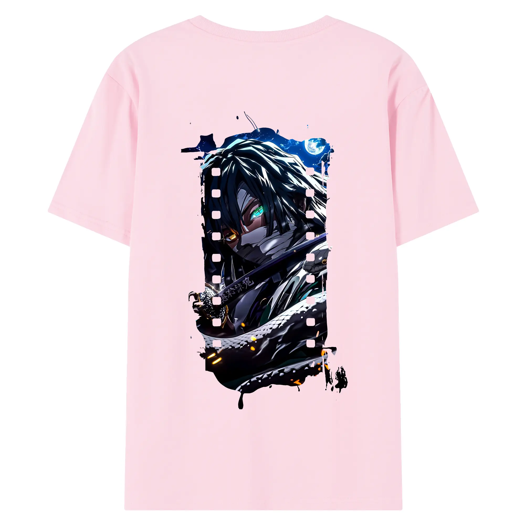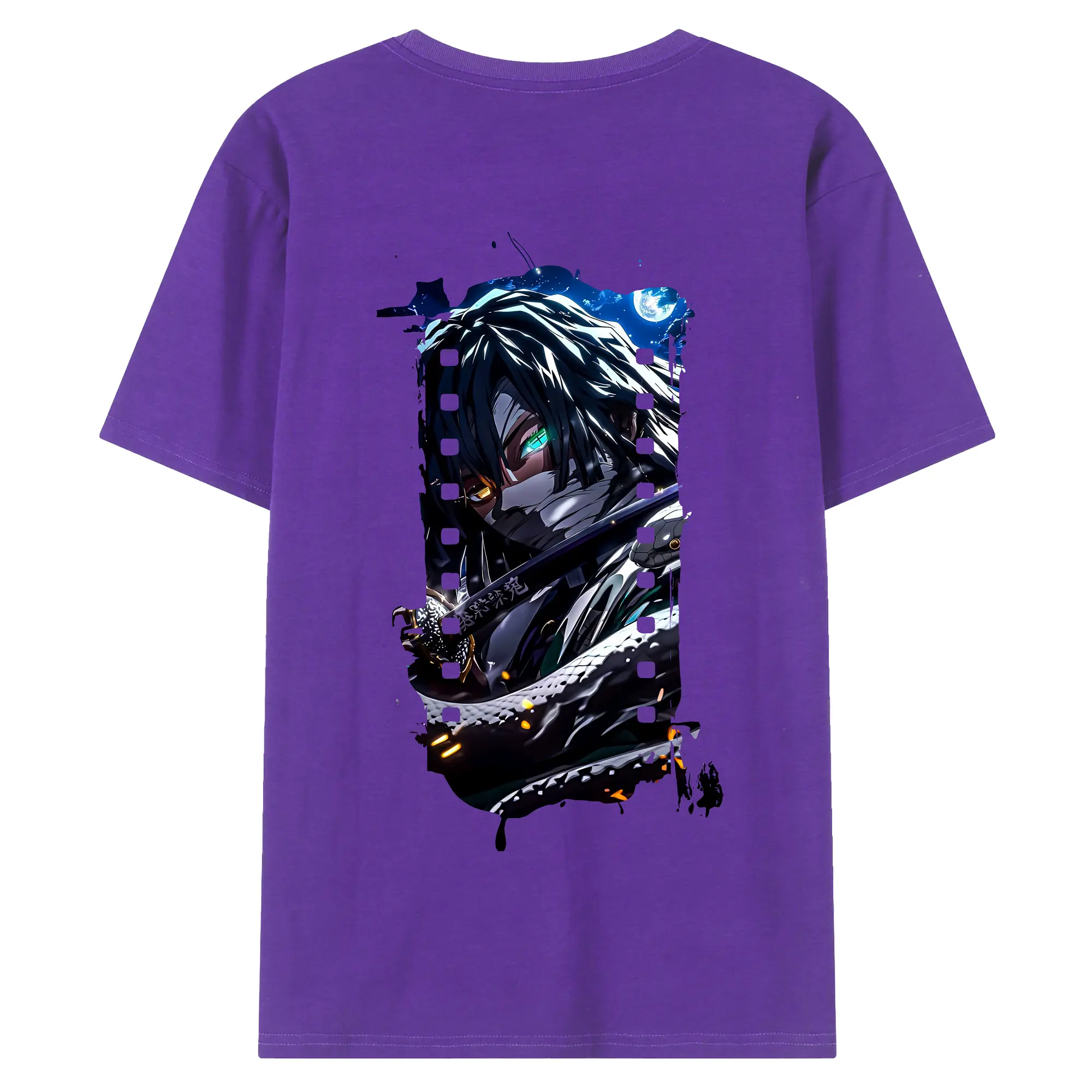 鬼滅の刃 グッズ,伊黒 小芭内 - 綿100% 半袖Tシャツ ・ フロントプリント ・ 快適 通気性 ・ 日常使い 散歩 スポーツ用