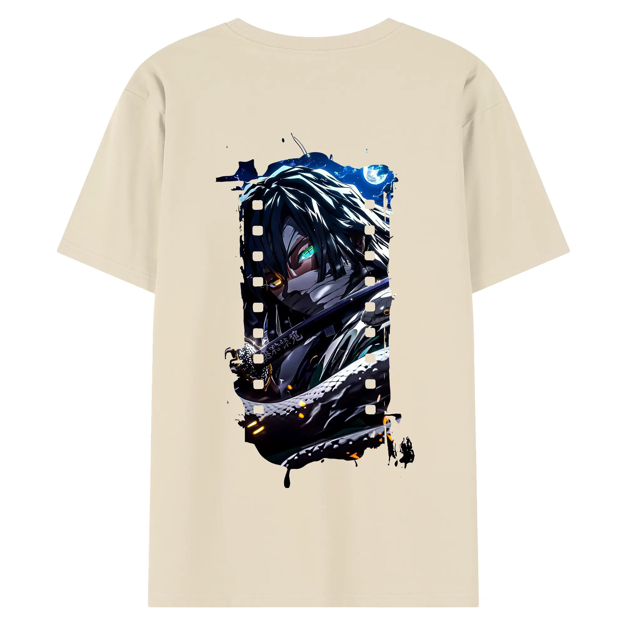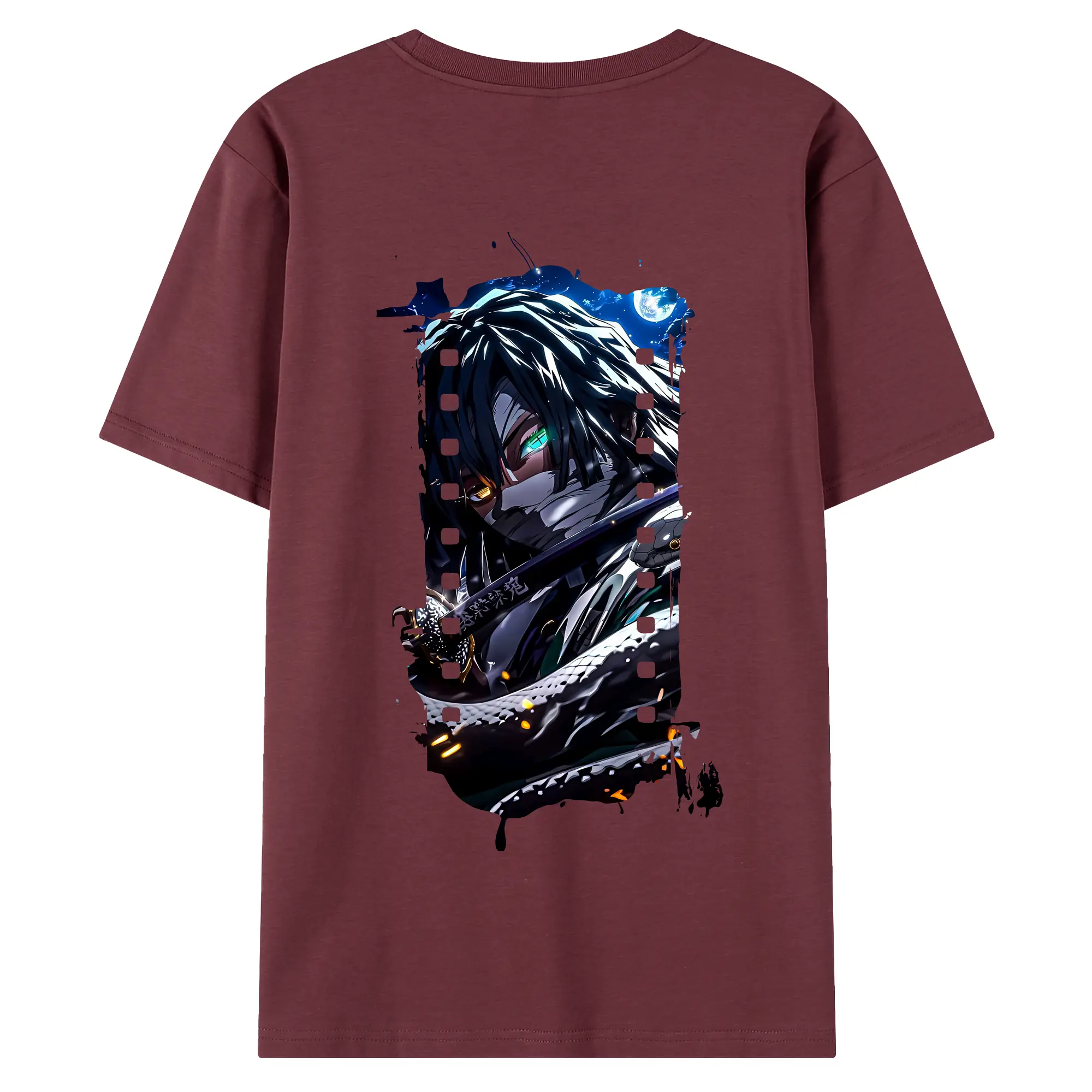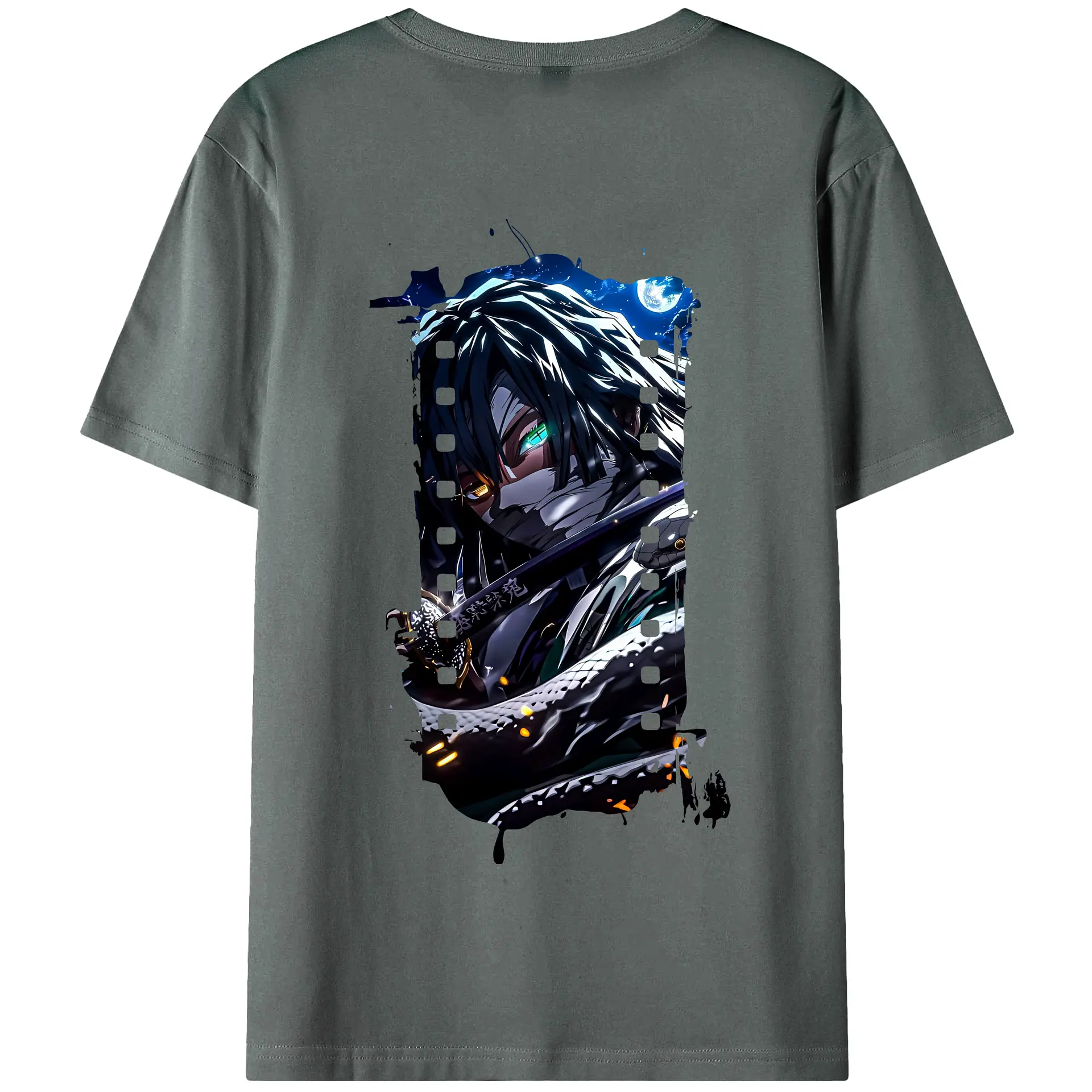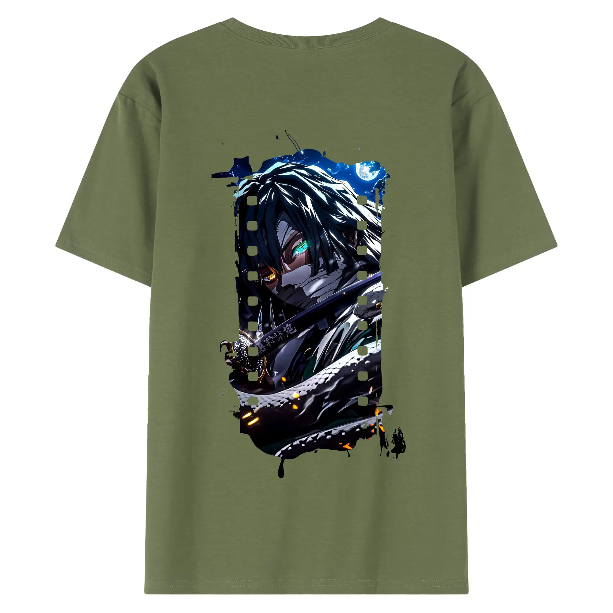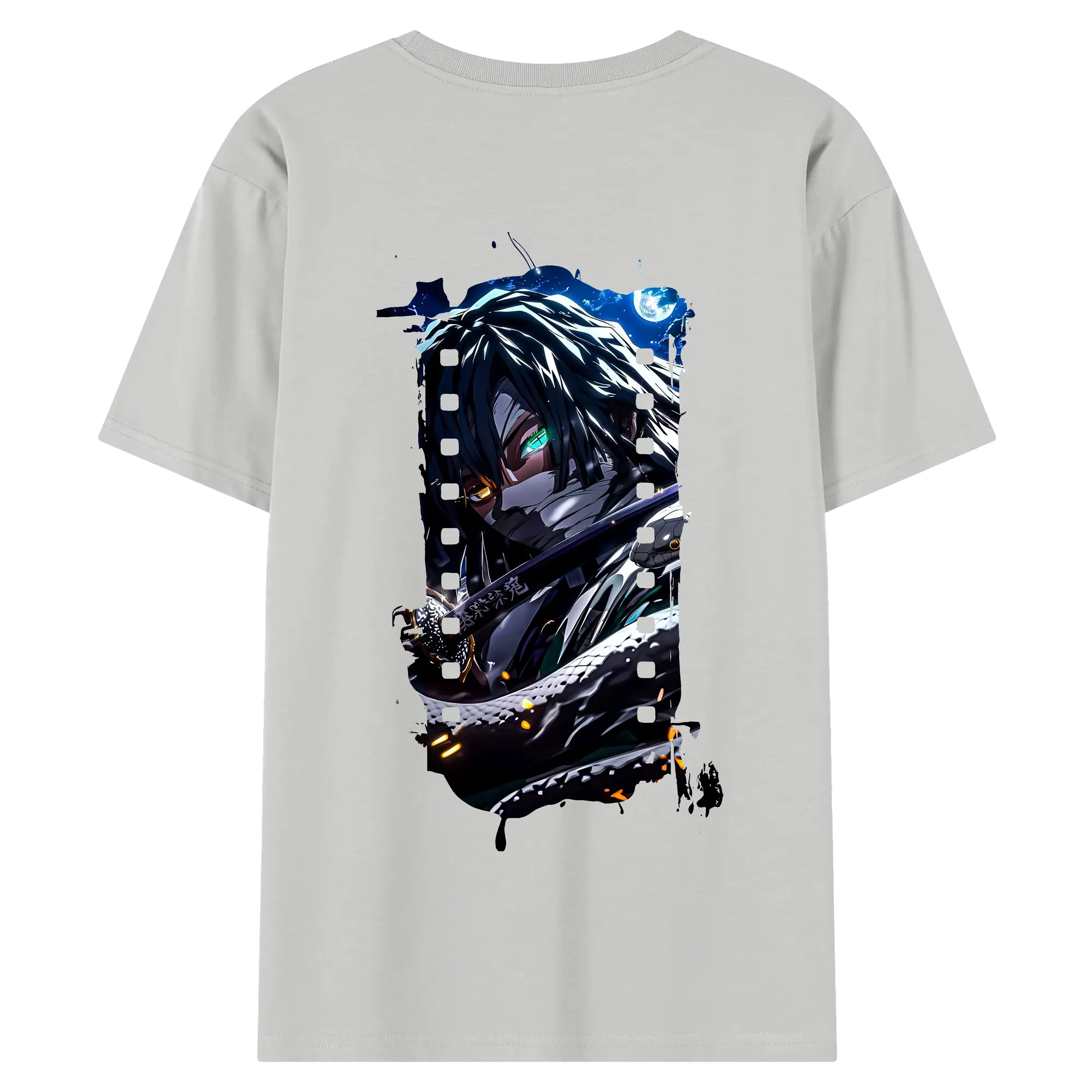 鬼滅の刃 グッズ,伊黒 小芭内 - 綿100% 半袖Tシャツ ・ フロントプリント ・ 快適 通気性 ・ 日常使い 散歩 スポーツ用