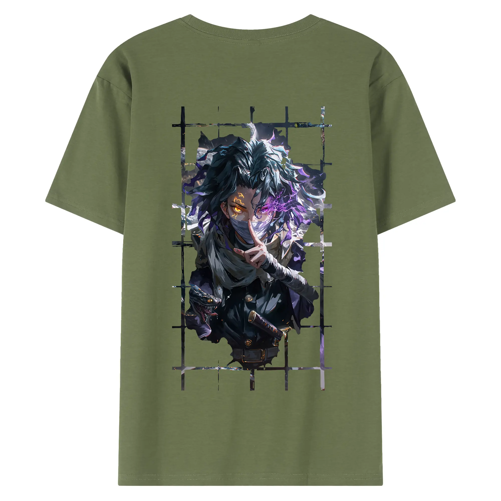 鬼滅の刃 グッズ,伊黒 小芭内 - 綿100% 半袖Tシャツ ・ フロントプリント ・ 快適 通気性 ・ 日常使い 散歩 スポーツ用