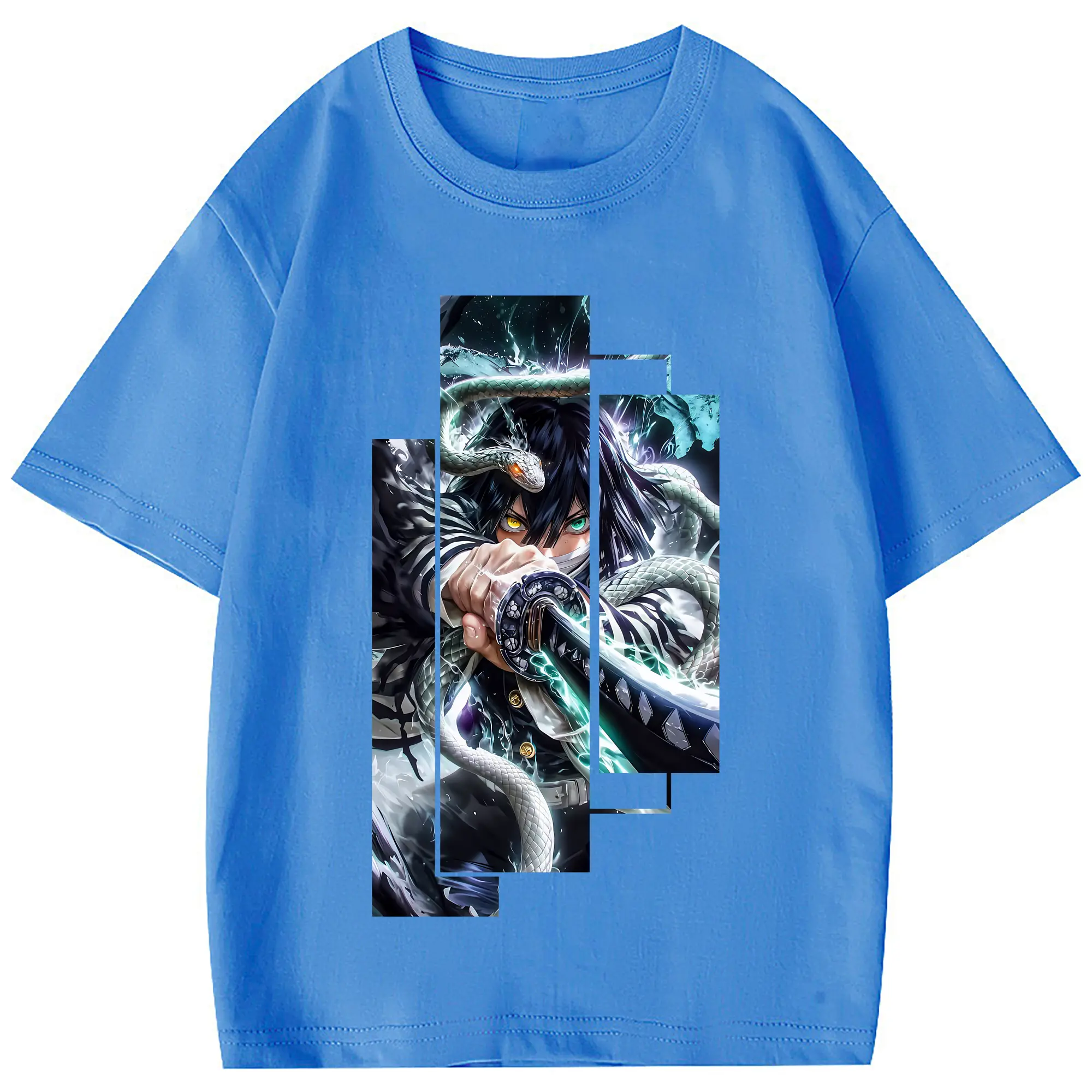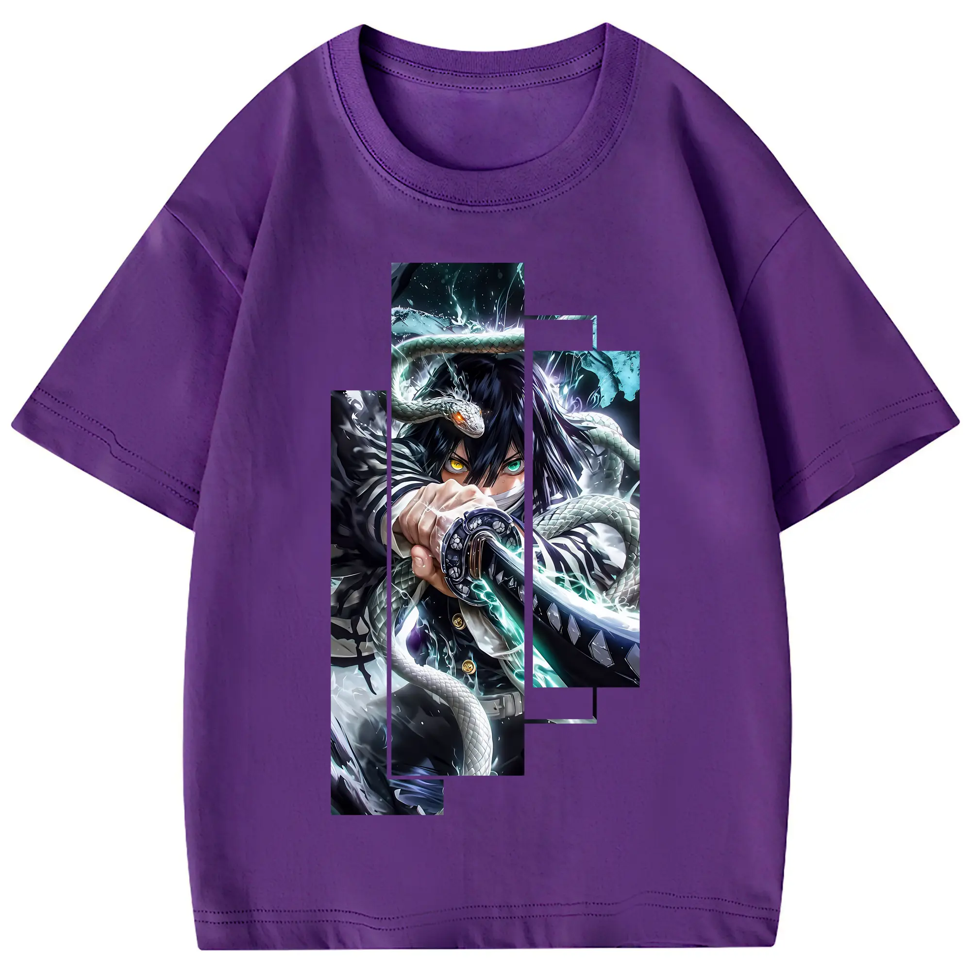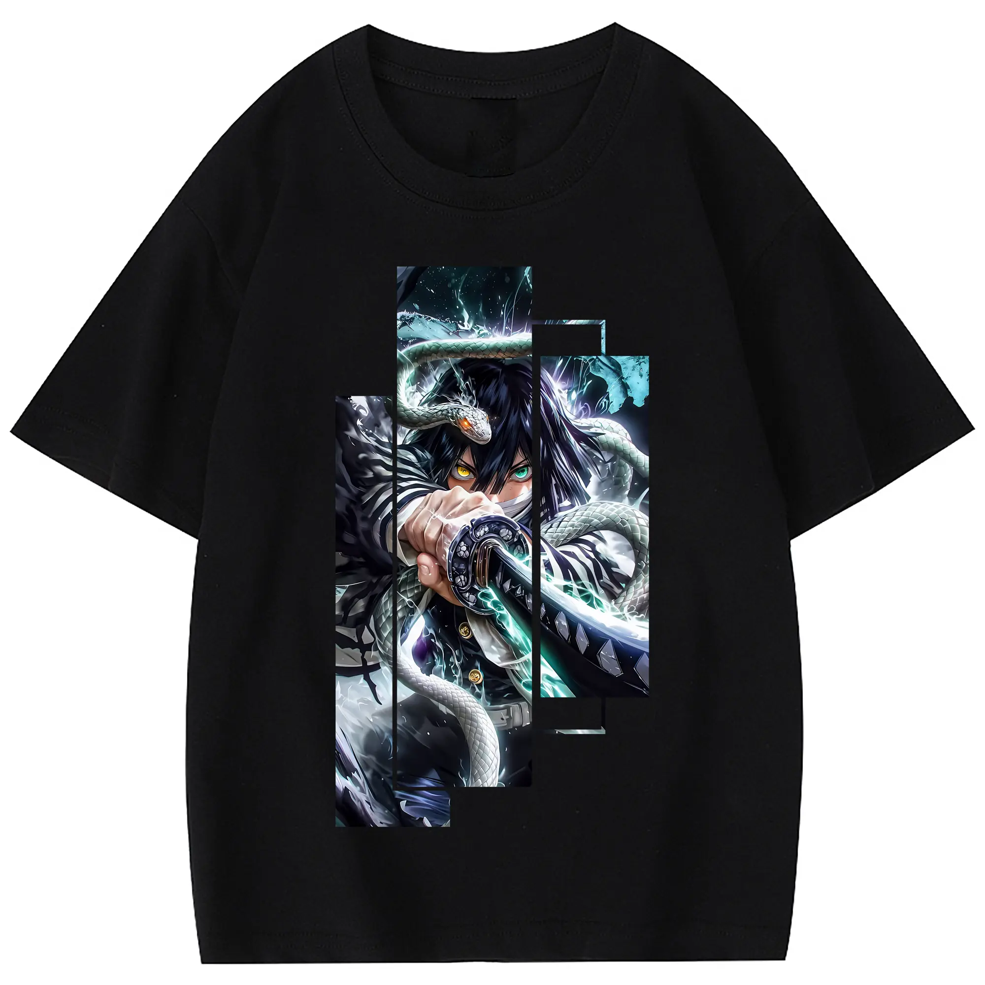 鬼滅の刃 グッズ,伊黒 小芭内 - 綿100% 半袖Tシャツ ・ フロントプリント ・ 快適 通気性 ・ 日常使い 散歩 スポーツ用