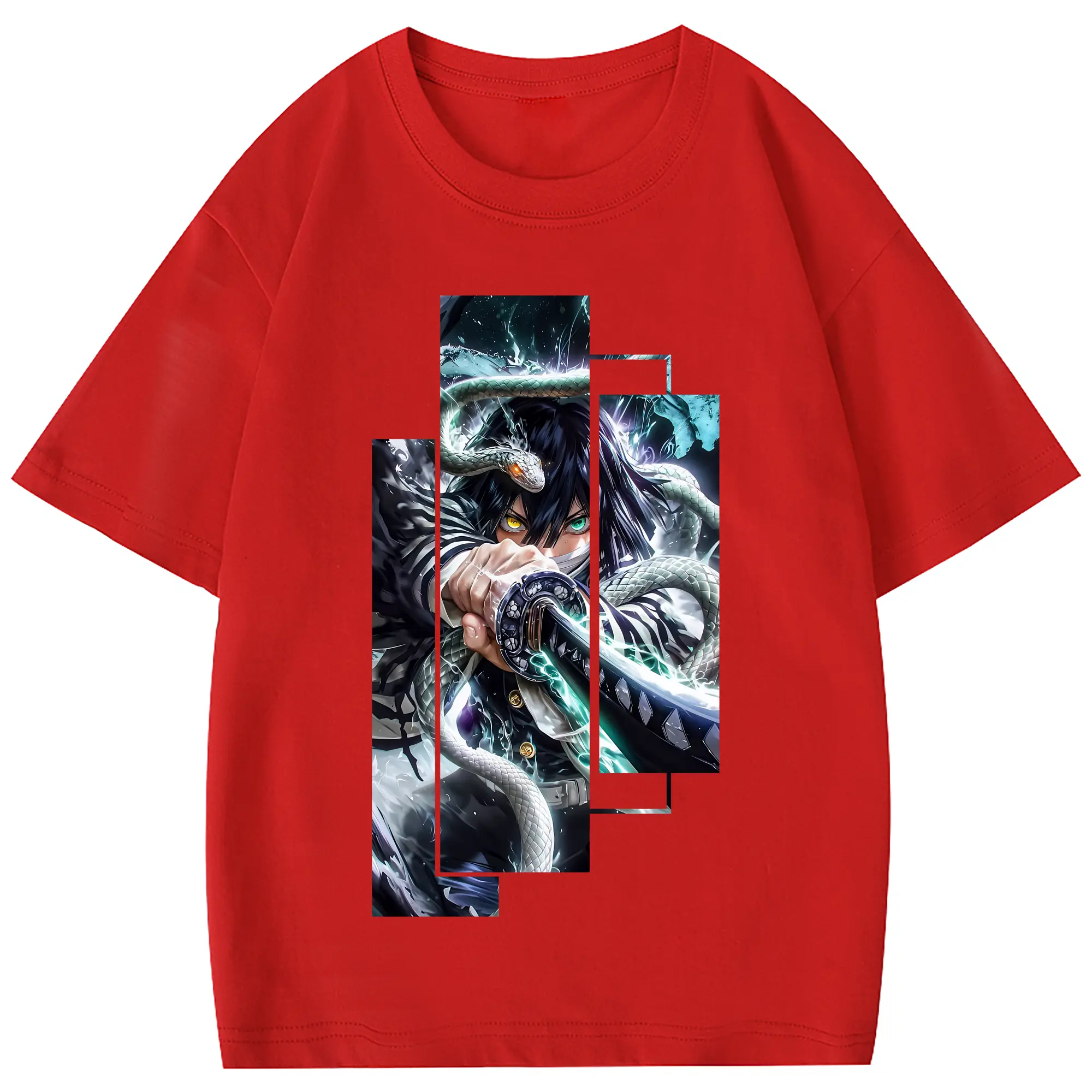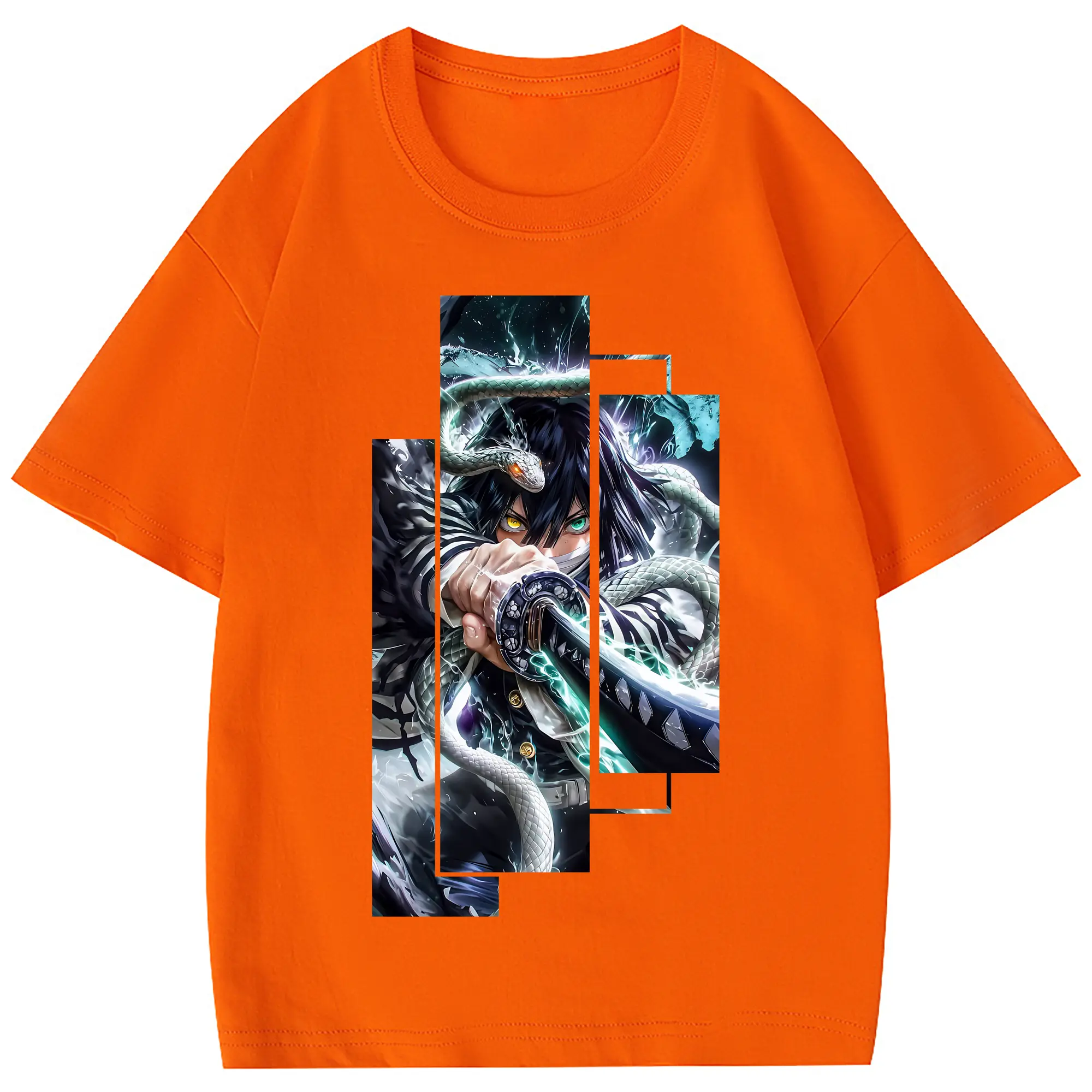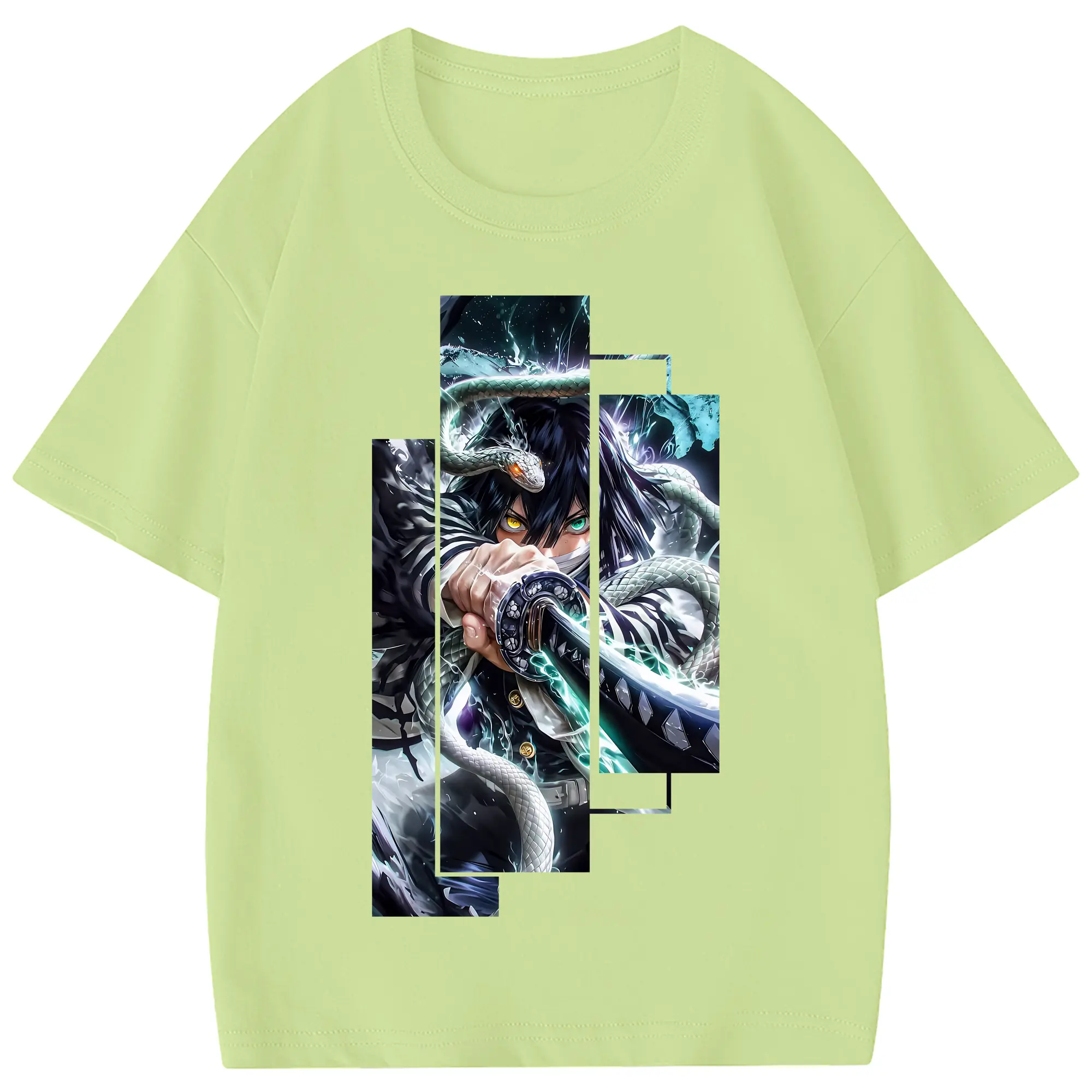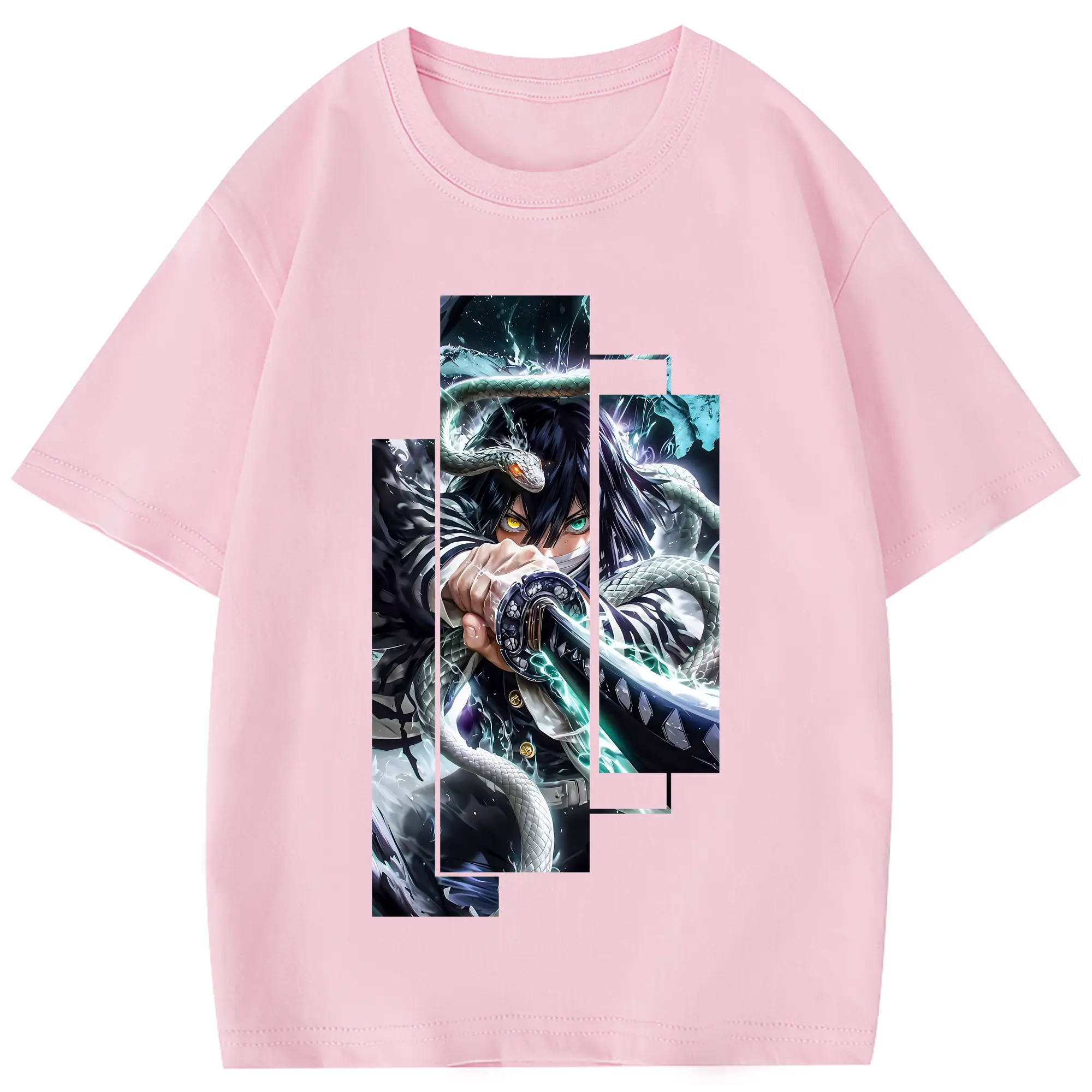 鬼滅の刃 グッズ,伊黒 小芭内 - 綿100% 半袖Tシャツ ・ フロントプリント ・ 快適 通気性 ・ 日常使い 散歩 スポーツ用