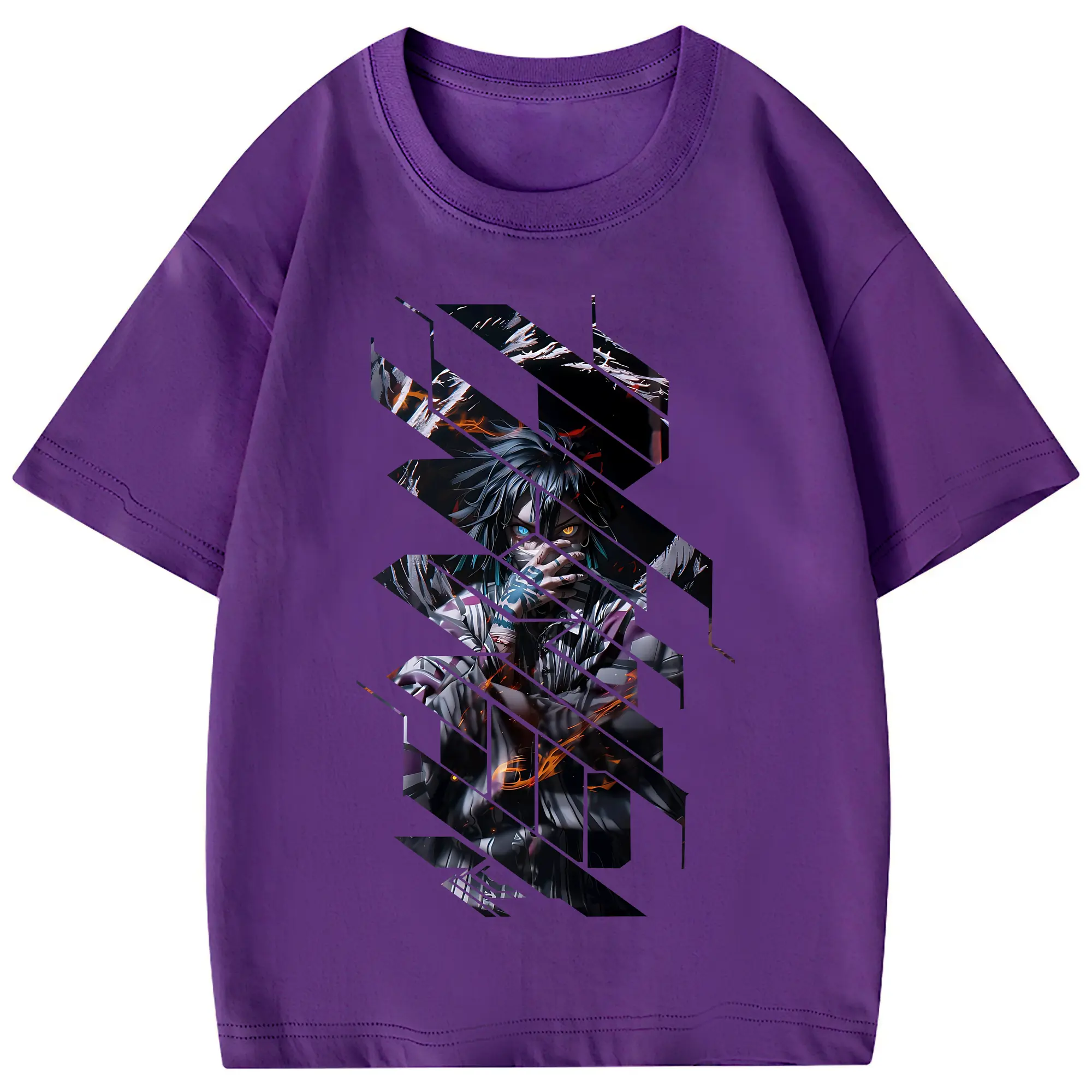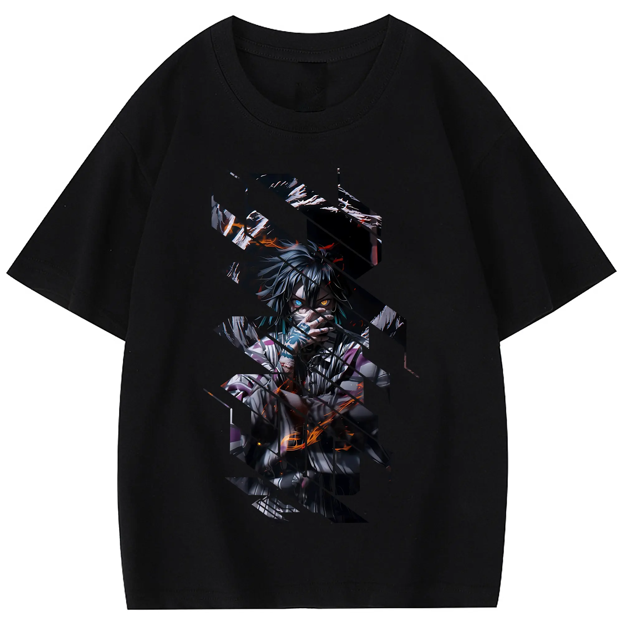 鬼滅の刃 グッズ,伊黒 小芭内 - 綿100% 半袖Tシャツ ・ フロントプリント ・ 快適 通気性 ・ 日常使い 散歩 スポーツ用