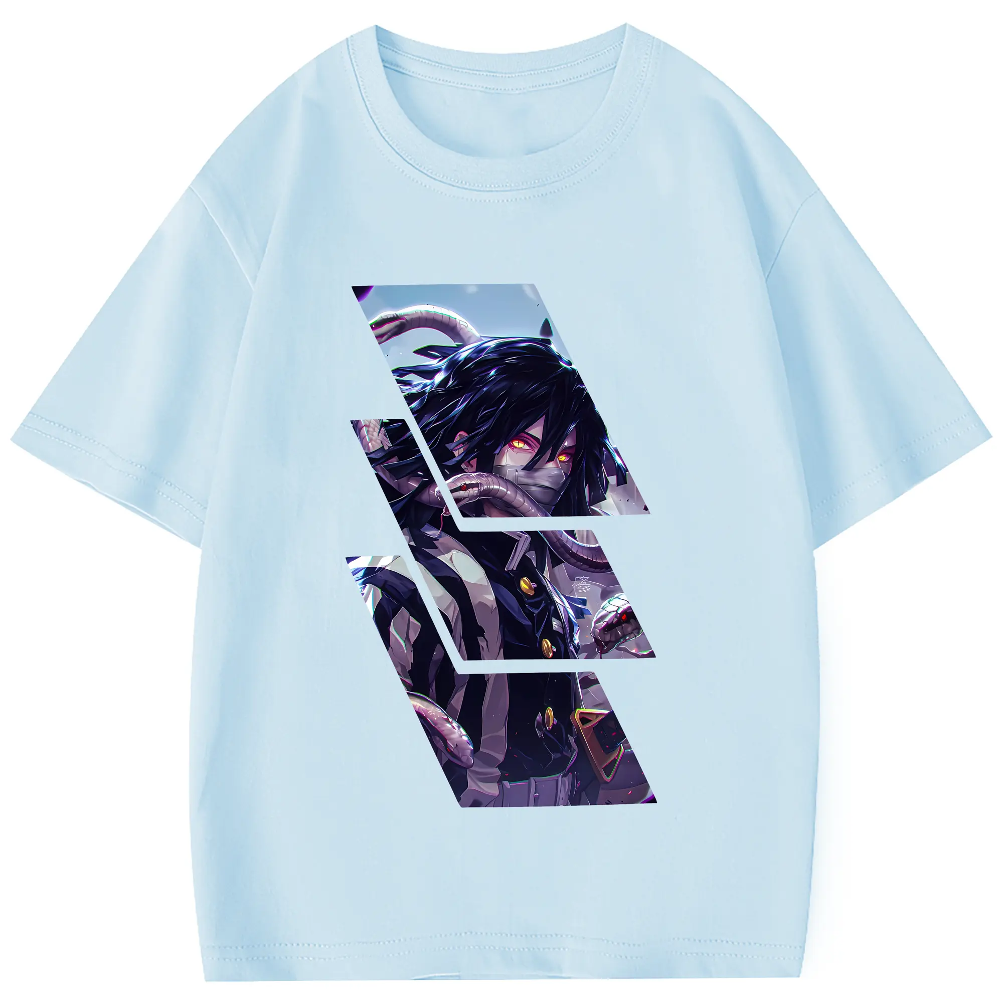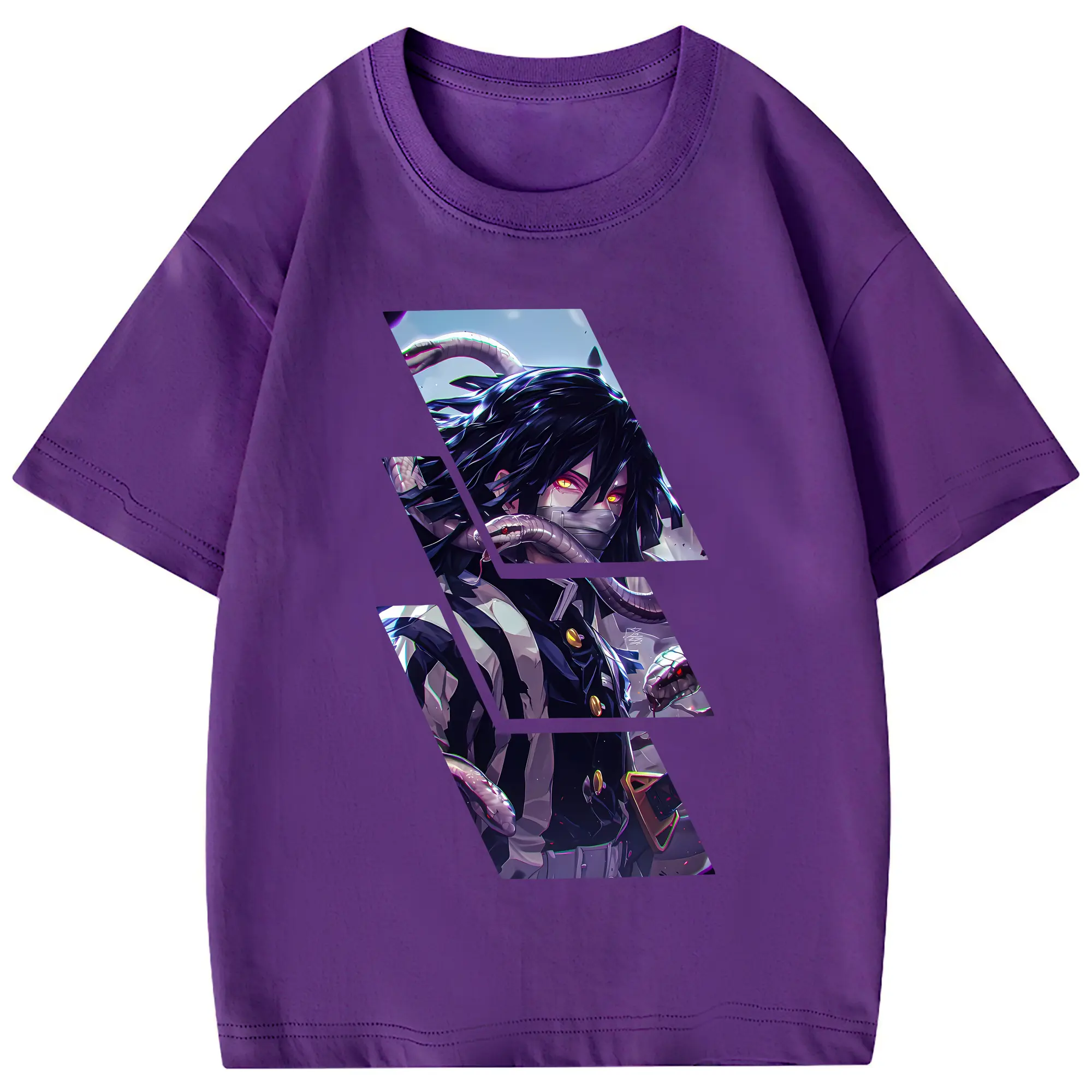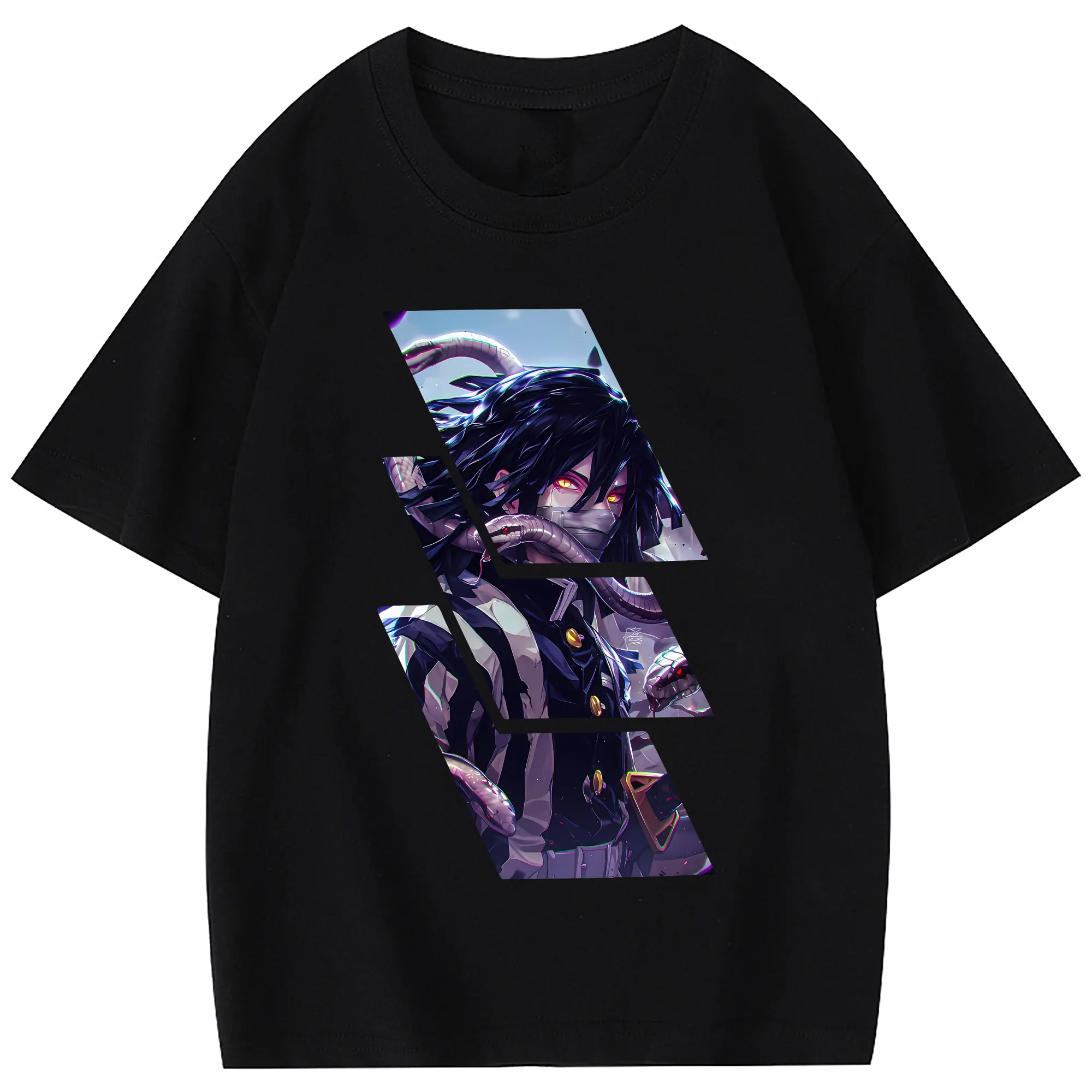 鬼滅の刃 グッズ,伊黒 小芭内 - 綿100% 半袖Tシャツ ・ フロントプリント ・ 快適 通気性 ・ 日常使い 散歩 スポーツ用