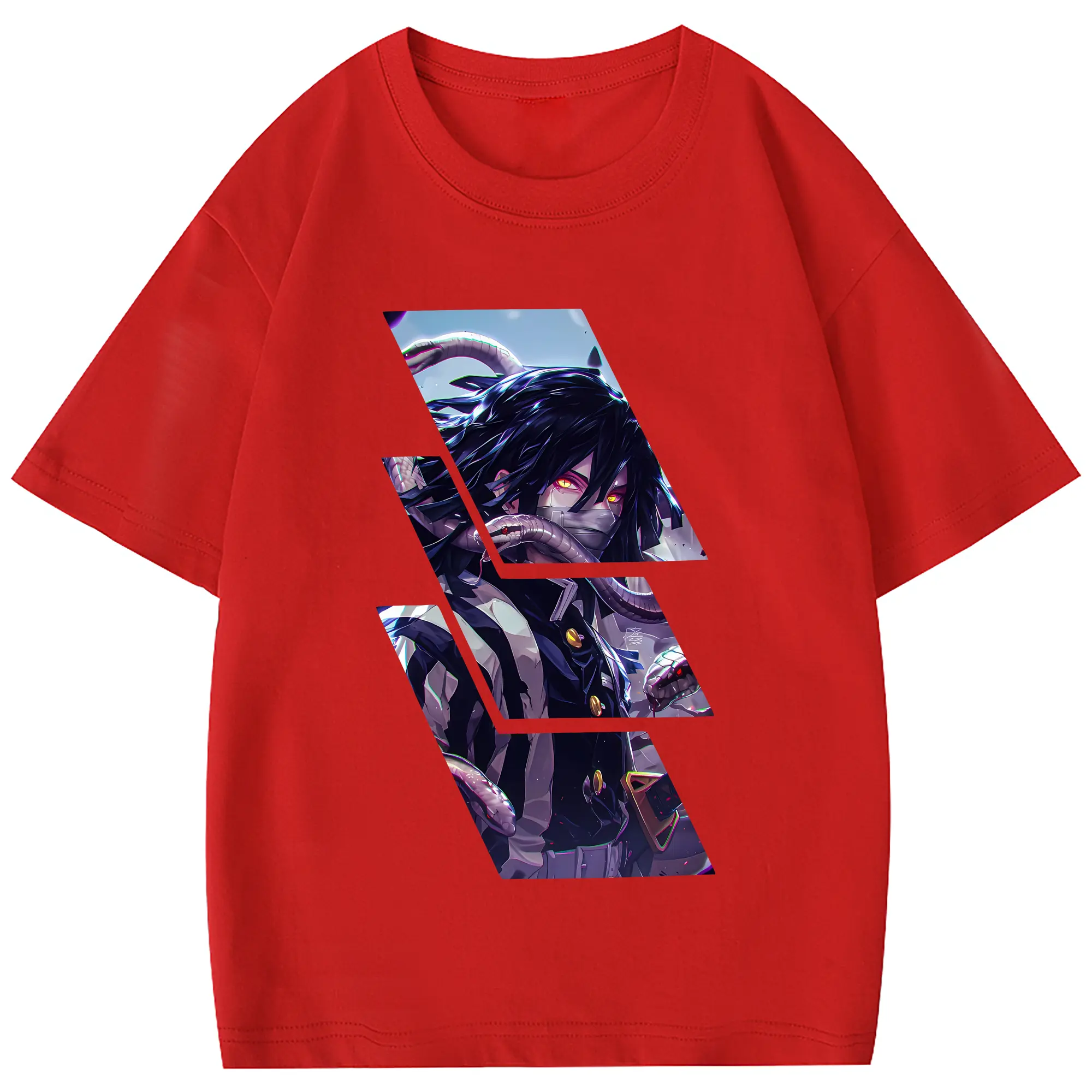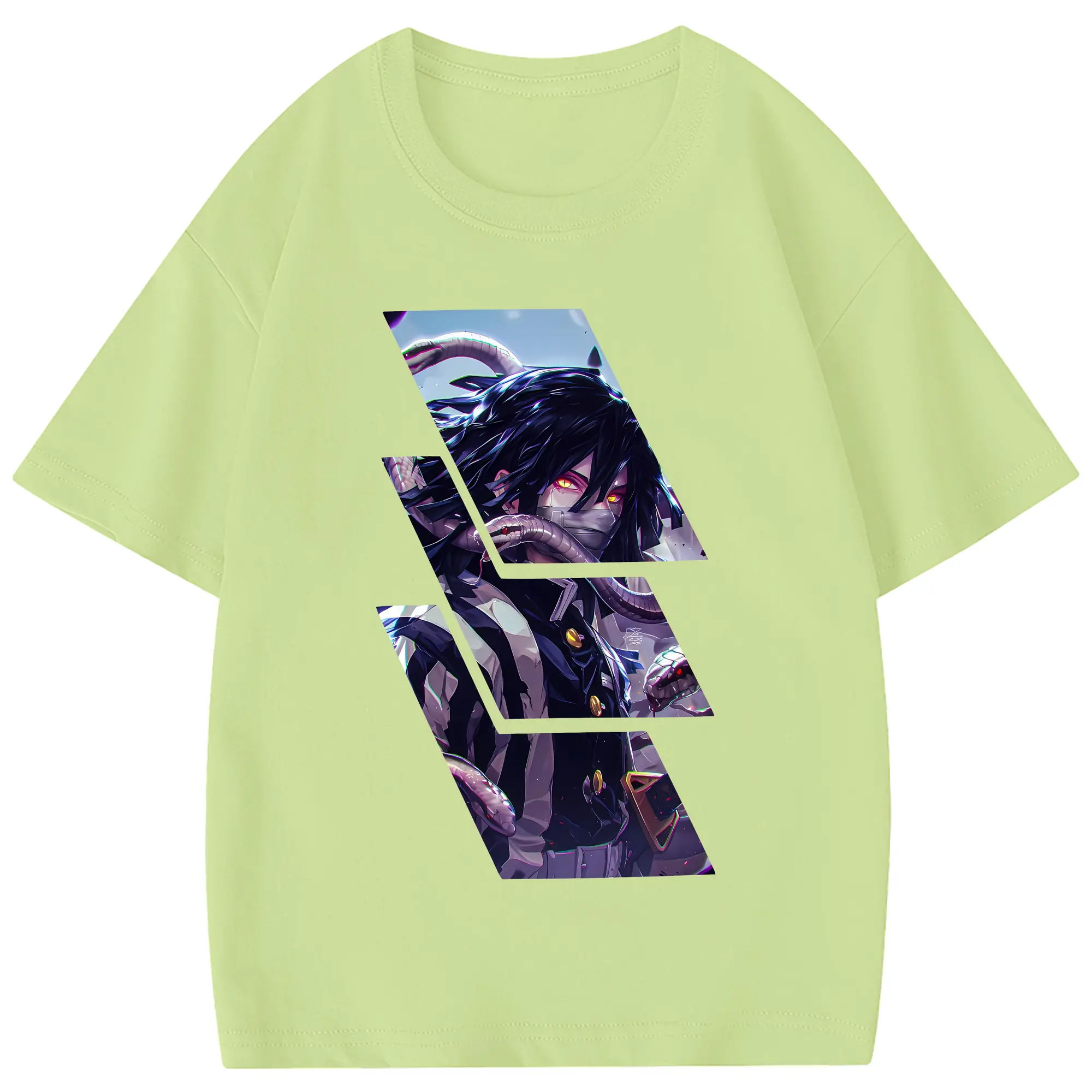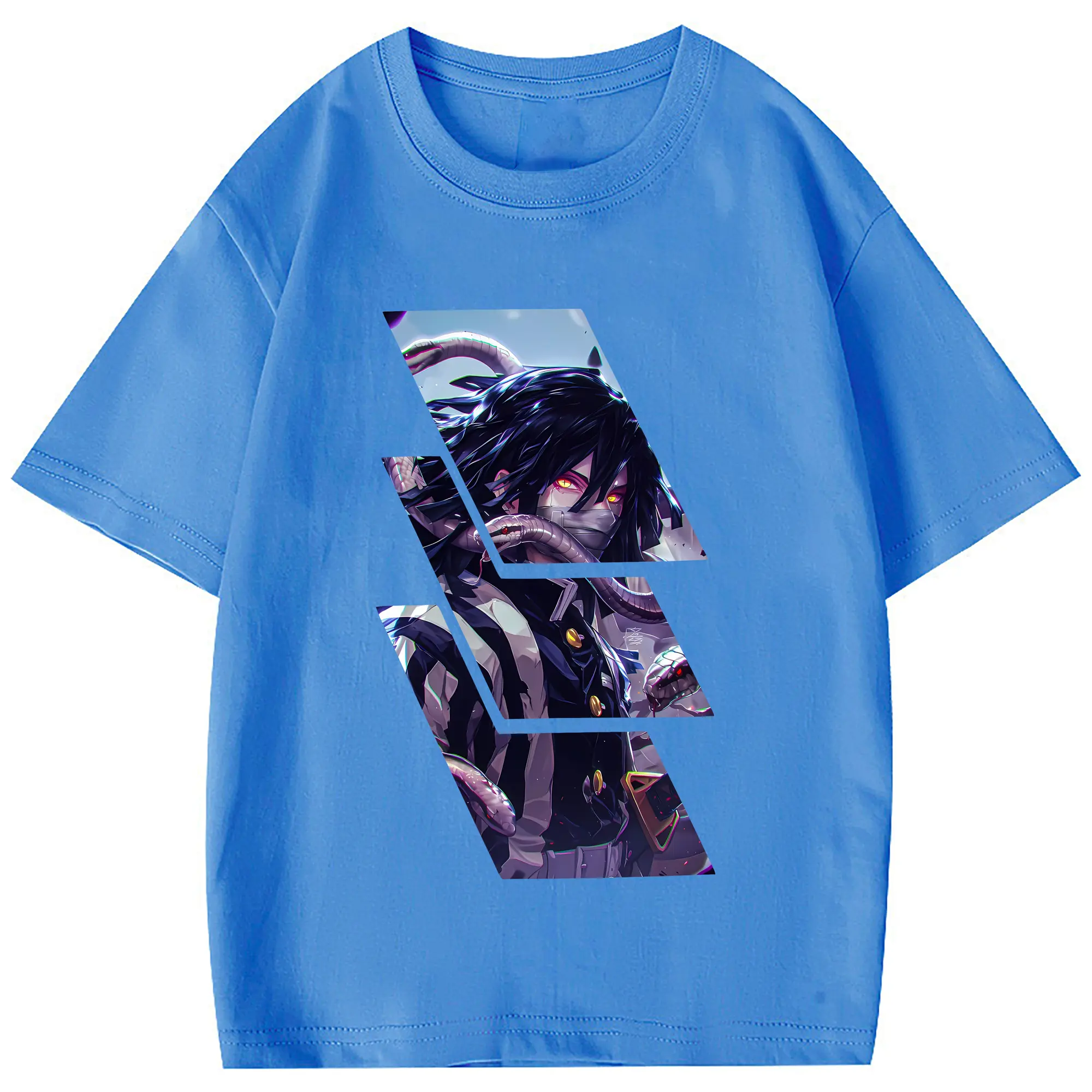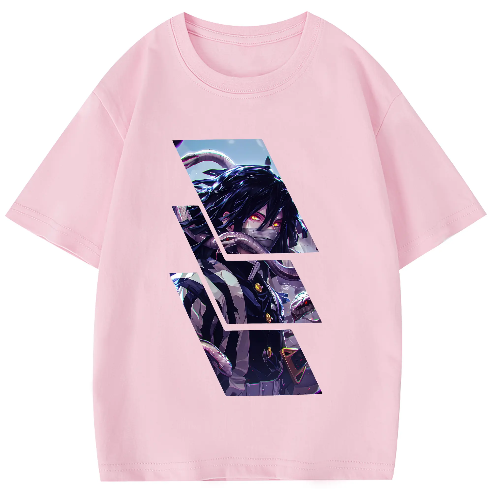 鬼滅の刃 グッズ,伊黒 小芭内 - 綿100% 半袖Tシャツ ・ フロントプリント ・ 快適 通気性 ・ 日常使い 散歩 スポーツ用