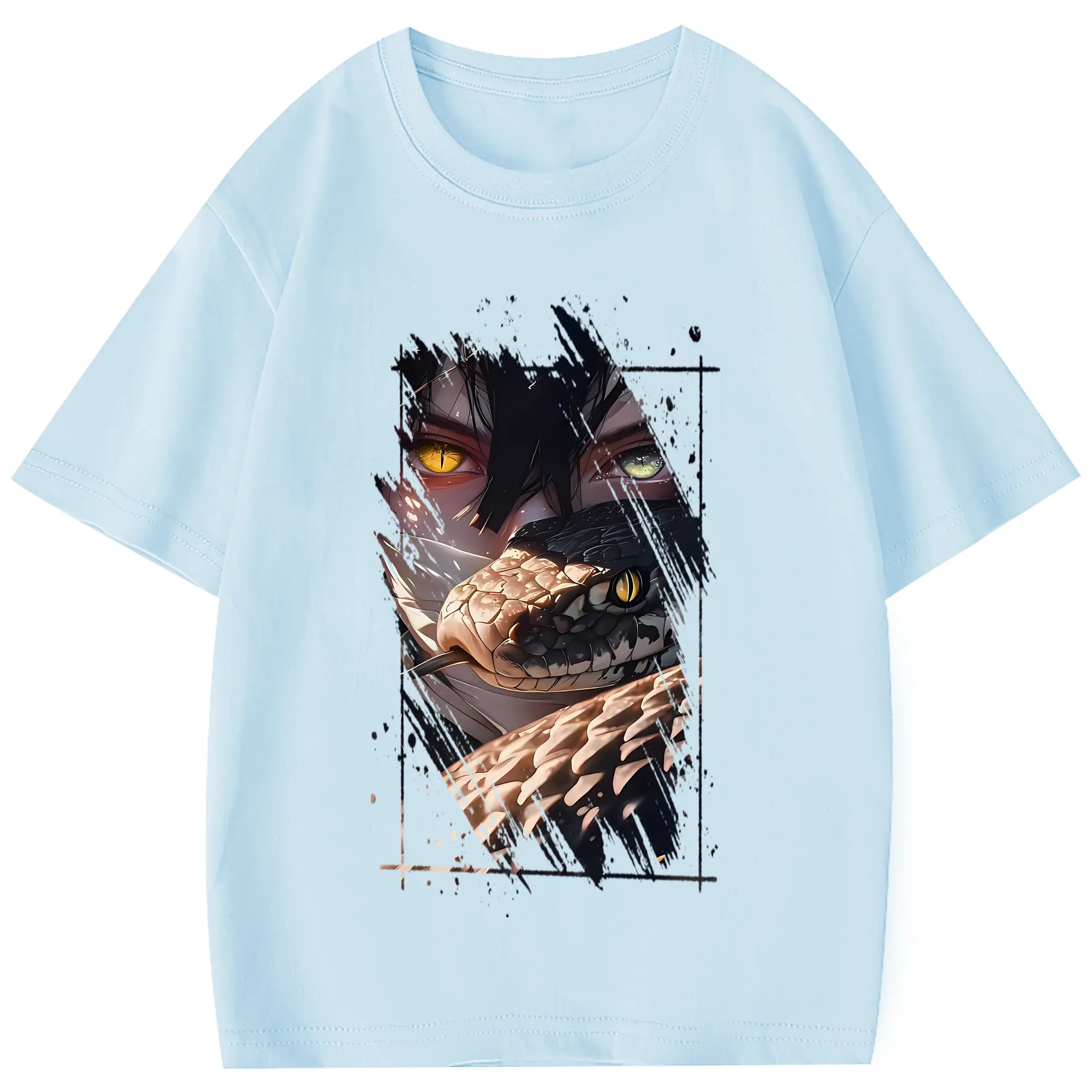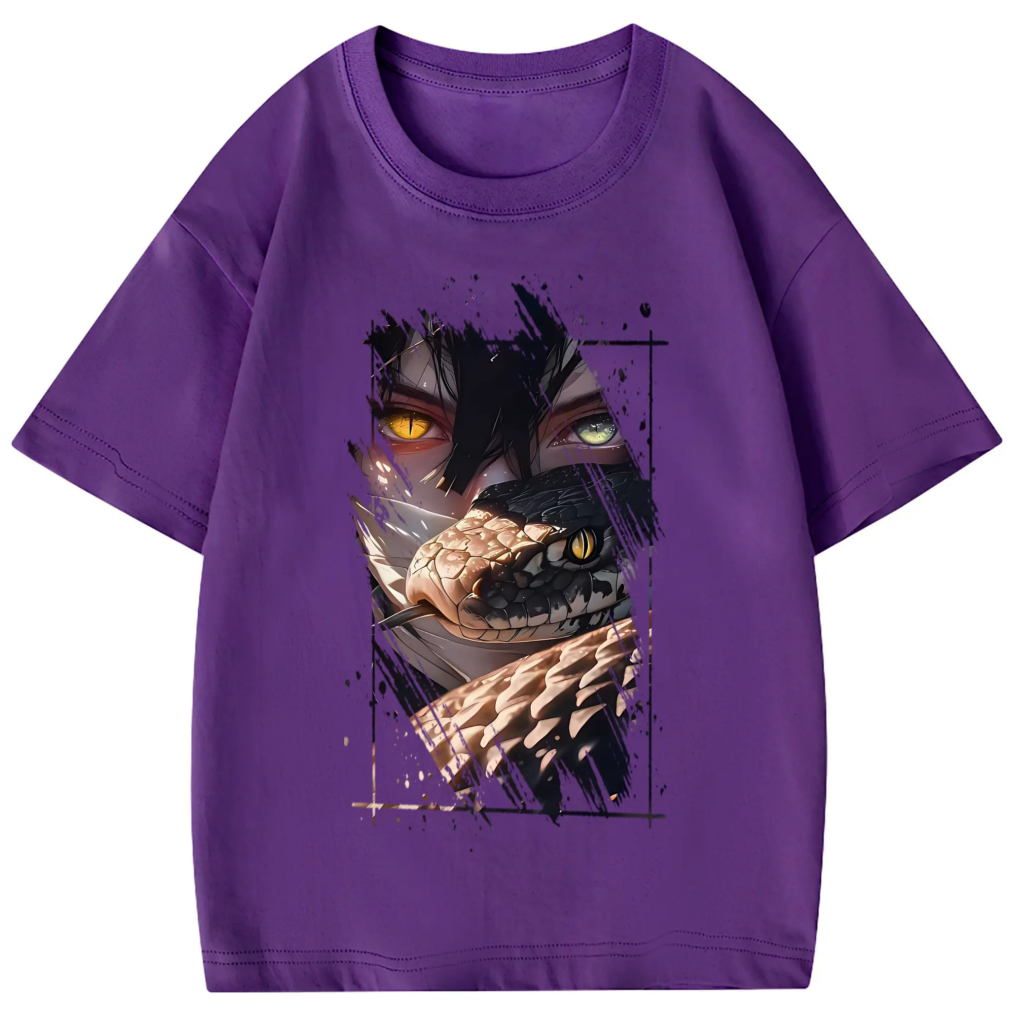 鬼滅の刃 グッズ,伊黒 小芭内 - 綿100% 半袖Tシャツ ・ フロントプリント ・ 快適 通気性 ・ 日常使い 散歩 スポーツ用