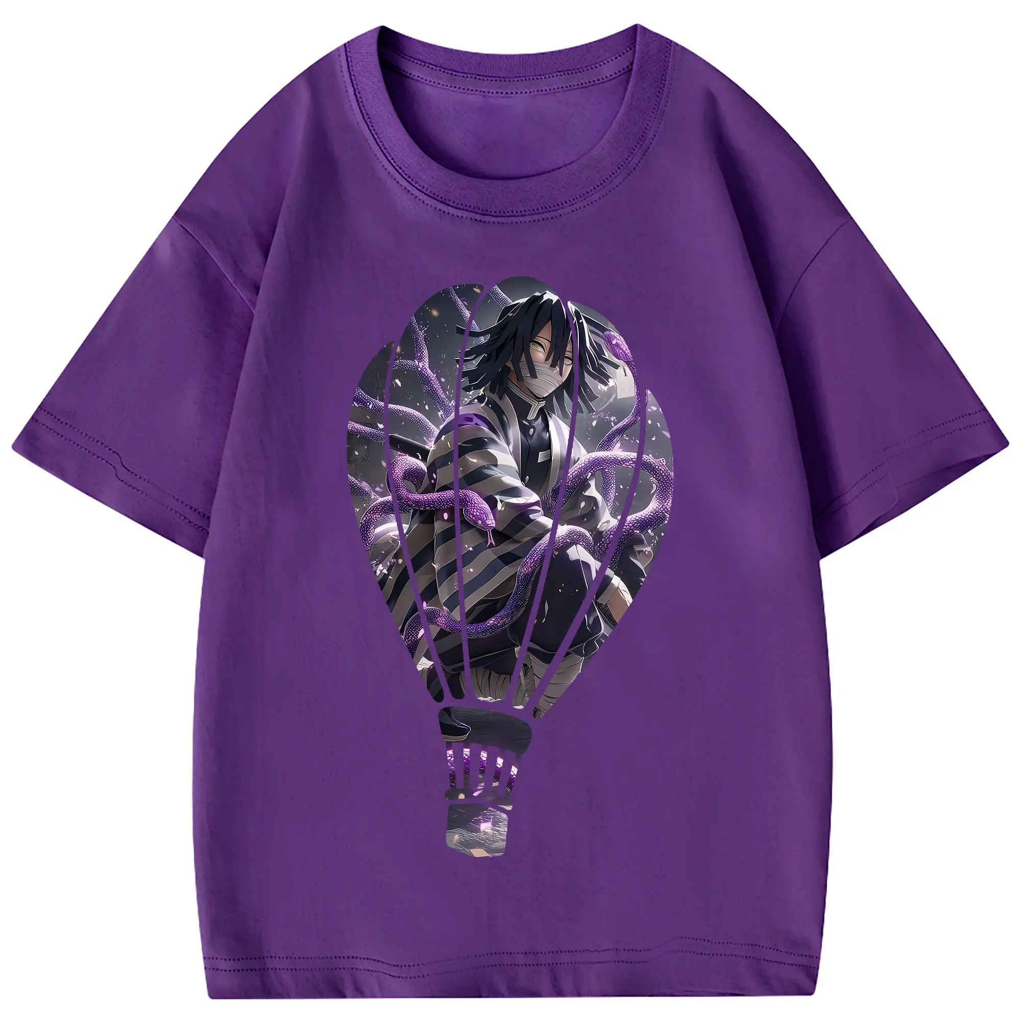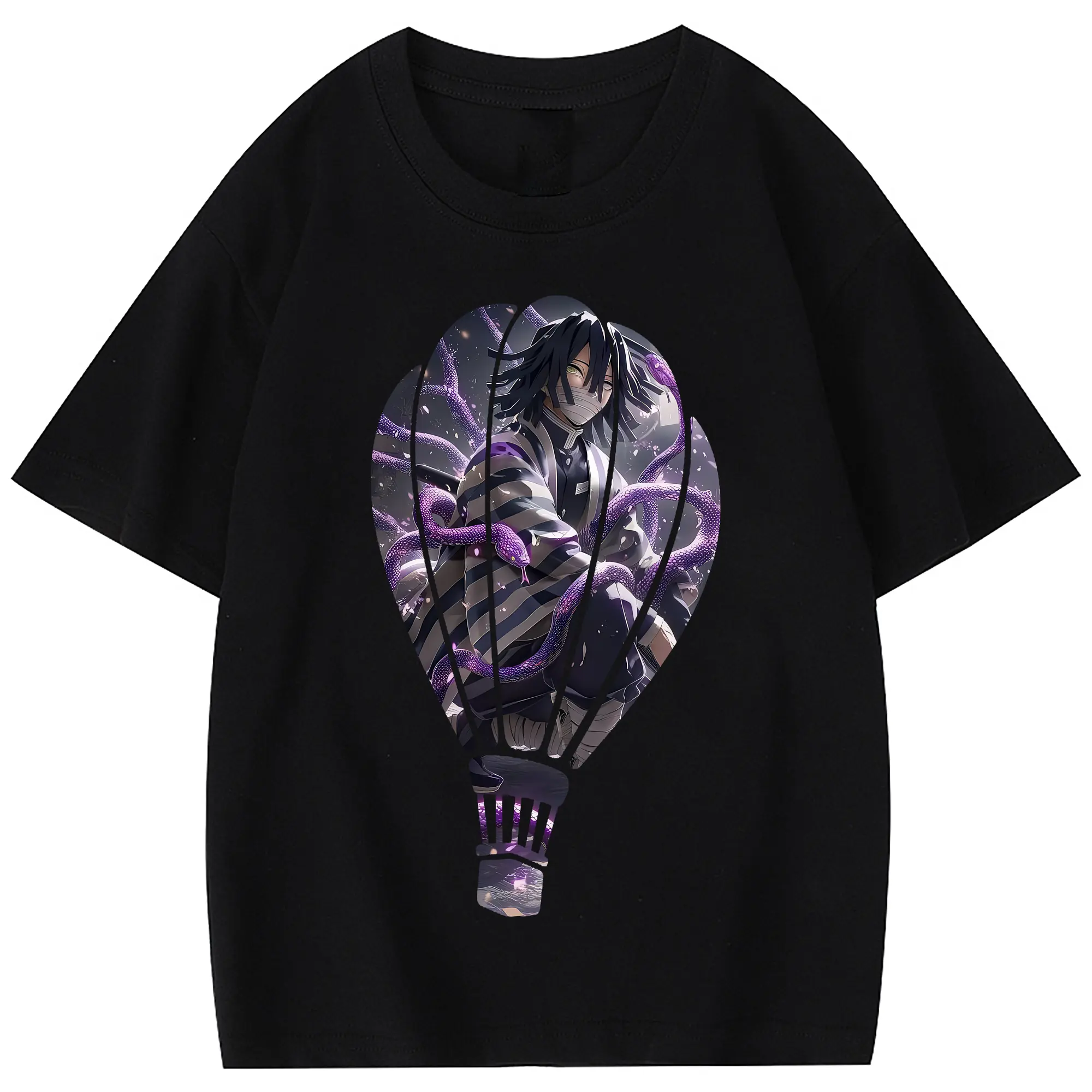 鬼滅の刃 グッズ,伊黒 小芭内 - 綿100% 半袖Tシャツ ・ フロントプリント ・ 快適 通気性 ・ 日常使い 散歩 スポーツ用