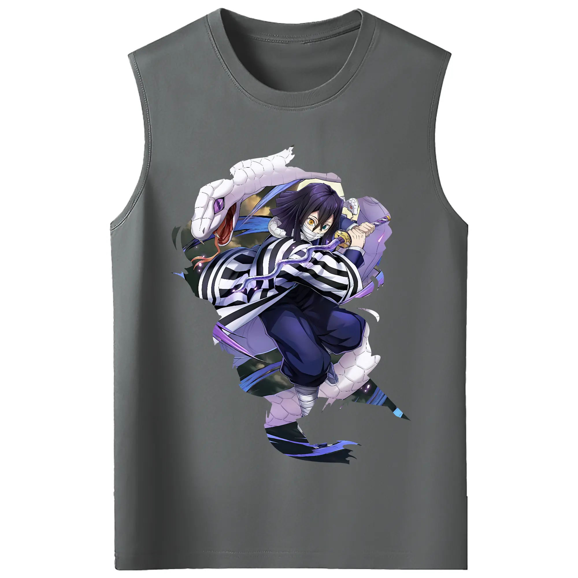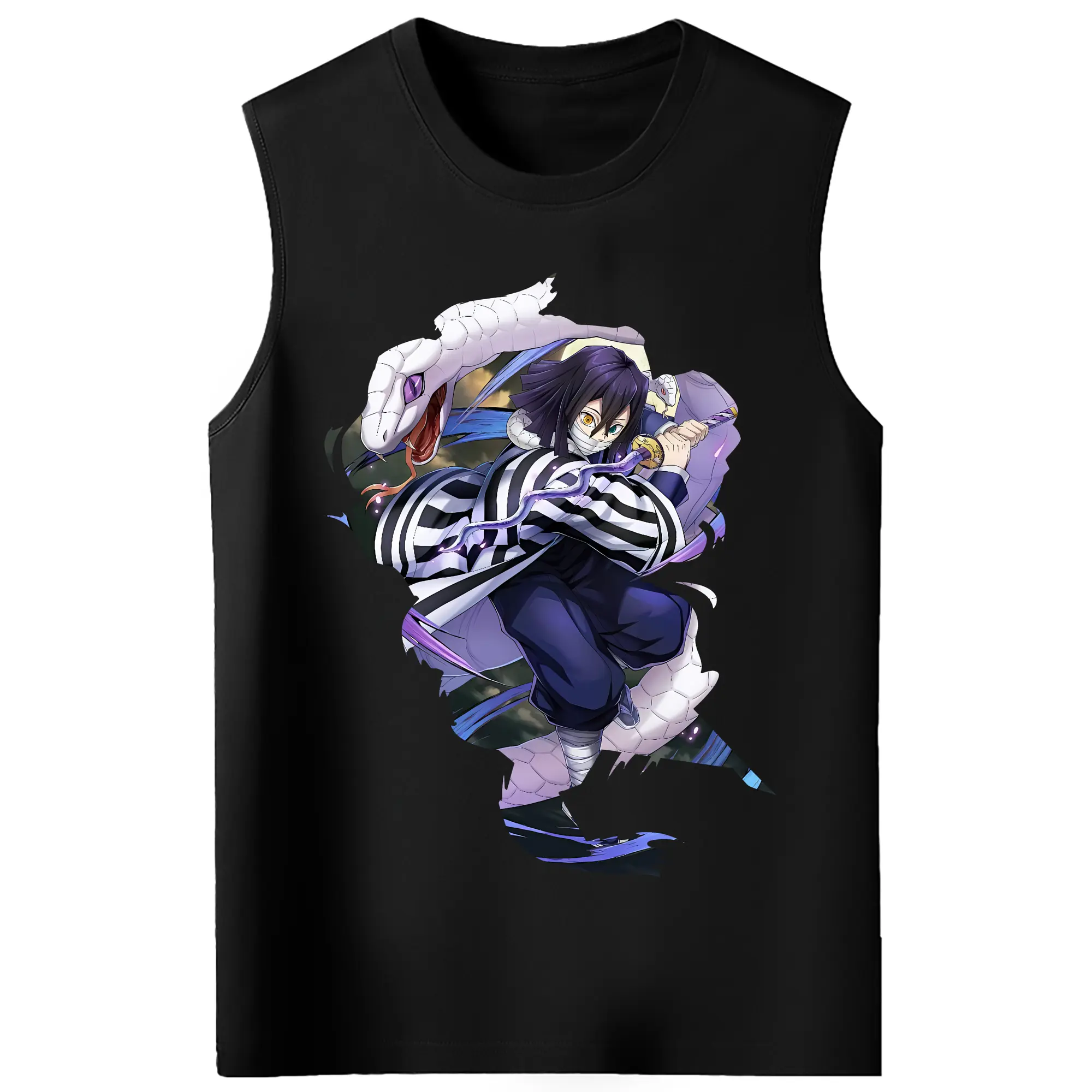 鬼滅の刃 グッズ,伊黒 小芭内 - コットン100% タンクトップ ・ フロントプリント ・ タイトフィット ・ 快適 通気性 ・ スポーツ カジュアル 散歩用