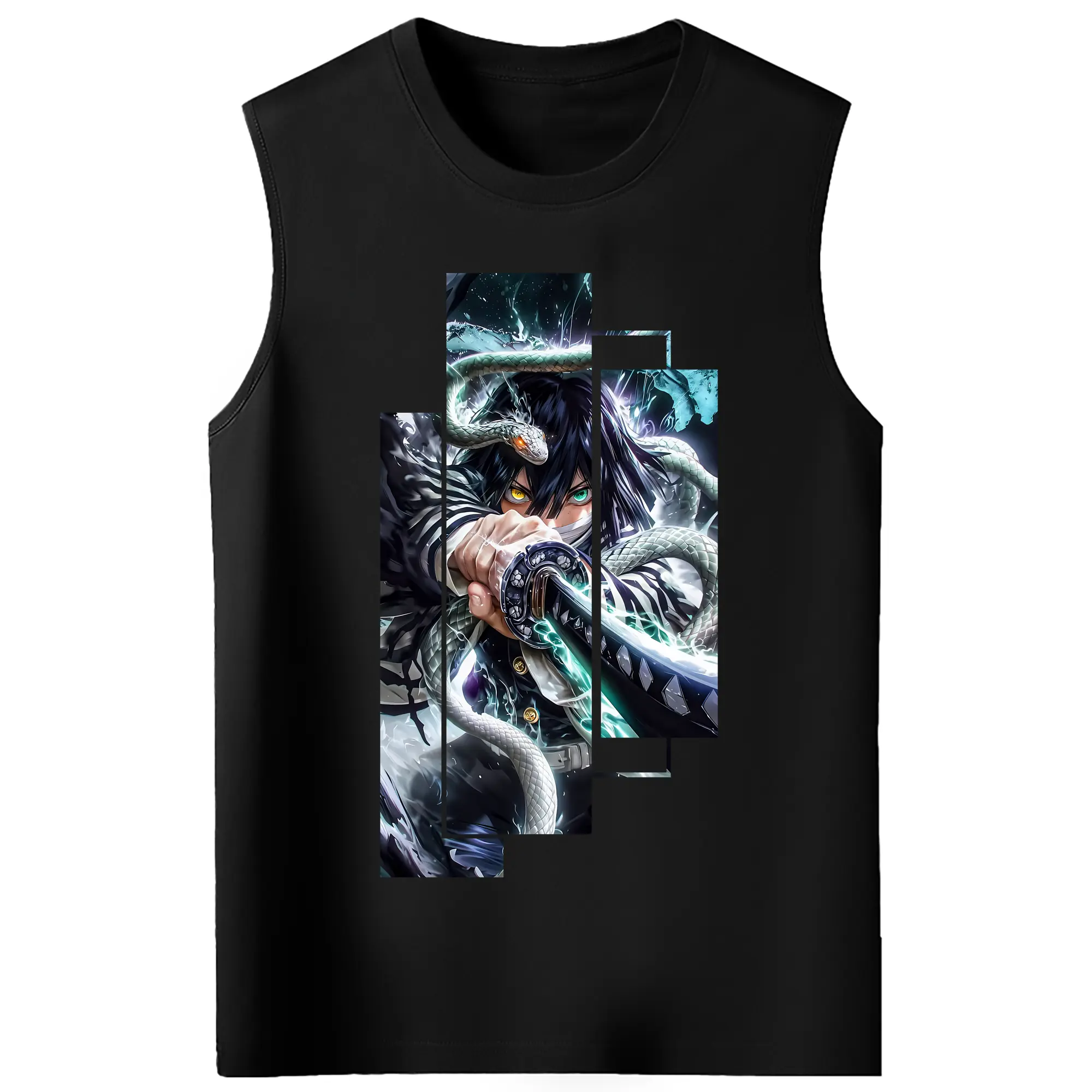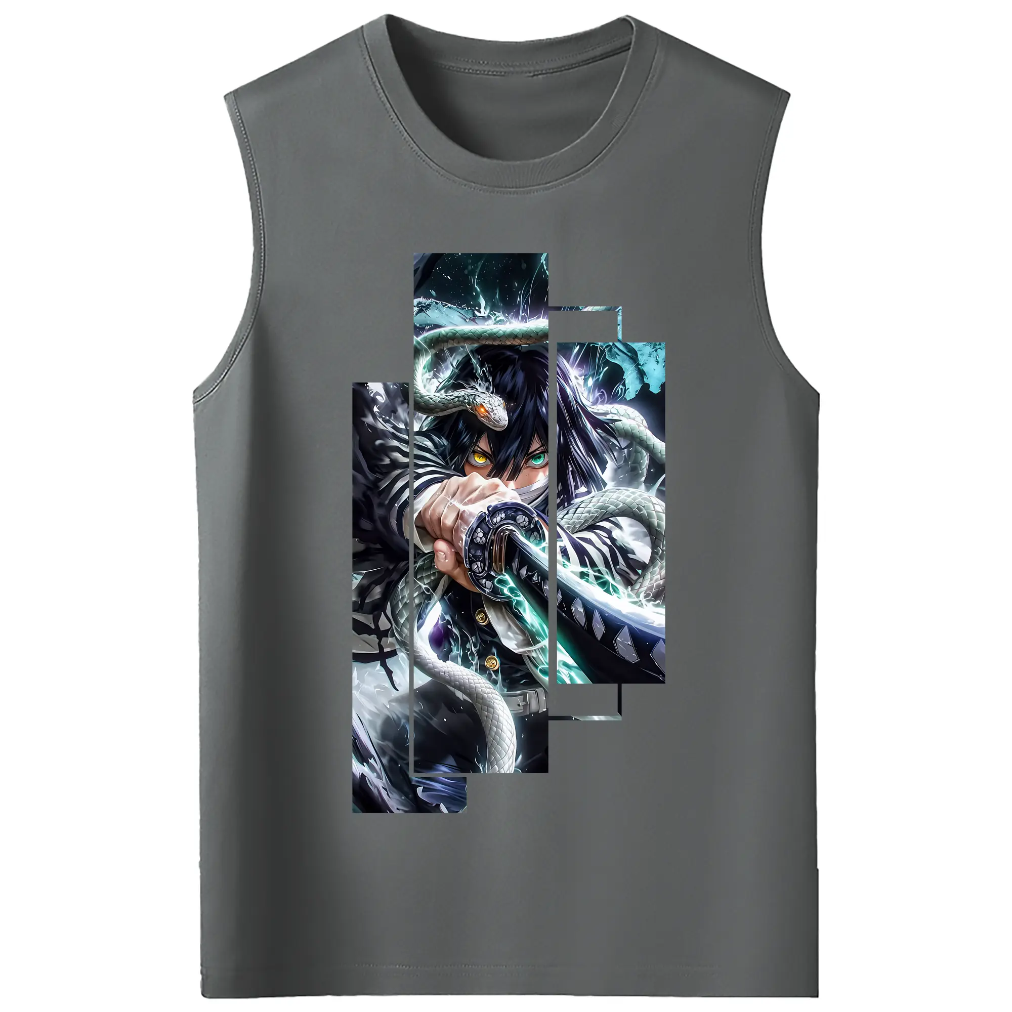 鬼滅の刃 グッズ,伊黒 小芭内 - コットン100% タンクトップ ・ フロントプリント ・ タイトフィット ・ 快適 通気性 ・ スポーツ カジュアル 散歩用
