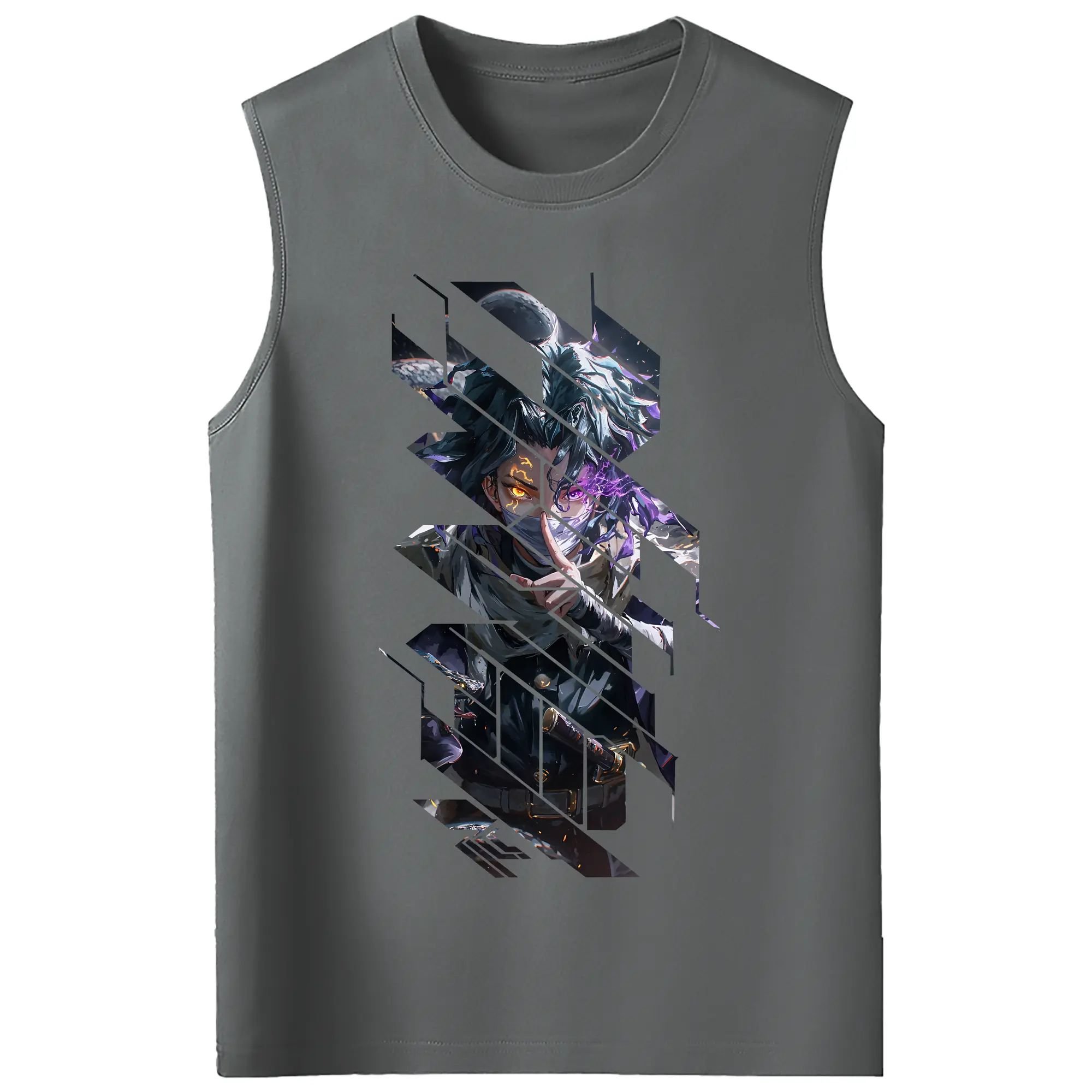 鬼滅の刃 グッズ,伊黒 小芭内 - コットン100% タンクトップ ・ フロントプリント ・ タイトフィット ・ 快適 通気性 ・ スポーツ カジュアル 散歩用