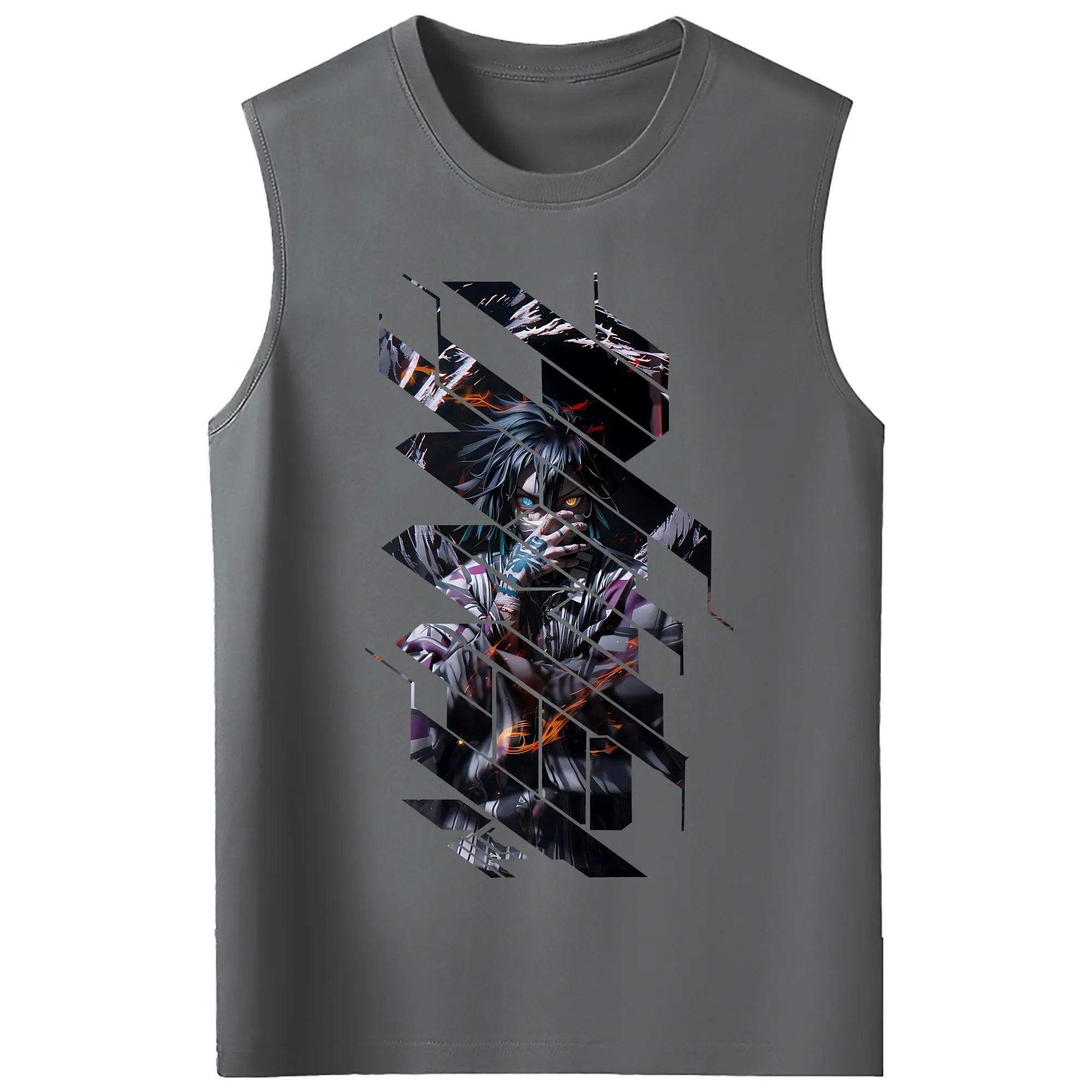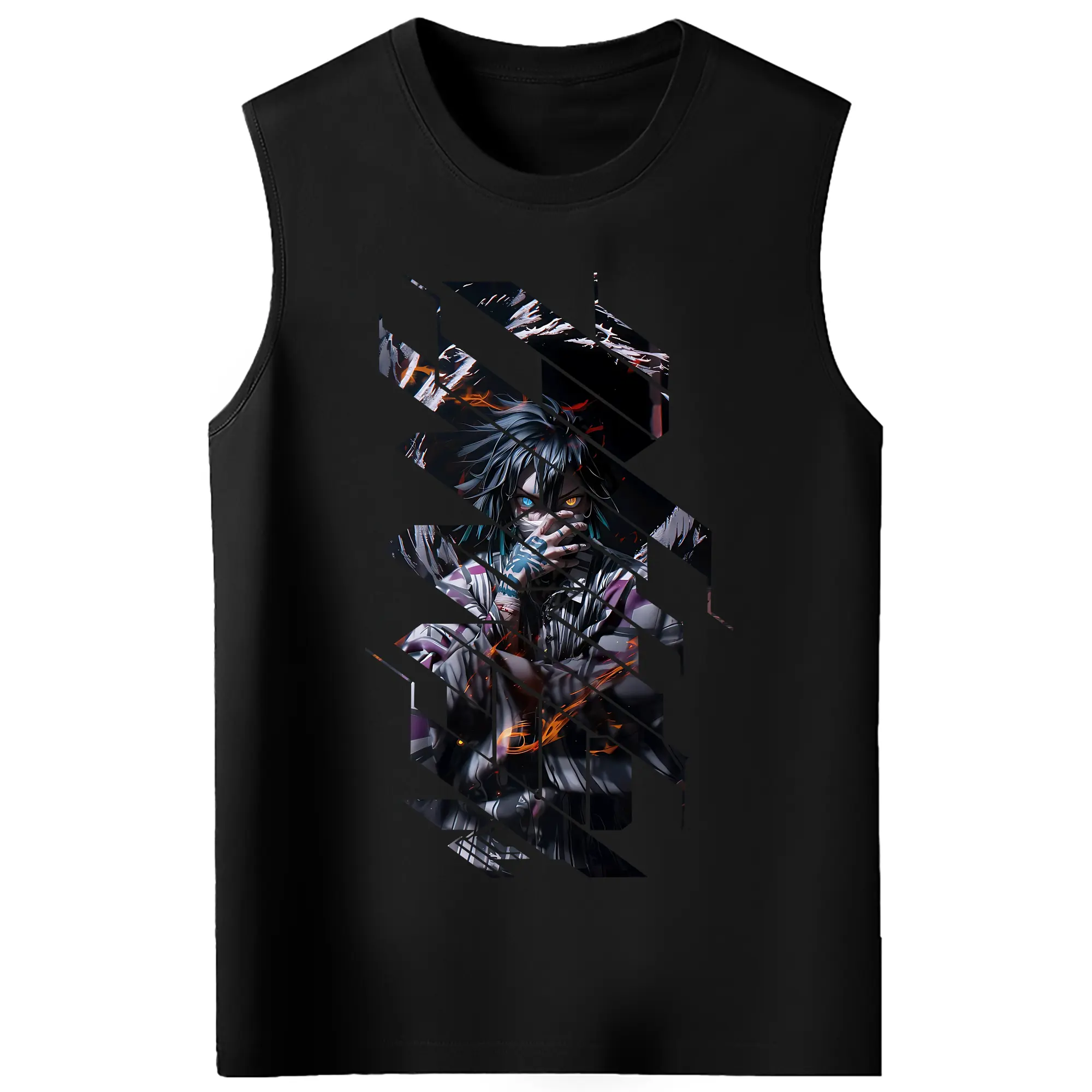 鬼滅の刃 グッズ,伊黒 小芭内 - コットン100% タンクトップ ・ フロントプリント ・ タイトフィット ・ 快適 通気性 ・ スポーツ カジュアル 散歩用
