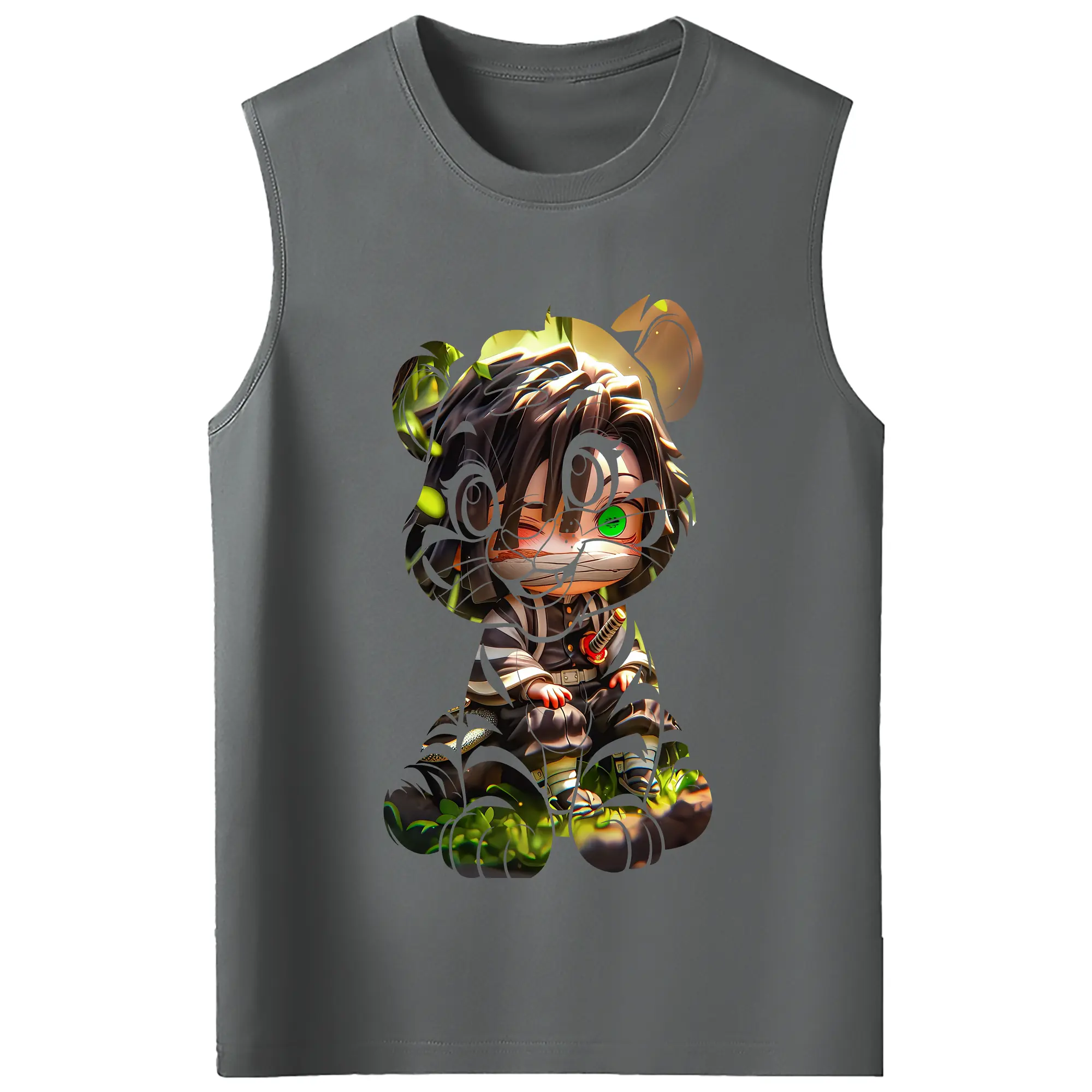 鬼滅の刃 グッズ,伊黒 小芭内 - コットン100% タンクトップ ・ フロントプリント ・ タイトフィット ・ 快適 通気性 ・ スポーツ カジュアル 散歩用
