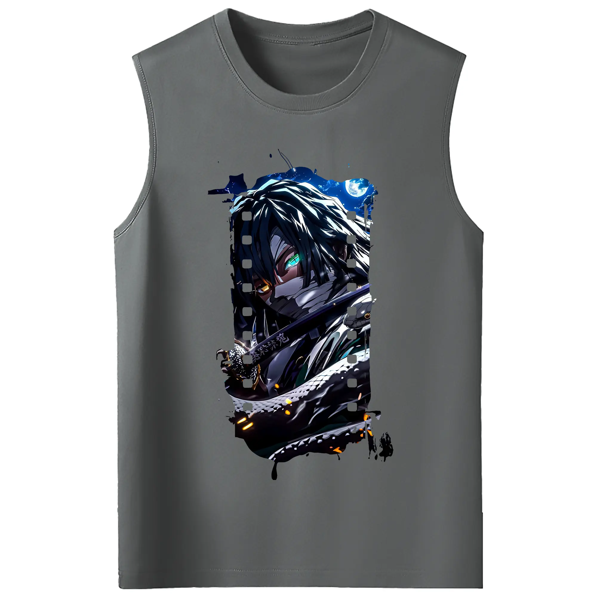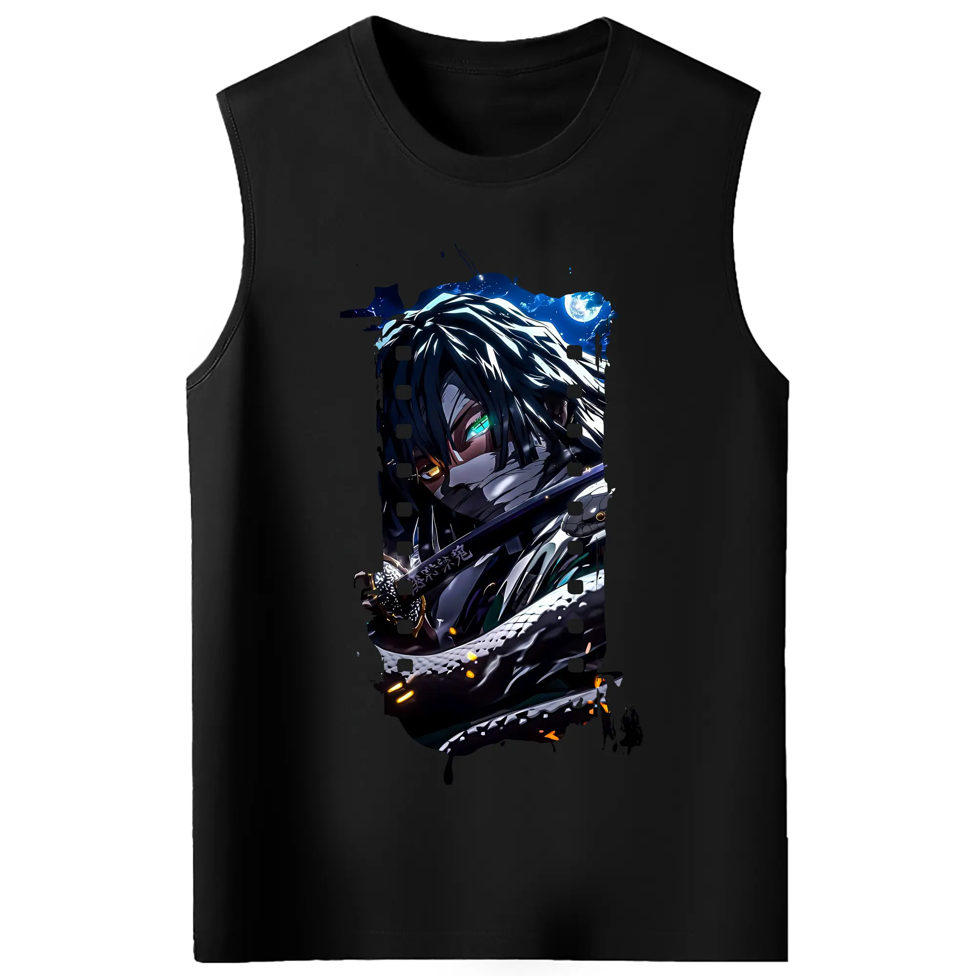 鬼滅の刃 グッズ,伊黒 小芭内 - コットン100% タンクトップ ・ フロントプリント ・ タイトフィット ・ 快適 通気性 ・ スポーツ カジュアル 散歩用