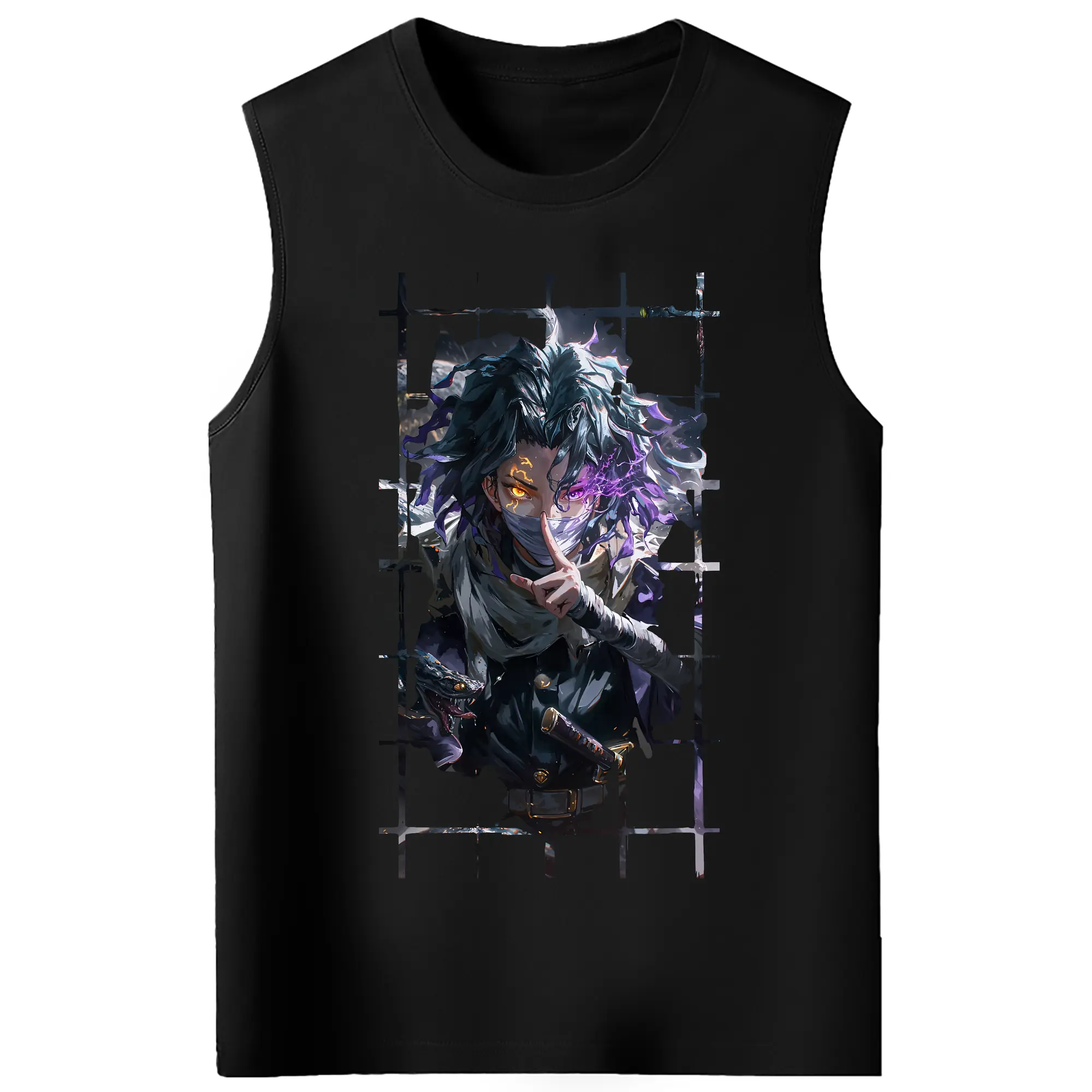 鬼滅の刃 グッズ,伊黒 小芭内 - コットン100% タンクトップ ・ フロントプリント ・ タイトフィット ・ 快適 通気性 ・ スポーツ カジュアル 散歩用