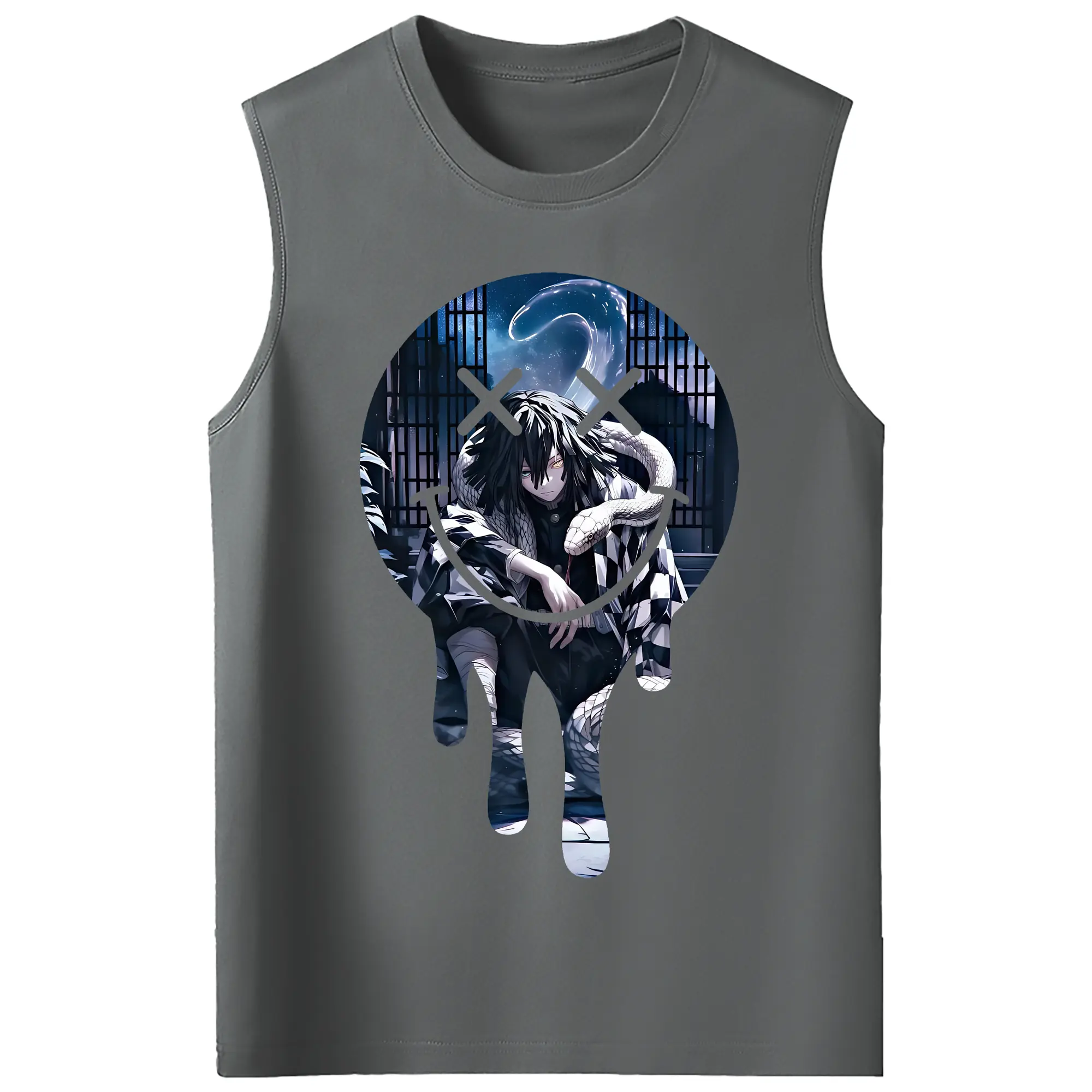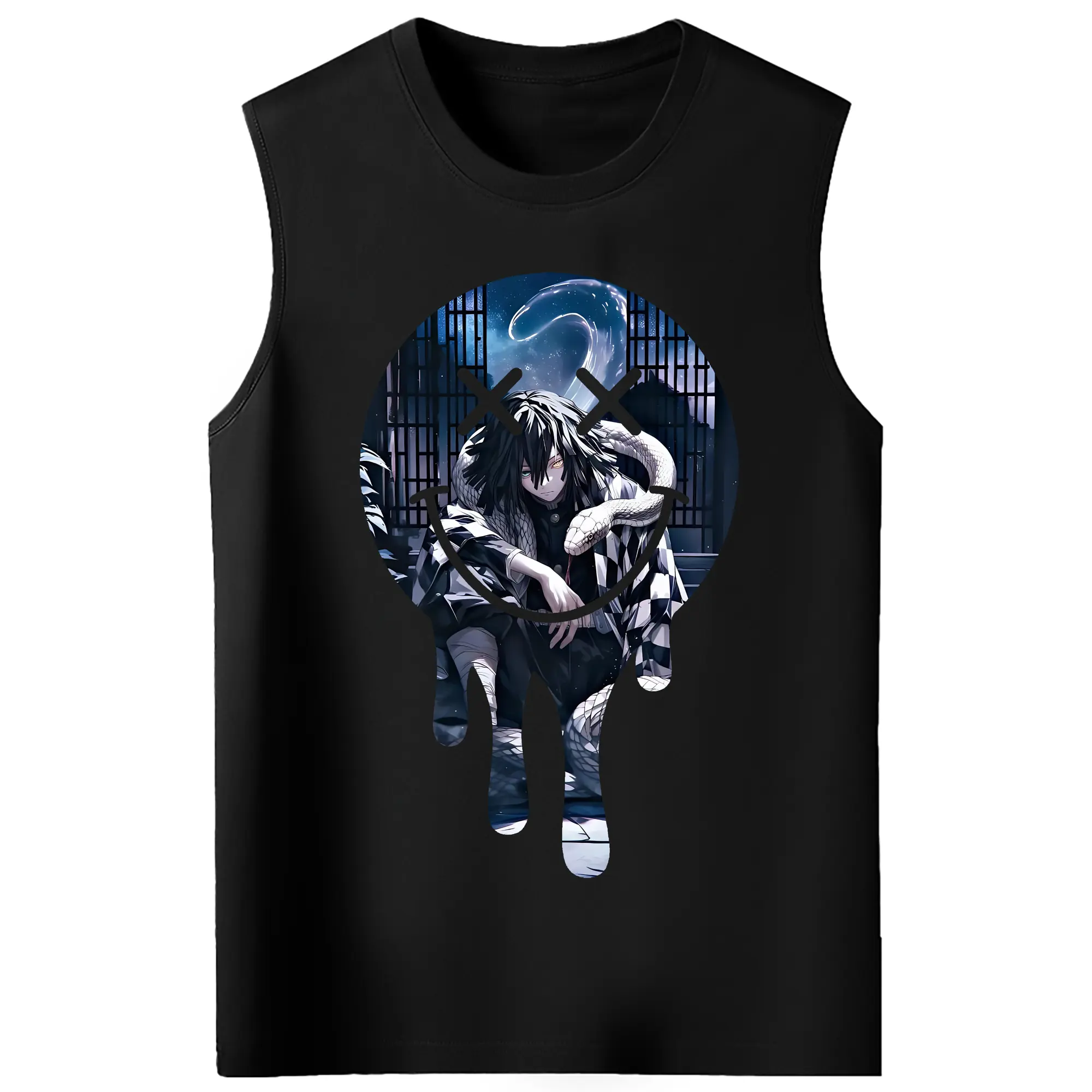 鬼滅の刃 グッズ,伊黒 小芭内 - コットン100% タンクトップ ・ フロントプリント ・ タイトフィット ・ 快適 通気性 ・ スポーツ カジュアル 散歩用