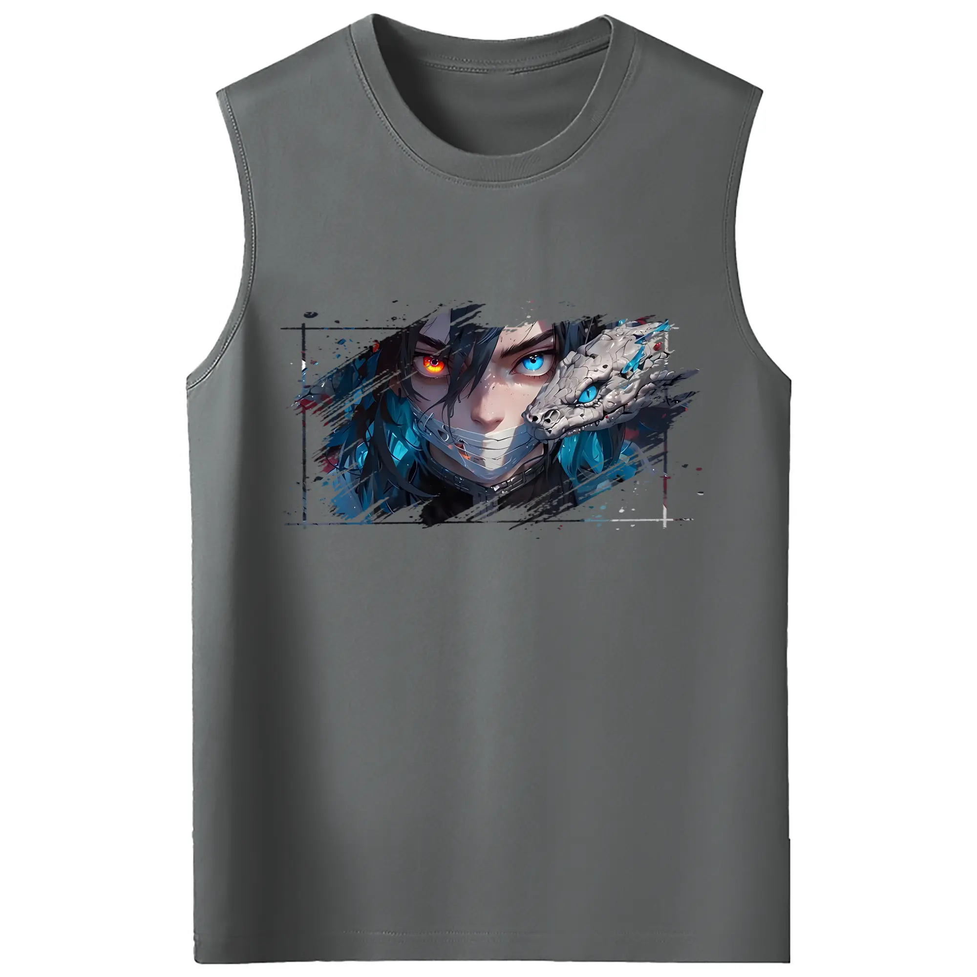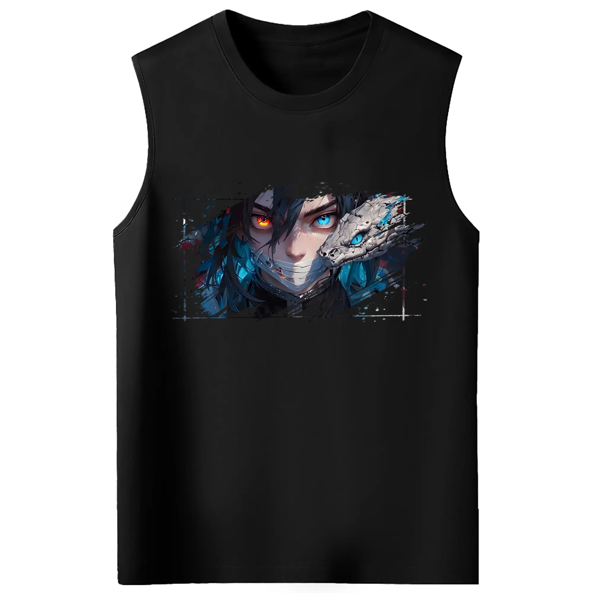 鬼滅の刃 グッズ,伊黒 小芭内 - コットン100% タンクトップ ・ フロントプリント ・ タイトフィット ・ 快適 通気性 ・ スポーツ カジュアル 散歩用