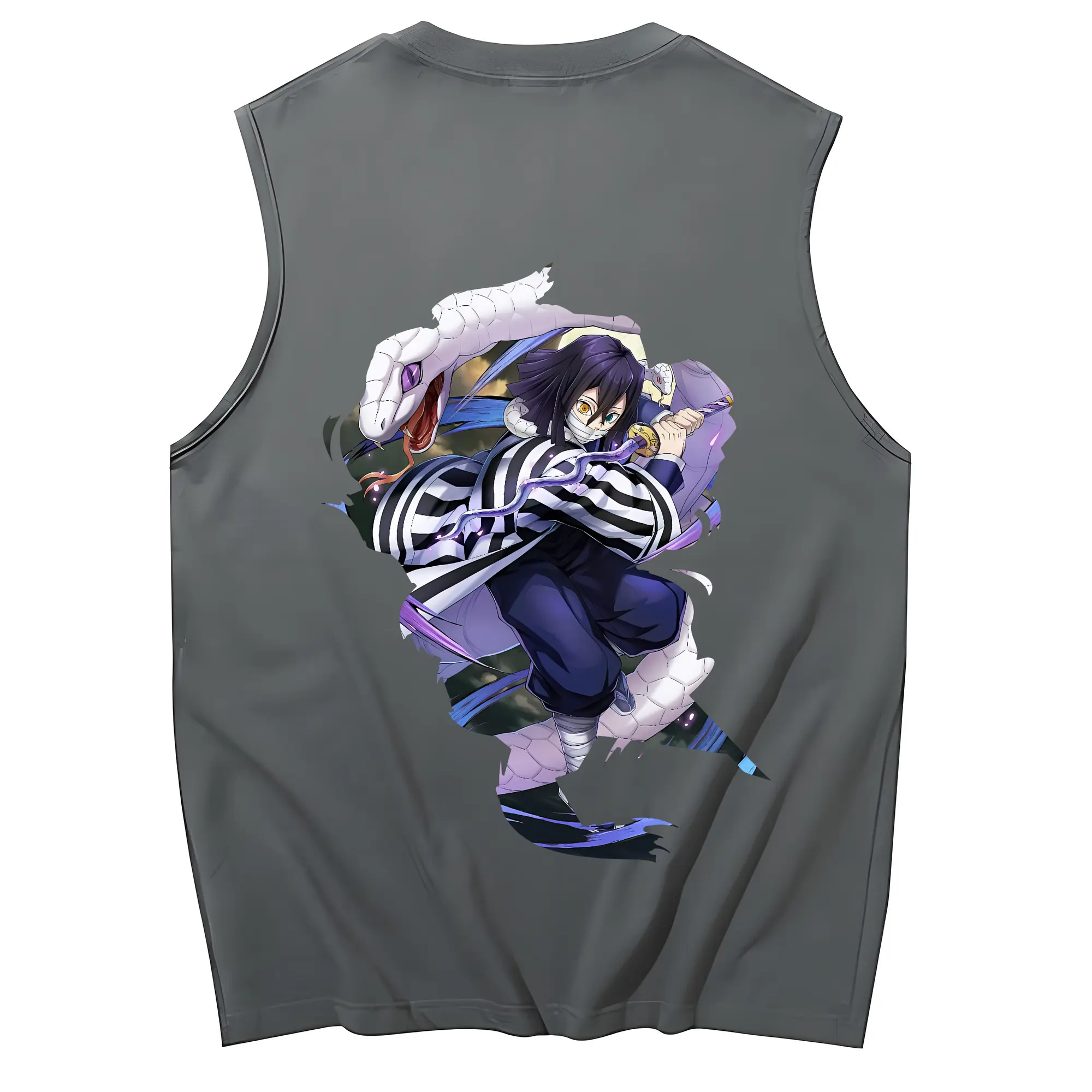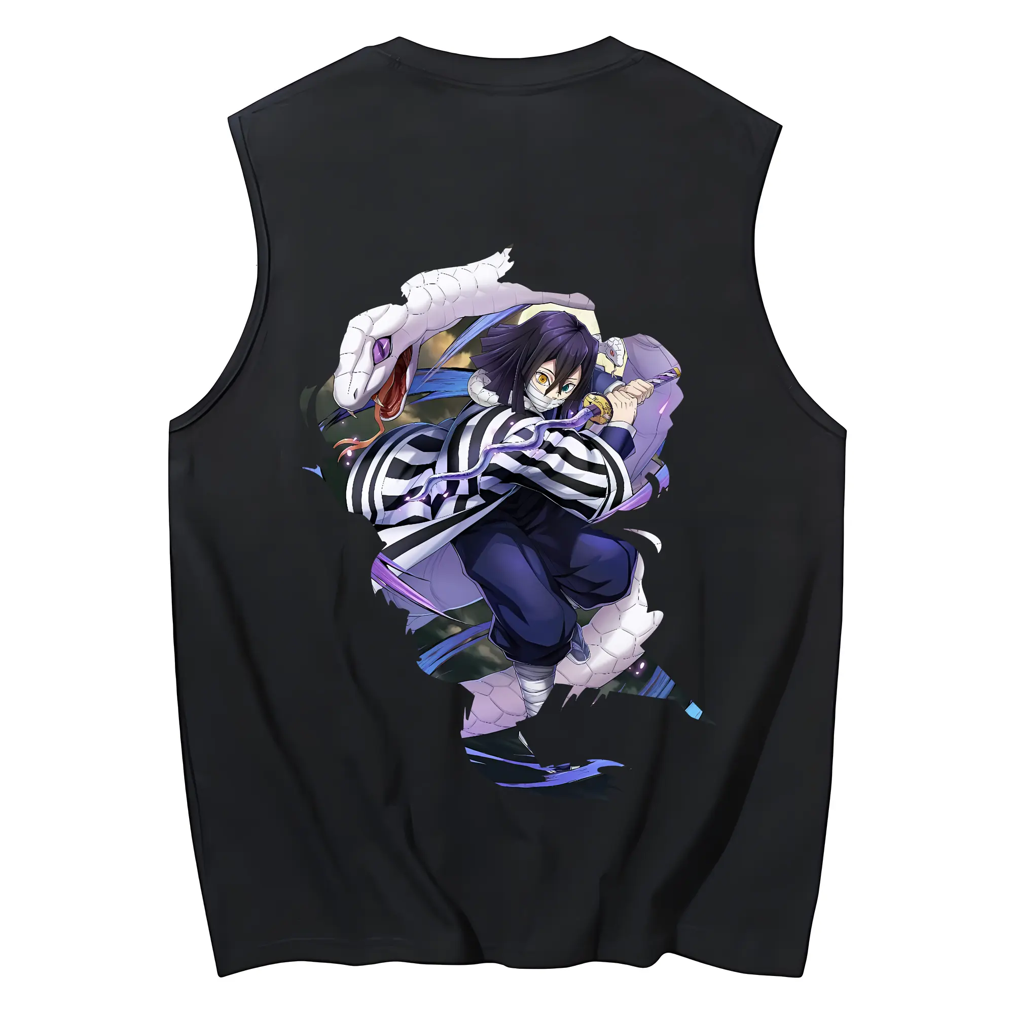 鬼滅の刃 グッズ,伊黒 小芭内 - コットン100% タンクトップ ・ 背面プリント ・ タイトシルエット ・ 快適 通気性 ・ スポーツ カジュアル 散歩用