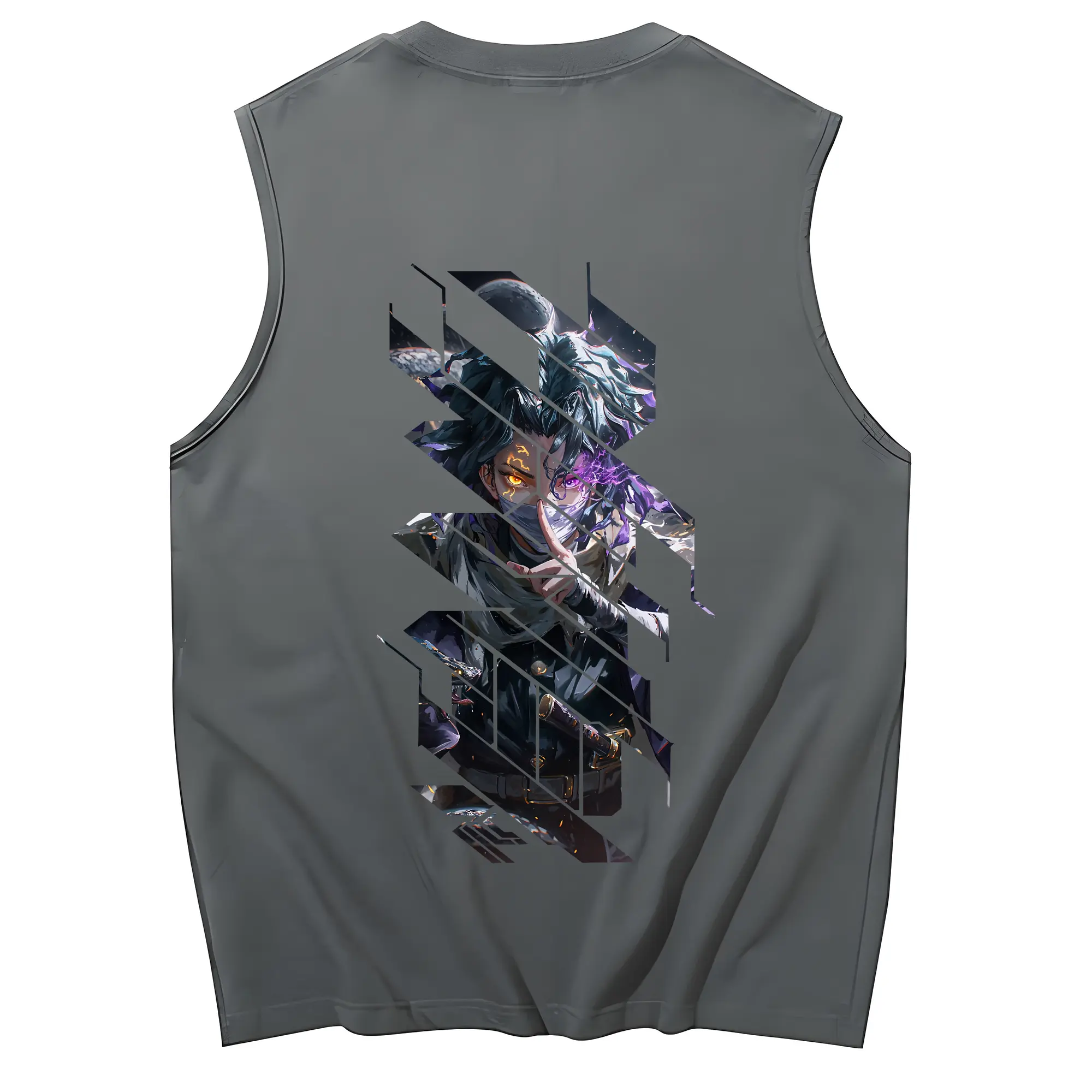 鬼滅の刃 グッズ,伊黒 小芭内 - コットン100% タンクトップ ・ 背面プリント ・ タイトシルエット ・ 快適 通気性 ・ スポーツ カジュアル 散歩用