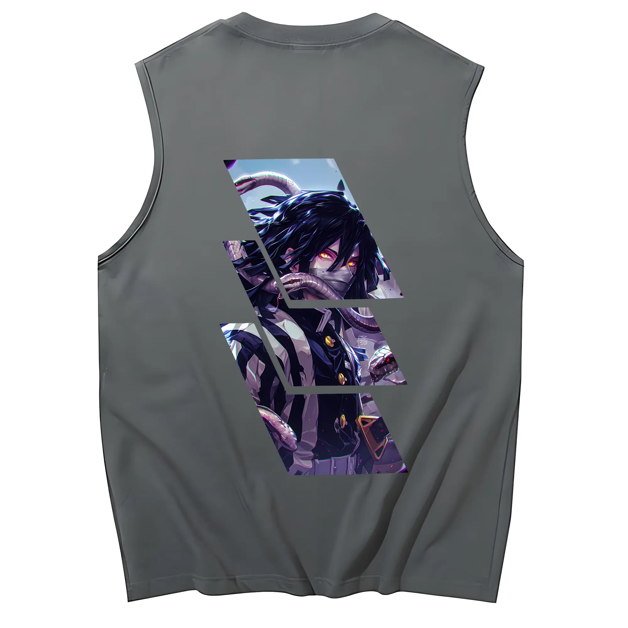 鬼滅の刃 グッズ,伊黒 小芭内 - コットン100% タンクトップ ・ 背面プリント ・ タイトシルエット ・ 快適 通気性 ・ スポーツ カジュアル 散歩用