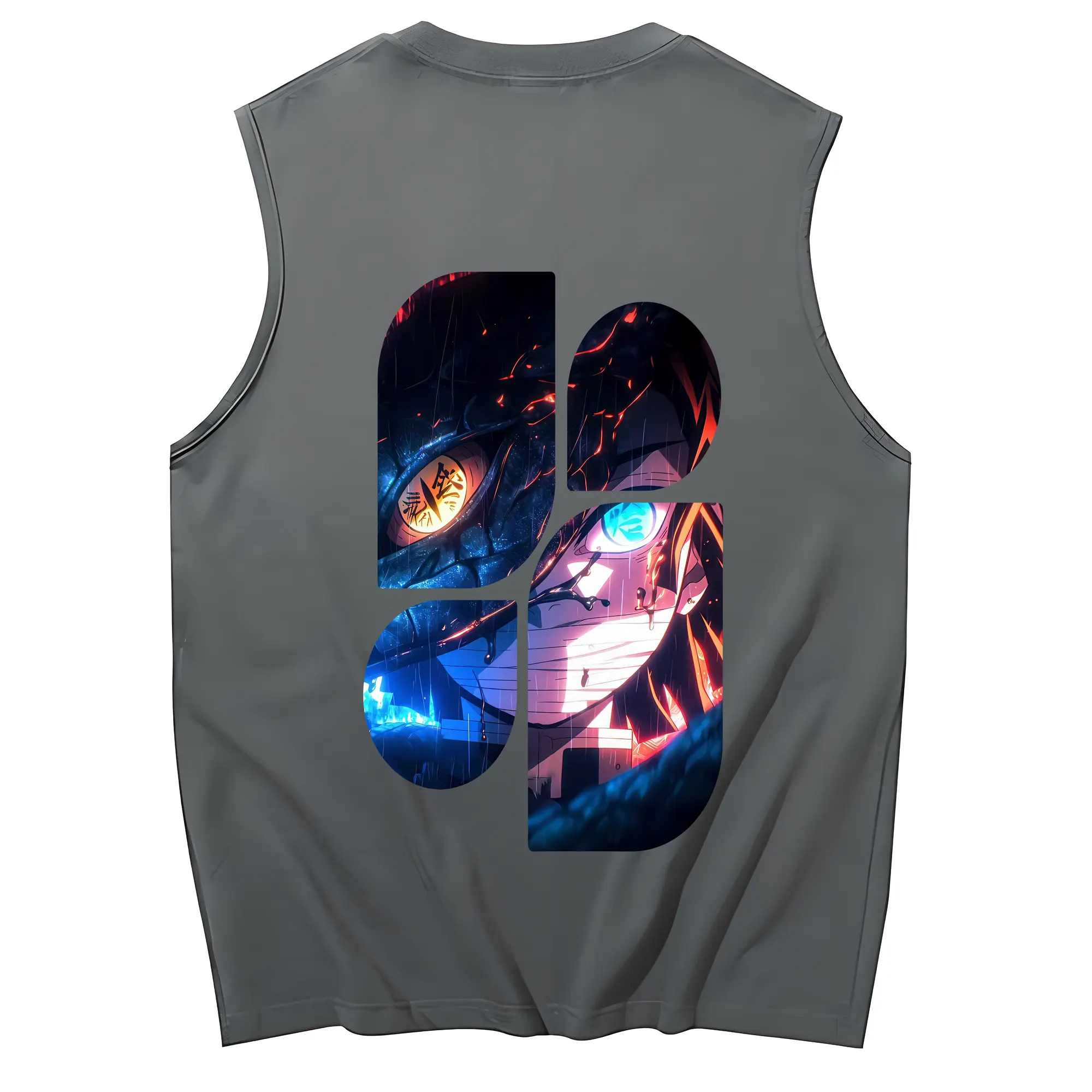 鬼滅の刃 グッズ,伊黒 小芭内 - コットン100% タンクトップ ・ 背面プリント ・ タイトシルエット ・ 快適 通気性 ・ スポーツ カジュアル 散歩用
