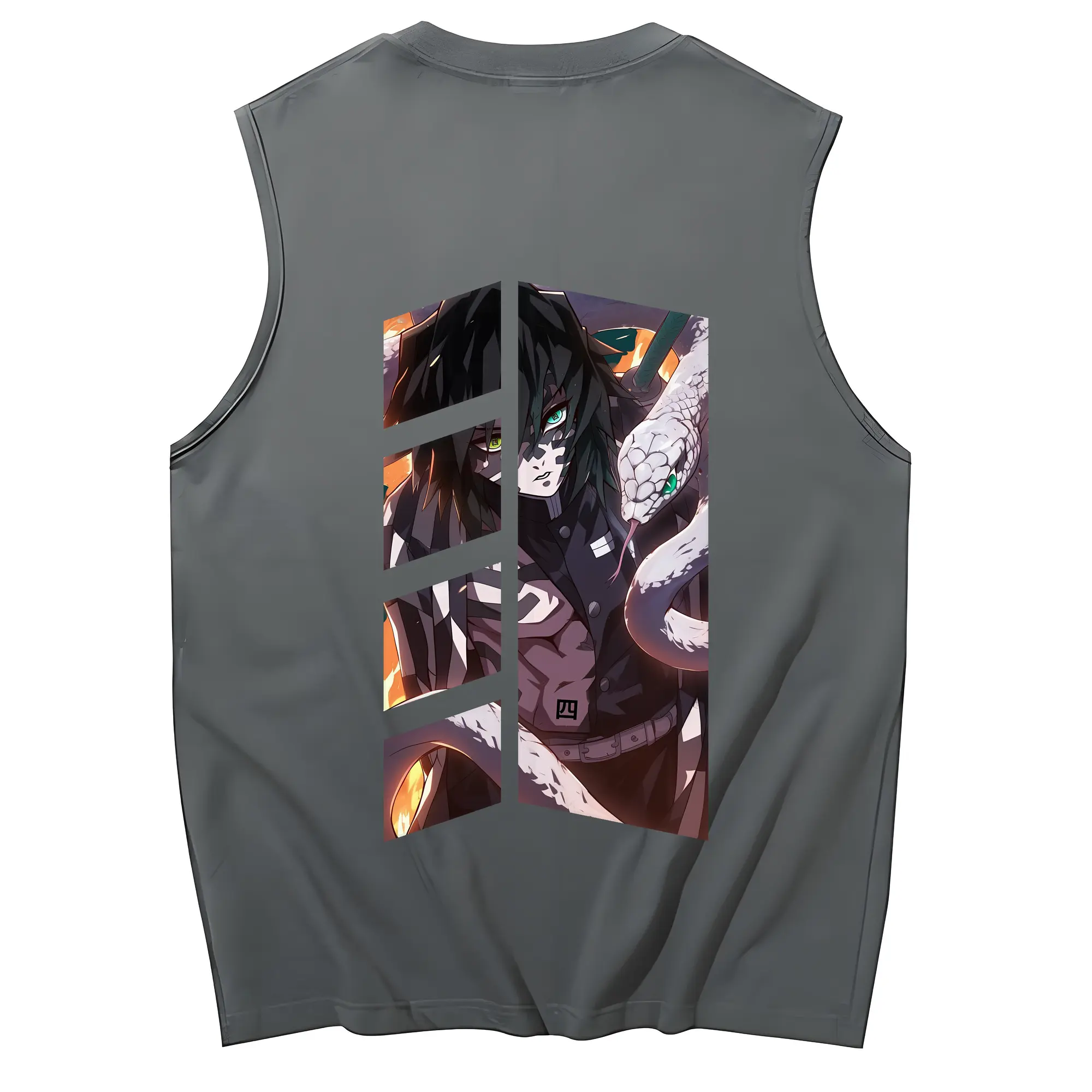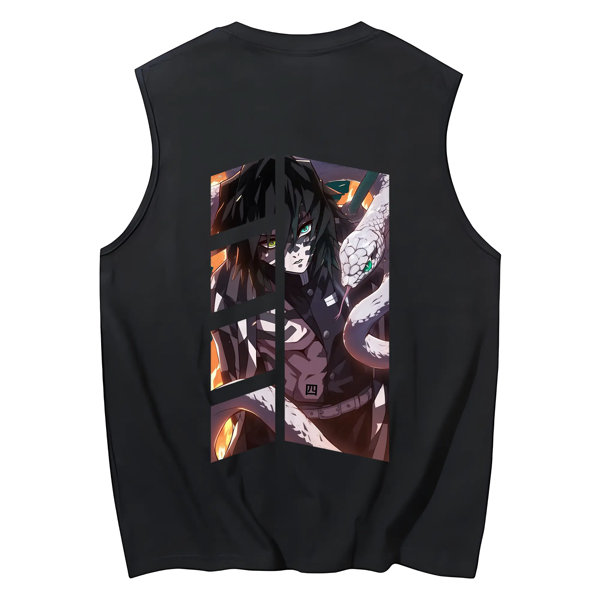 鬼滅の刃 グッズ,伊黒 小芭内 - コットン100% タンクトップ ・ 背面プリント ・ タイトシルエット ・ 快適 通気性 ・ スポーツ カジュアル 散歩用