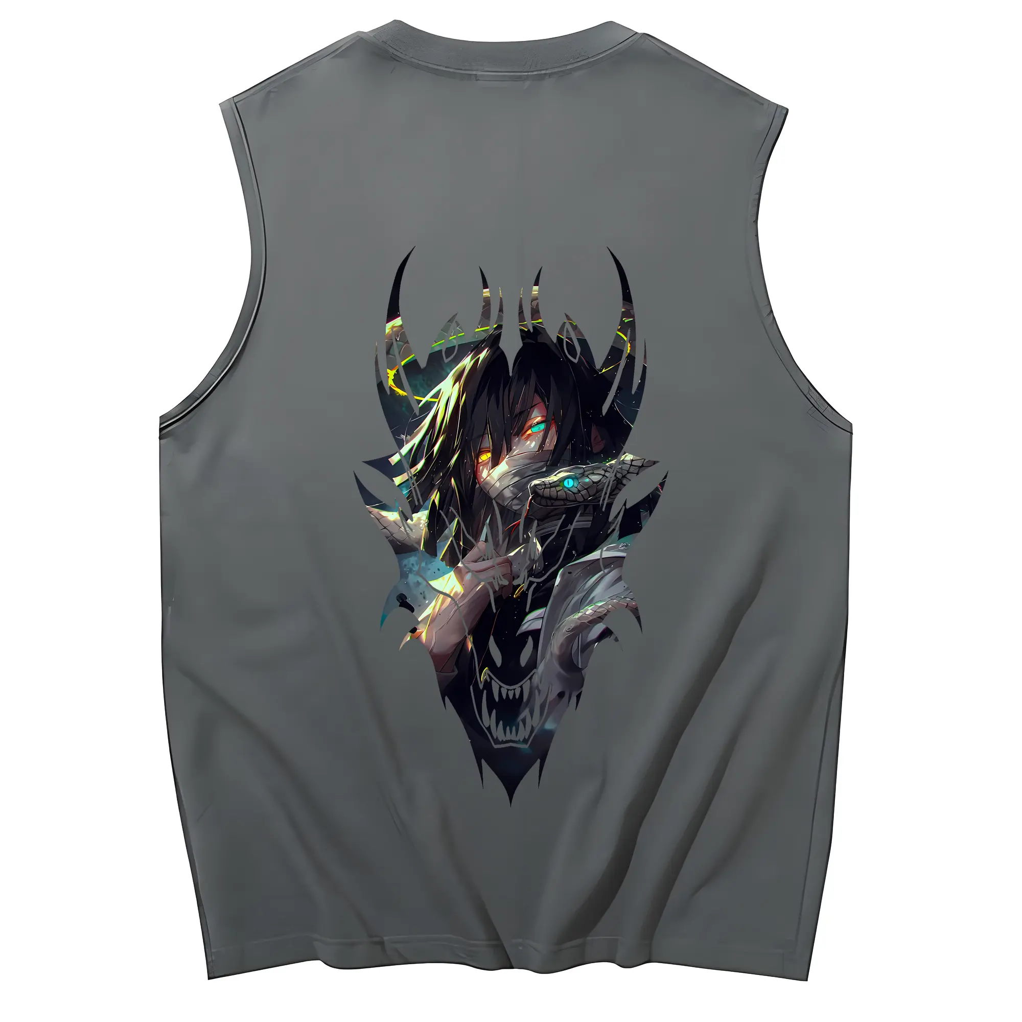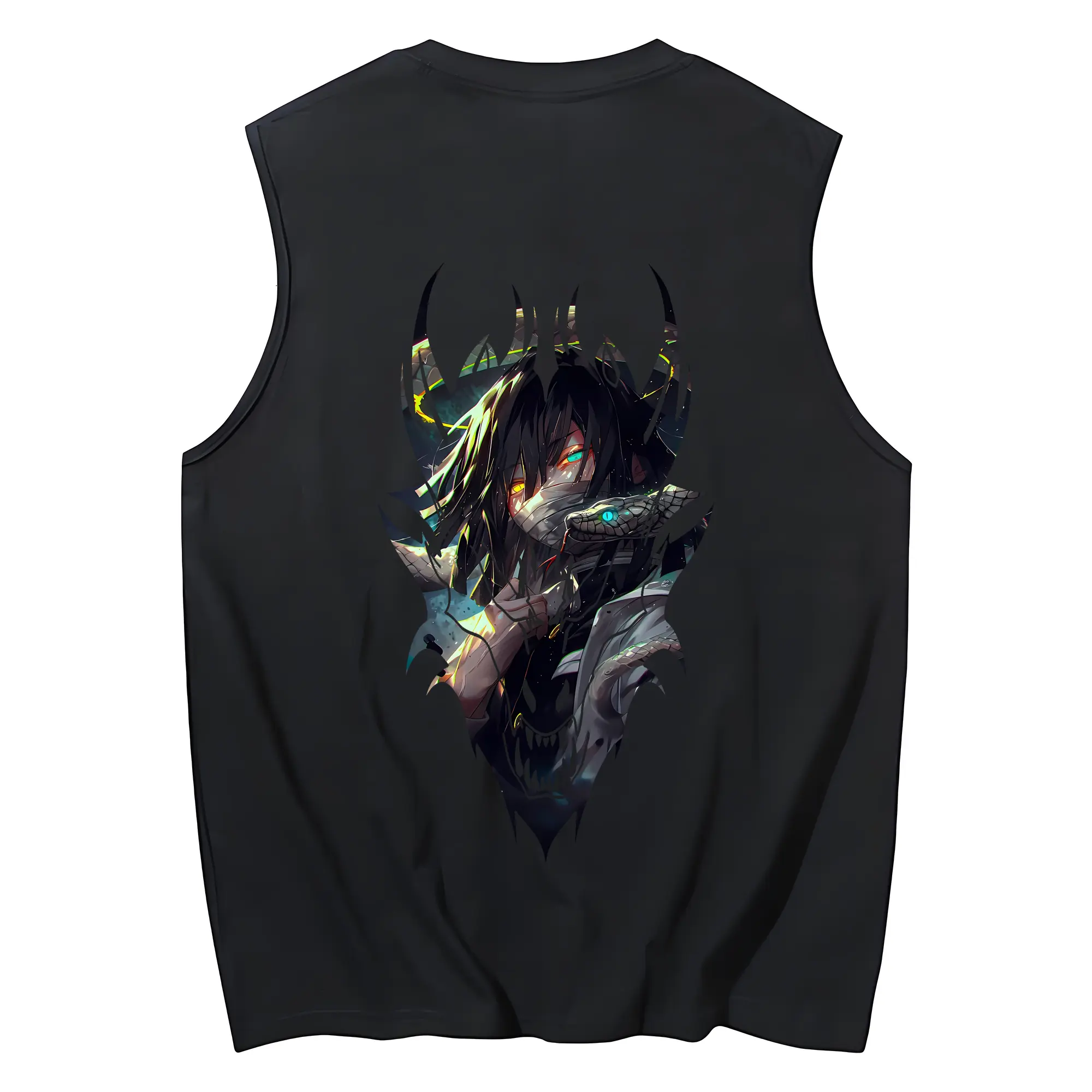 鬼滅の刃 グッズ,伊黒 小芭内 - コットン100% タンクトップ ・ 背面プリント ・ タイトシルエット ・ 快適 通気性 ・ スポーツ カジュアル 散歩用