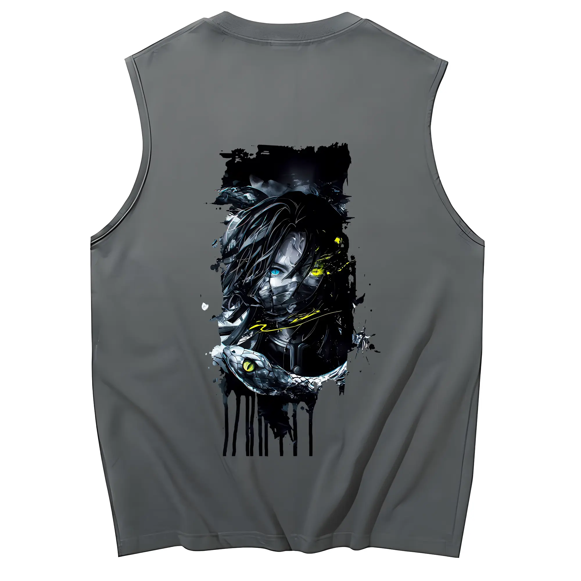 鬼滅の刃 グッズ,伊黒 小芭内 - コットン100% タンクトップ ・ 背面プリント ・ タイトシルエット ・ 快適 通気性 ・ スポーツ カジュアル 散歩用