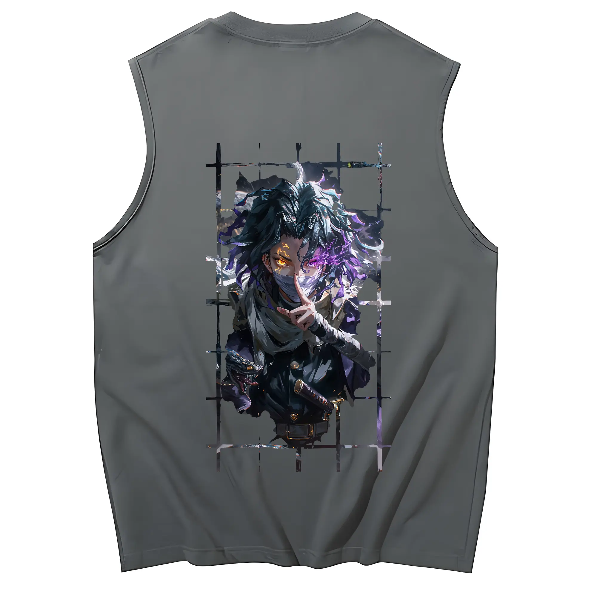 鬼滅の刃 グッズ,伊黒 小芭内 - コットン100% タンクトップ ・ 背面プリント ・ タイトシルエット ・ 快適 通気性 ・ スポーツ カジュアル 散歩用
